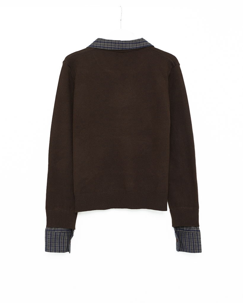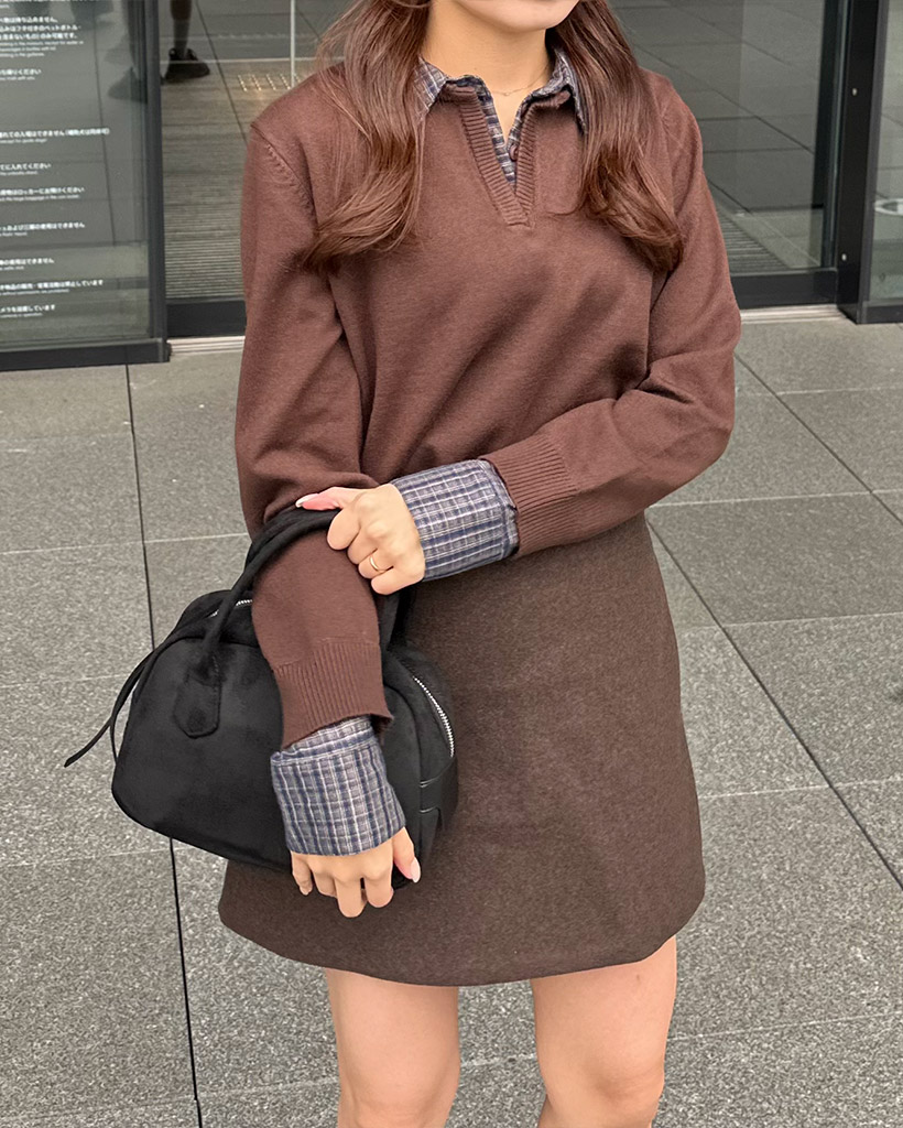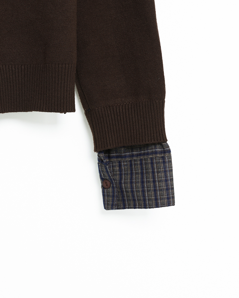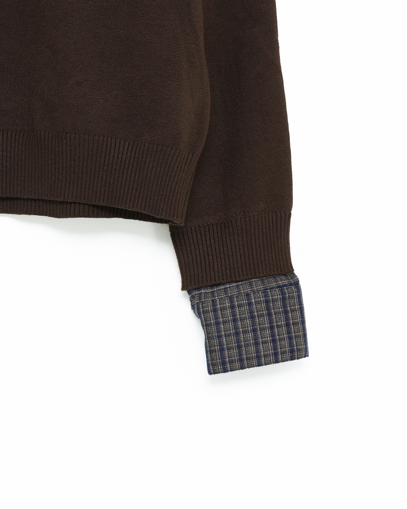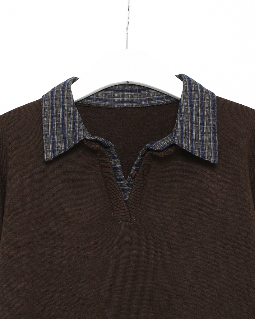チェックバイカラーネックニット