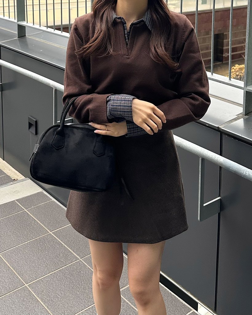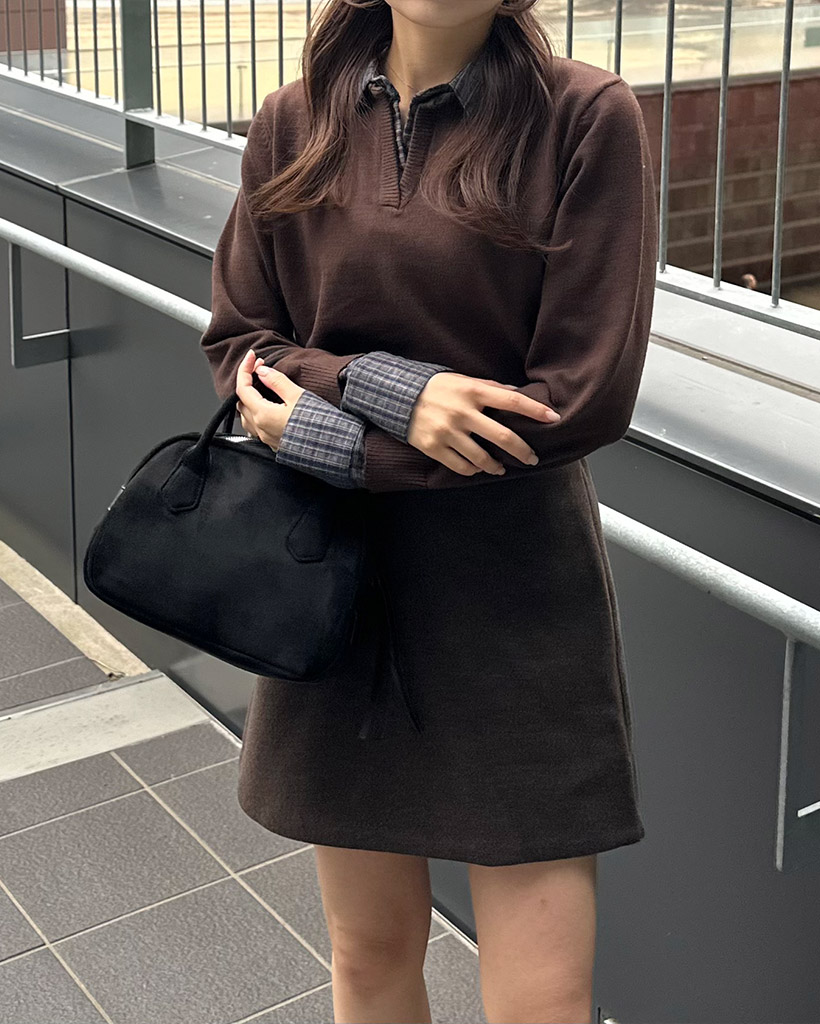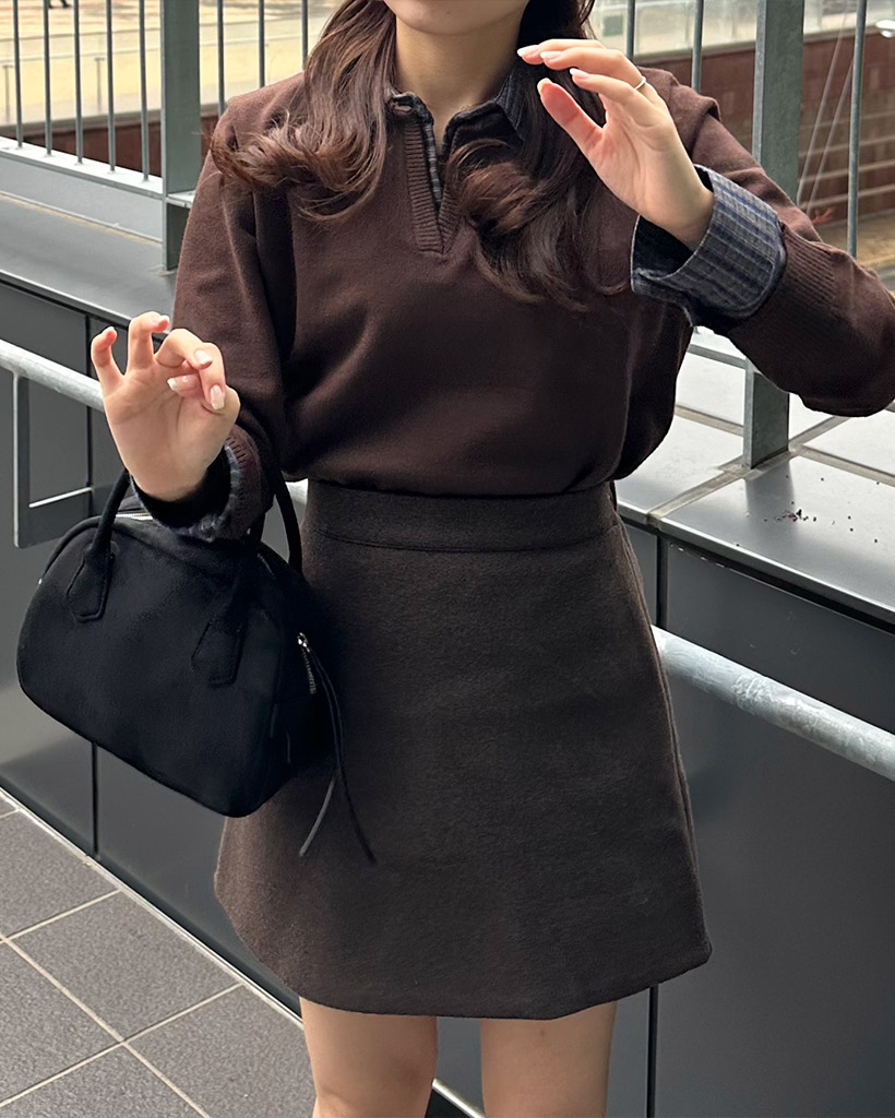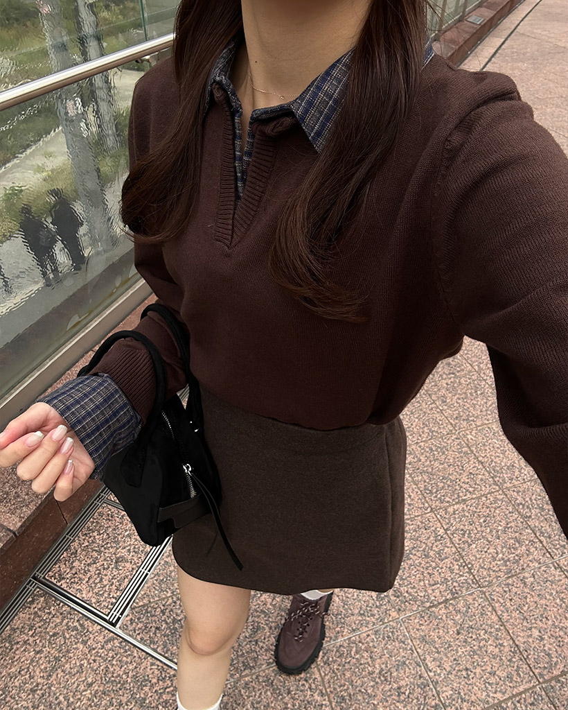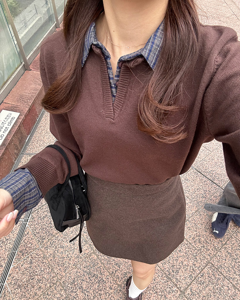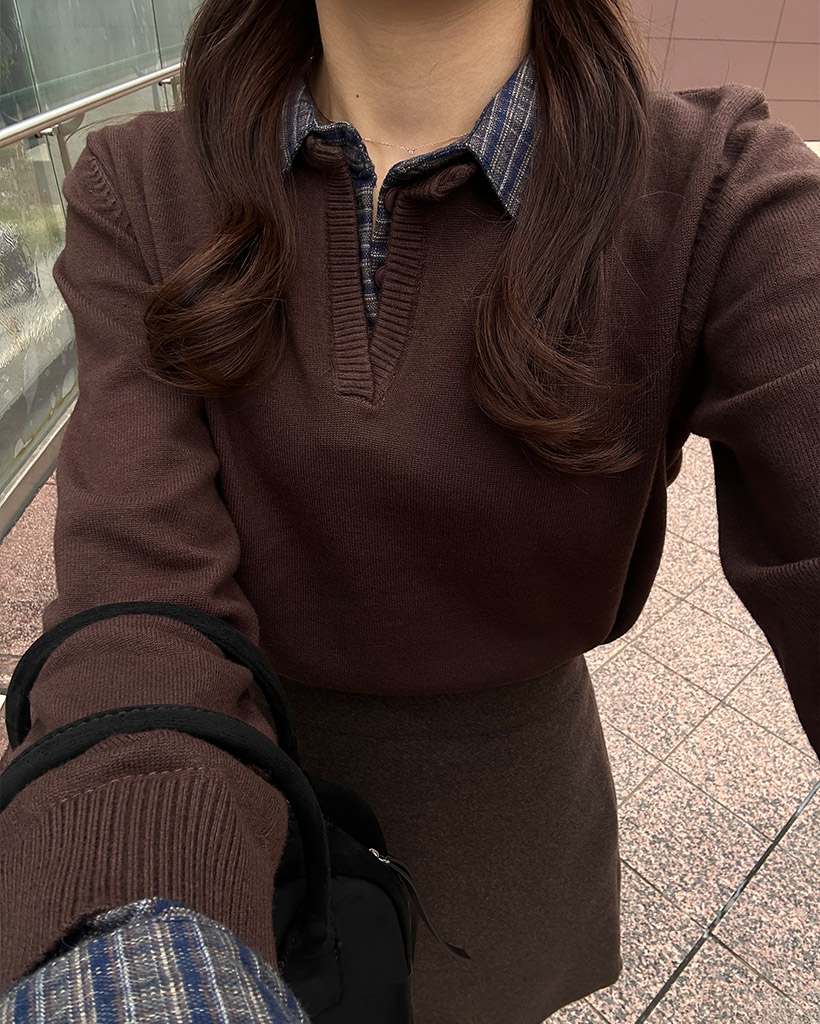 チェックバイカラーネックニット