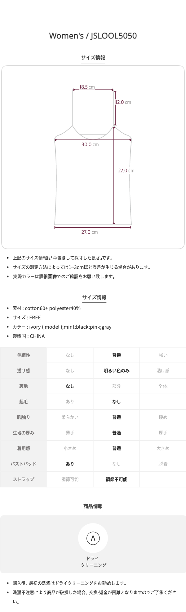 レースカップ付きキャミソール