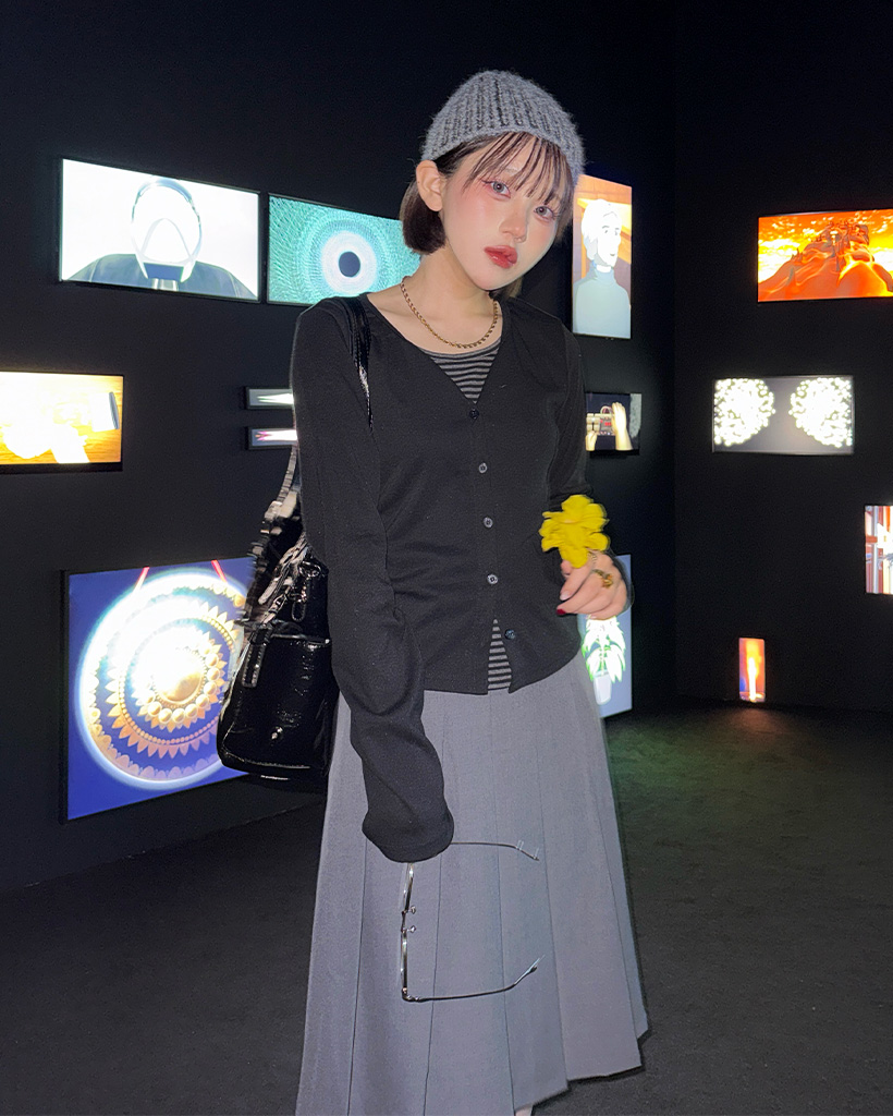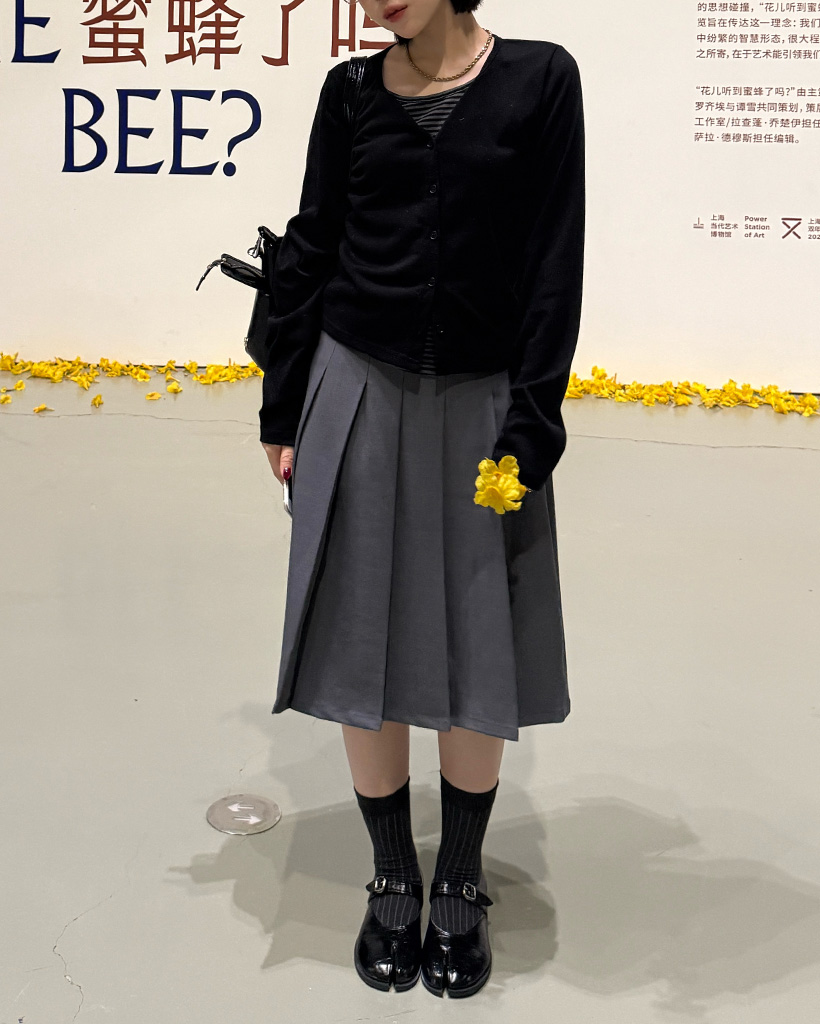 プリーツミディスカート