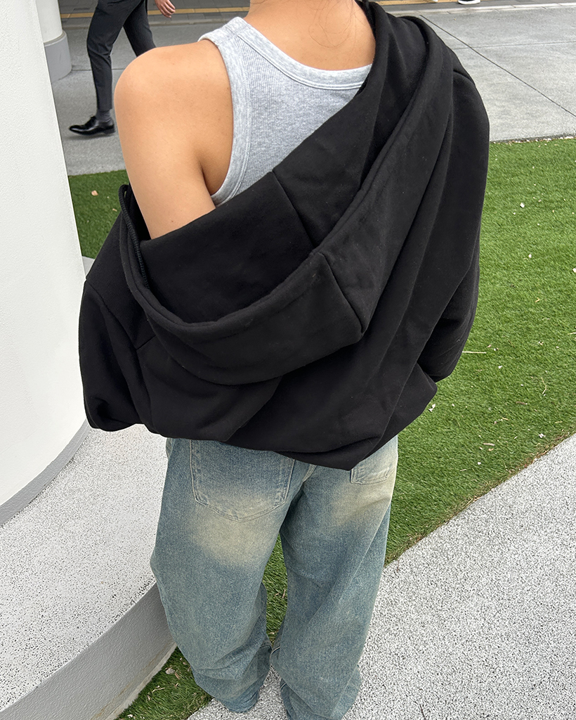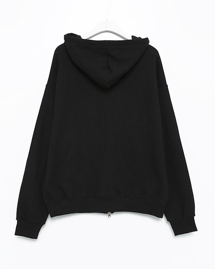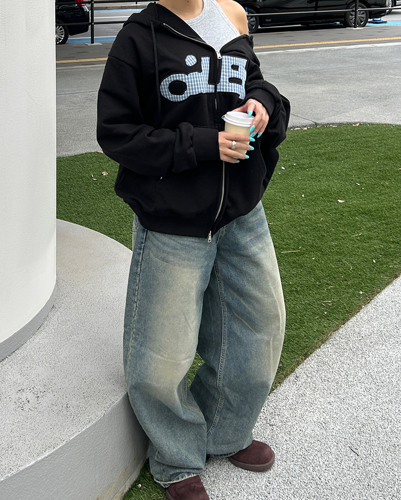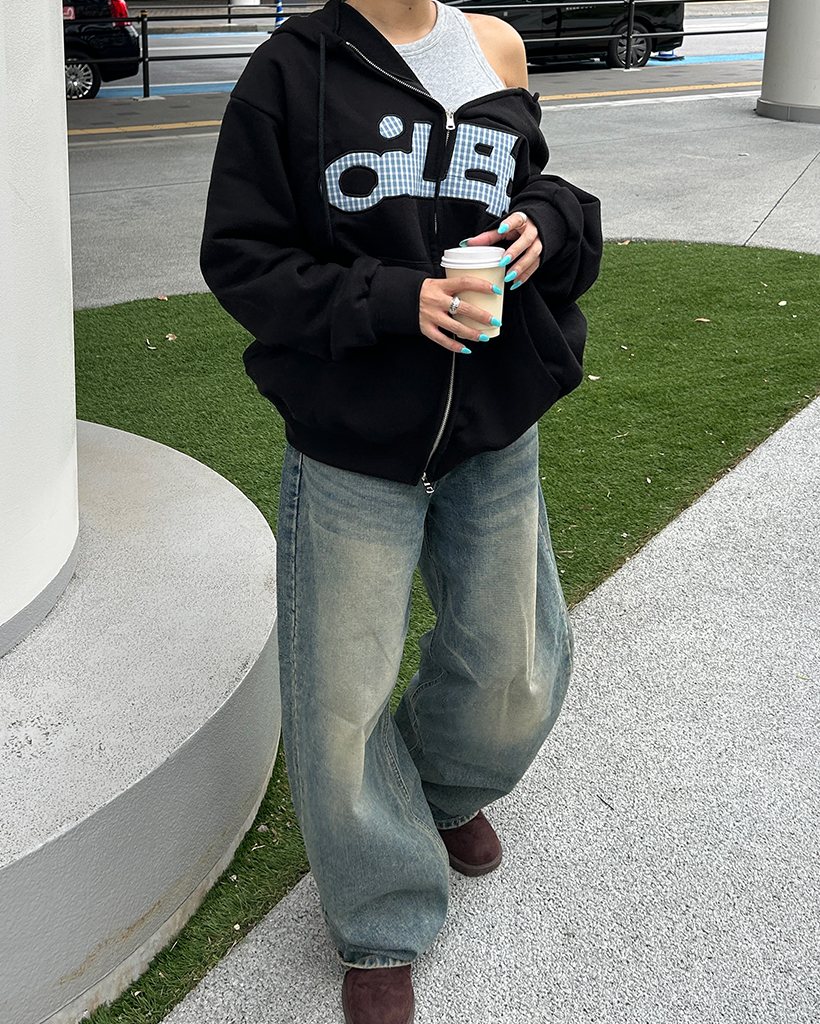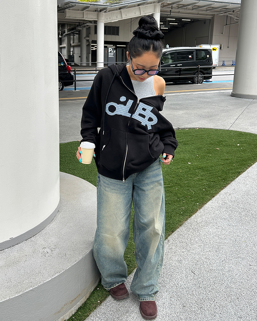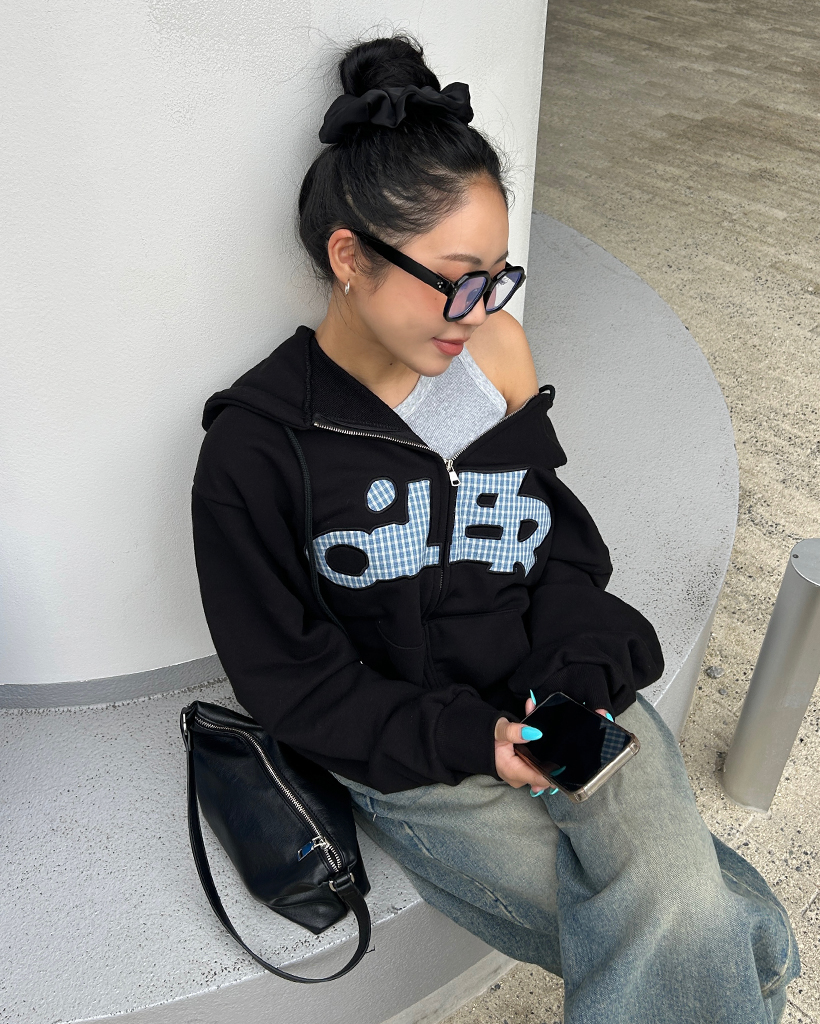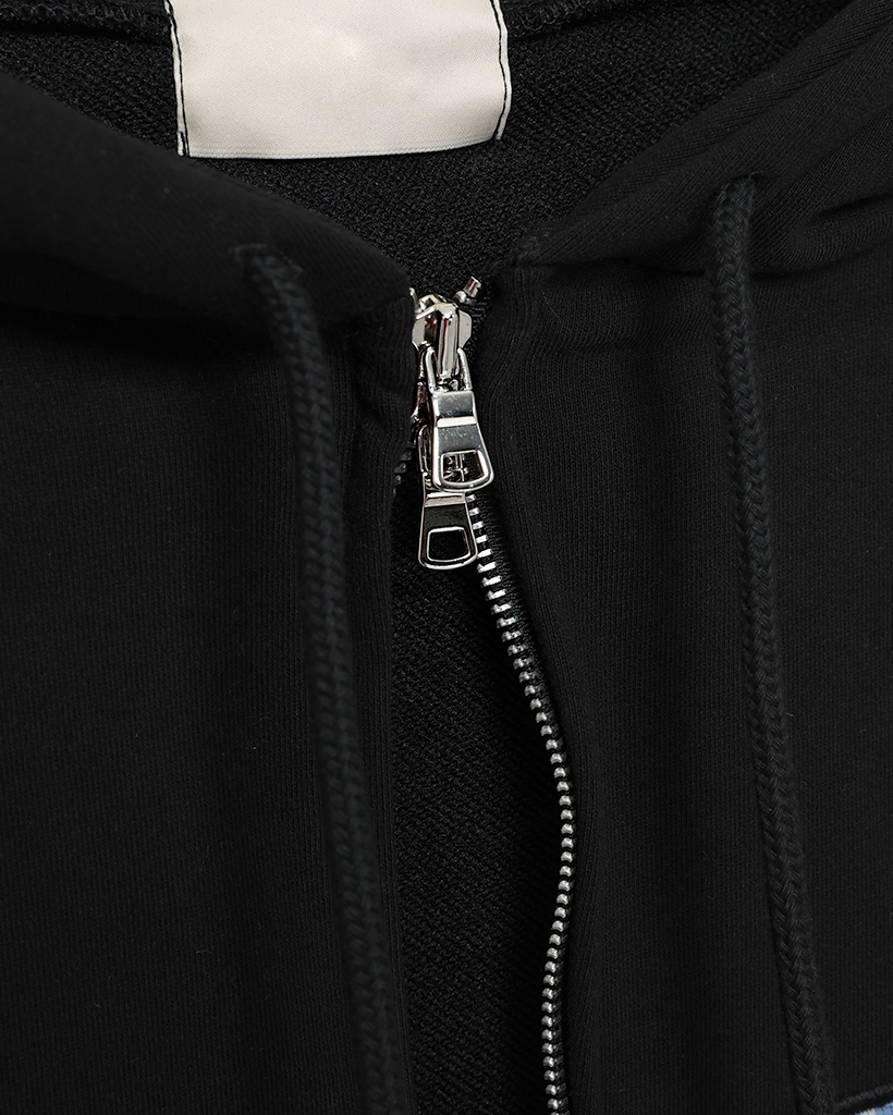 (ユニセックス)タータンチェックパッチダブルジップパーカー