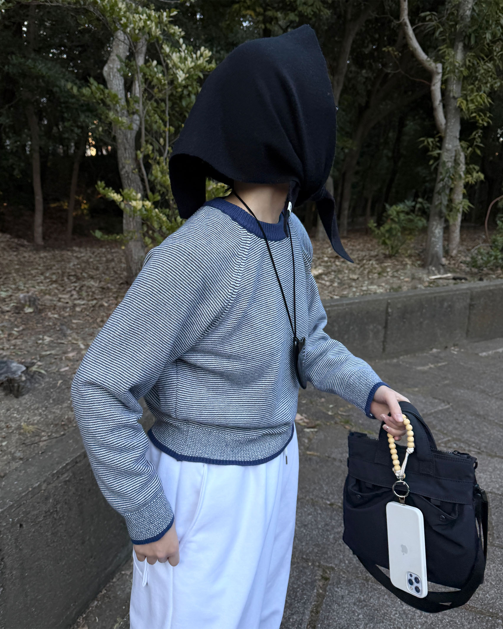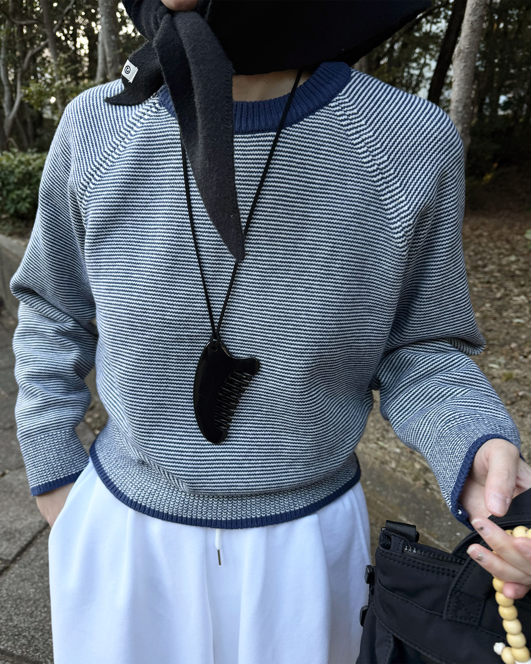 ボーダーラウンドネックニット