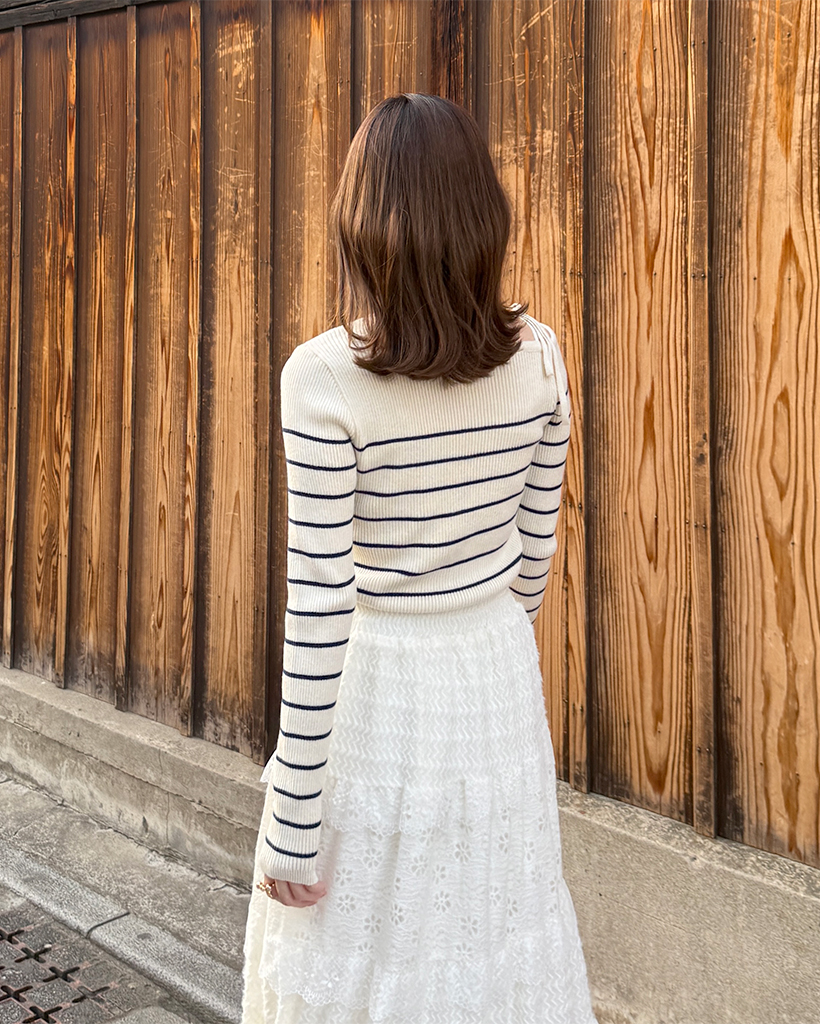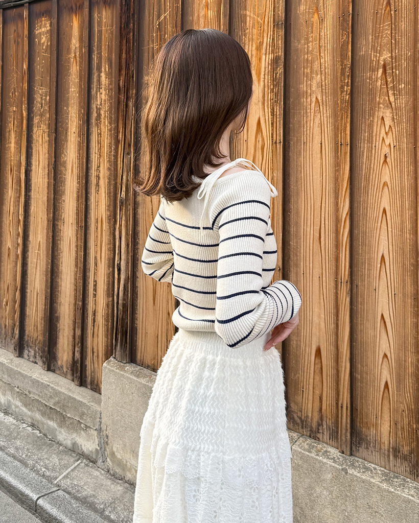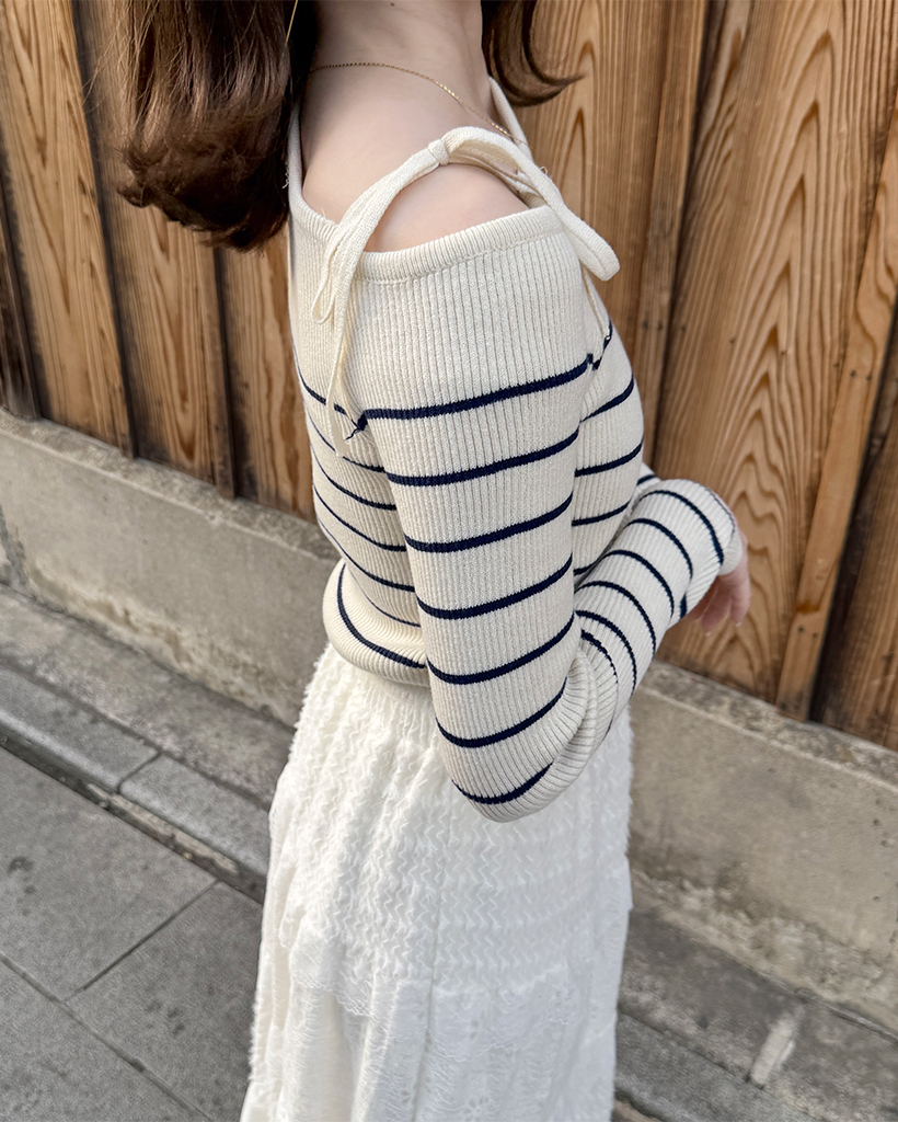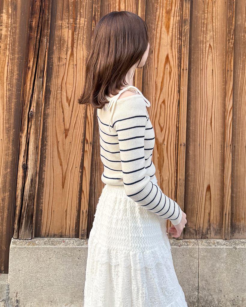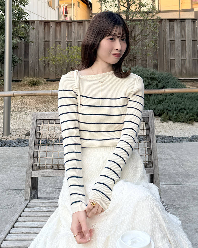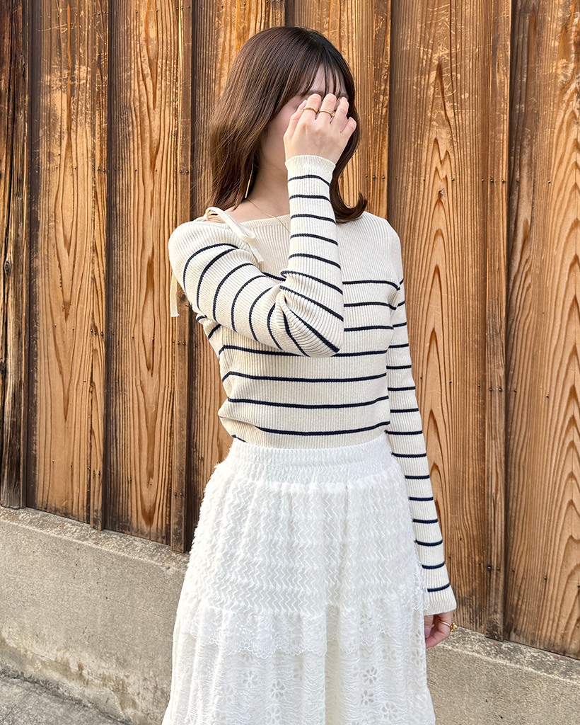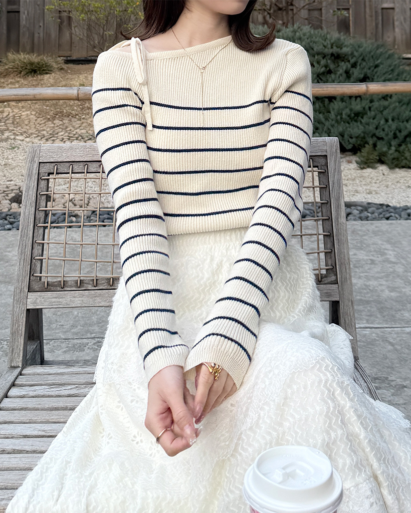 ボーダーオフショルニット