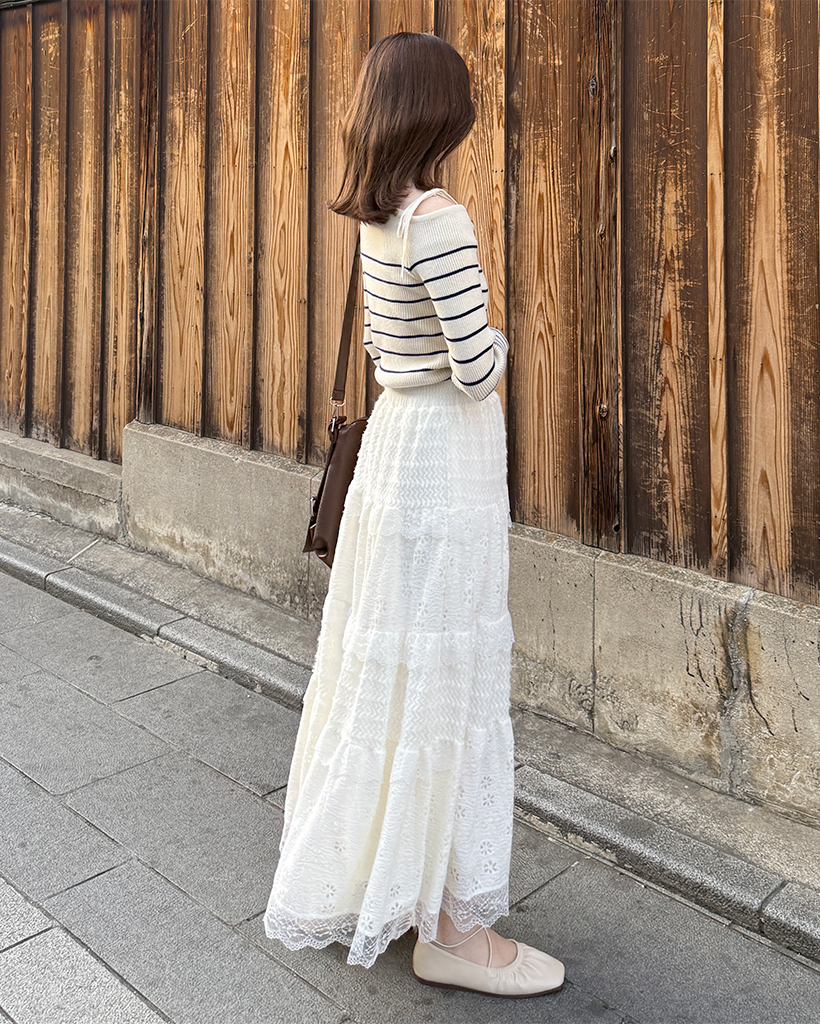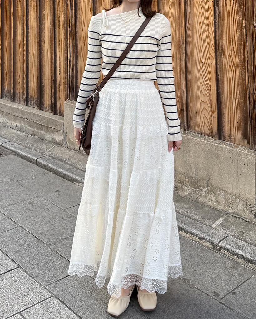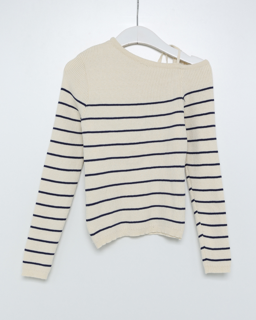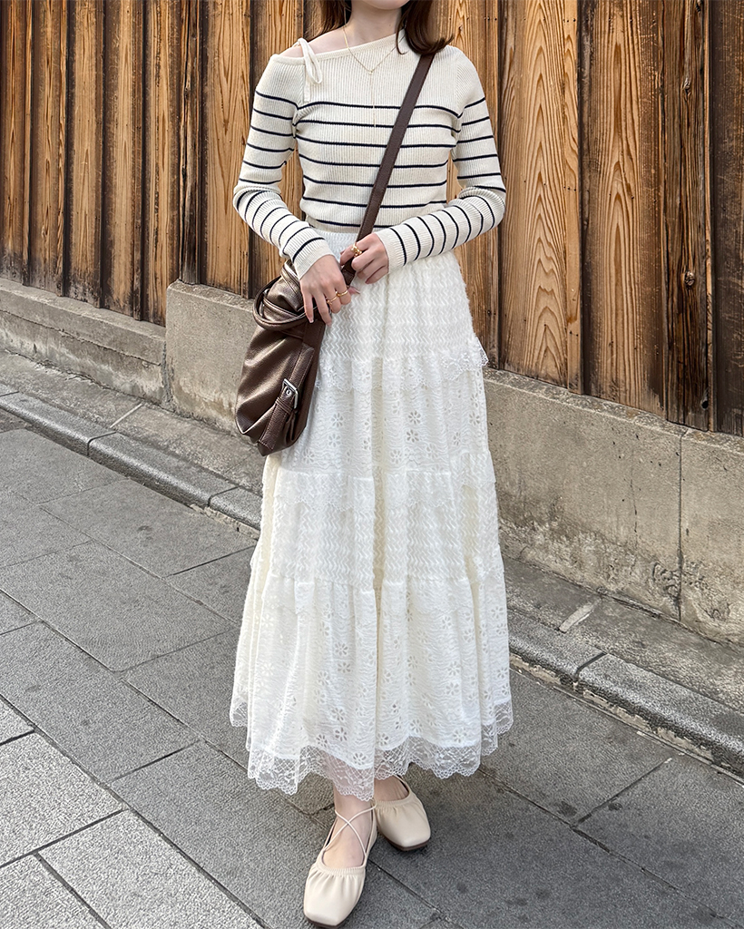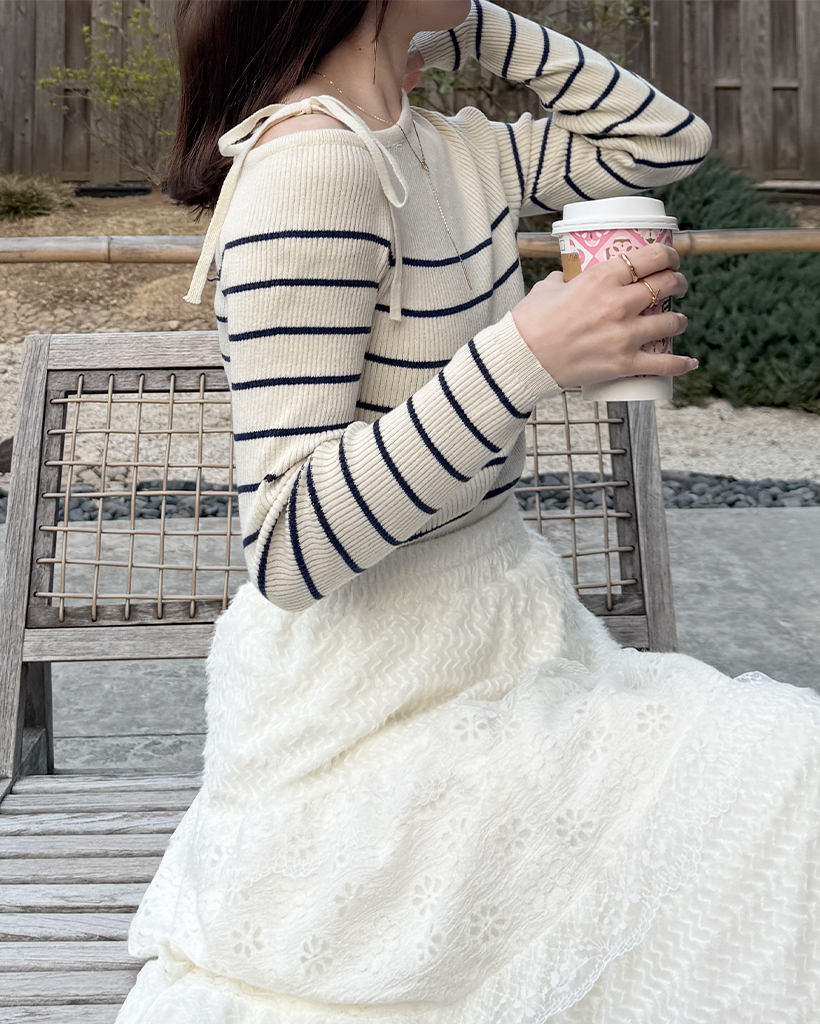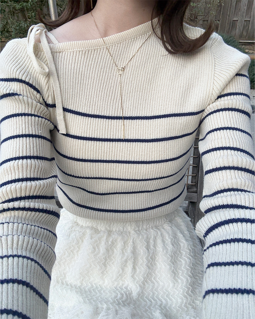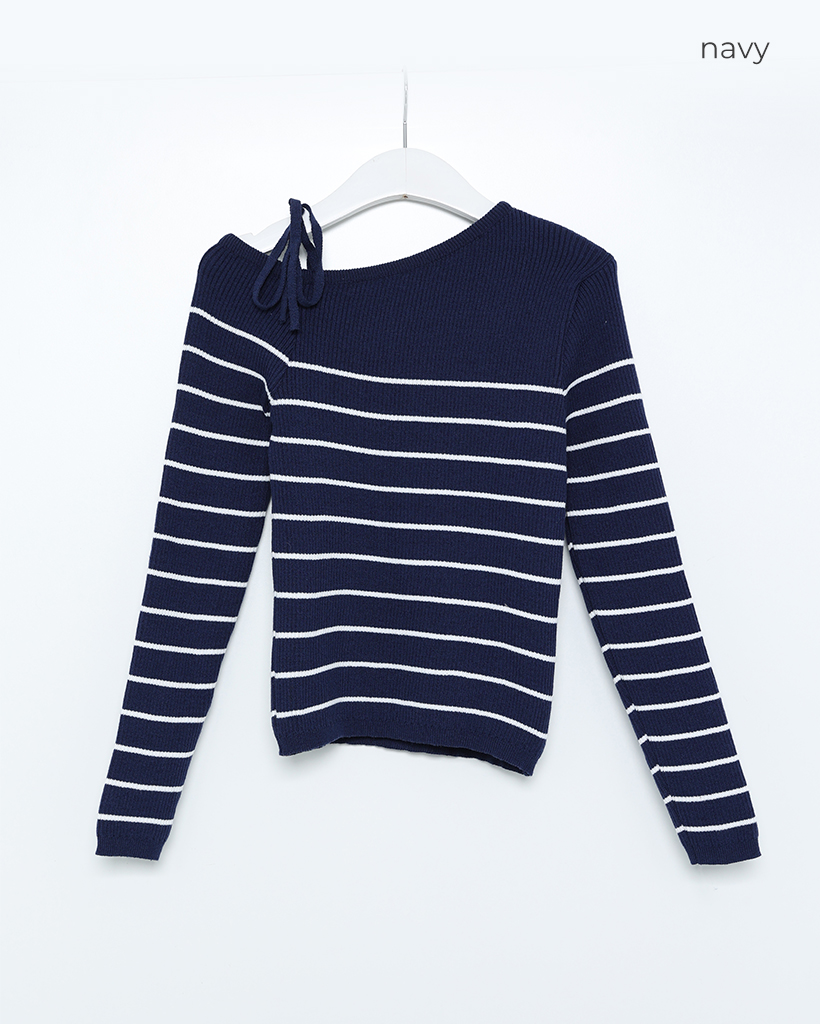 ボーダーオフショルニット