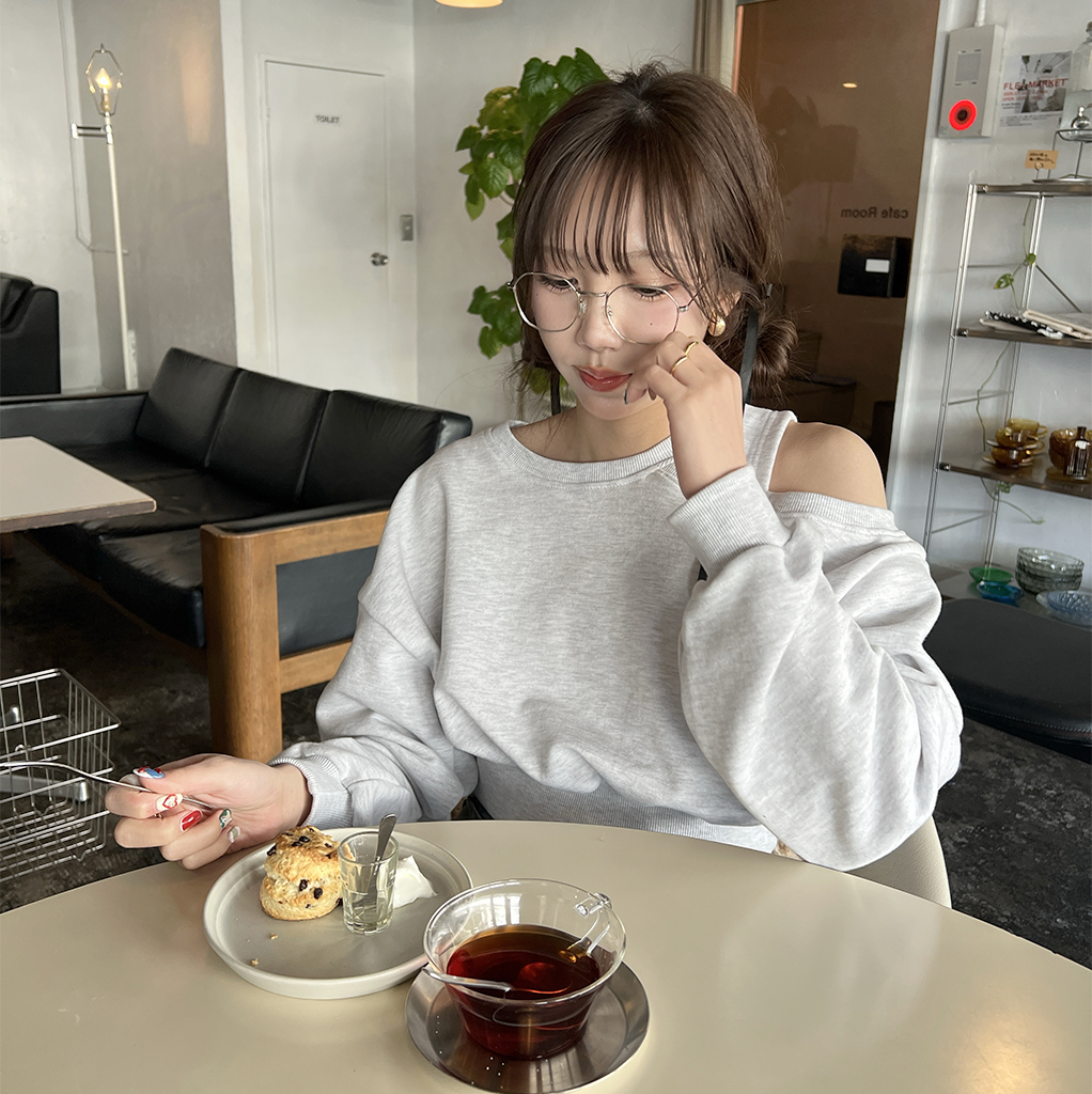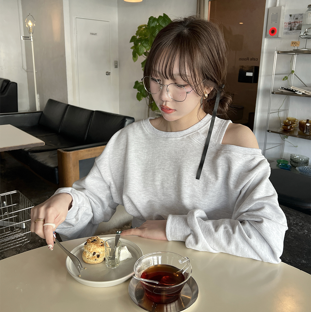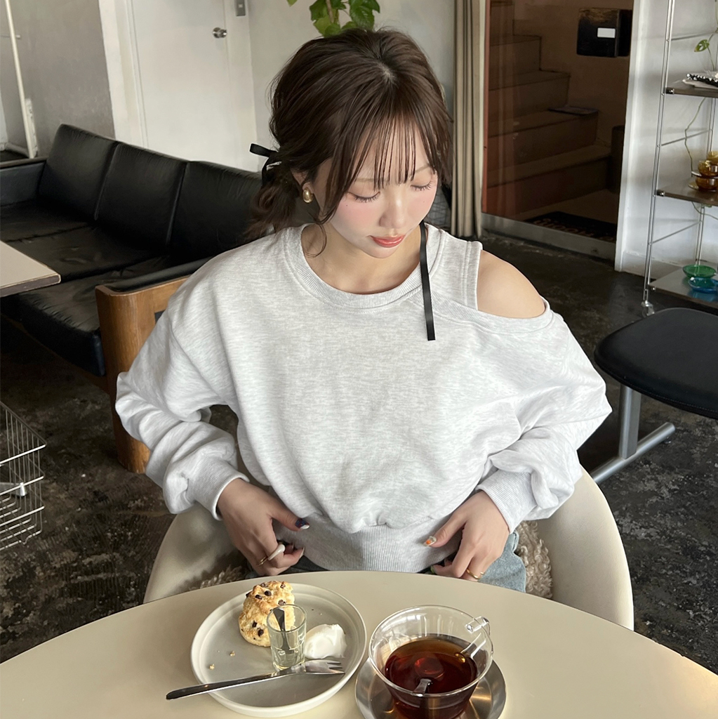 ワンオフショルクロップドスウェットシャツ