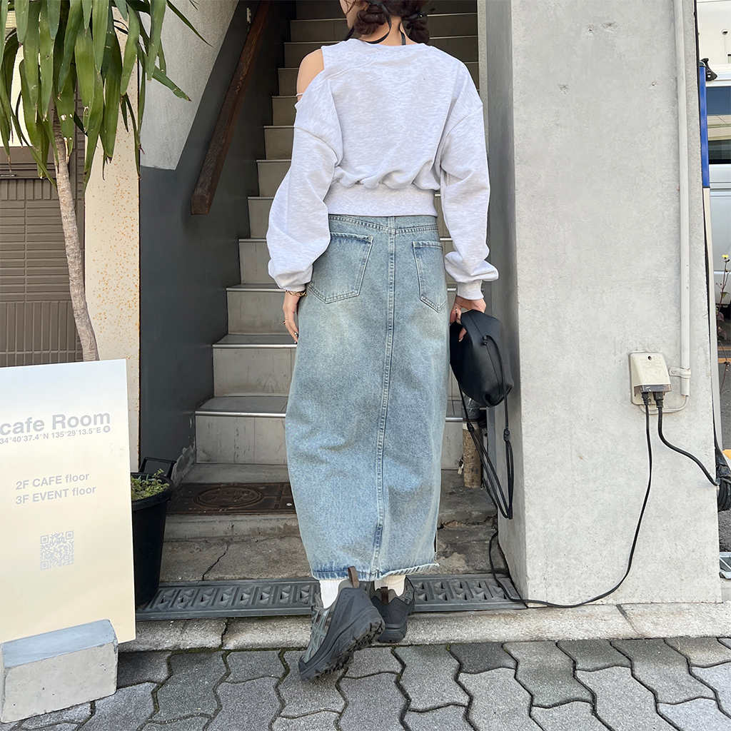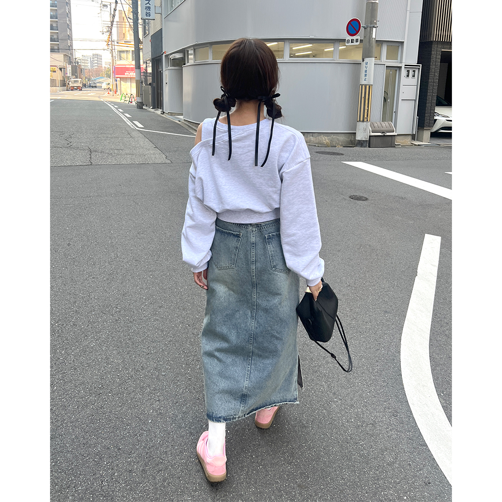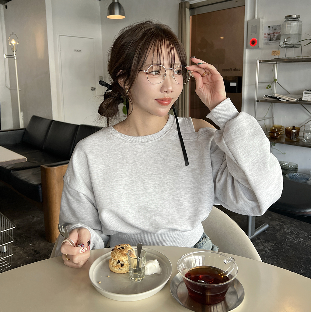 ワンオフショルクロップドスウェットシャツ