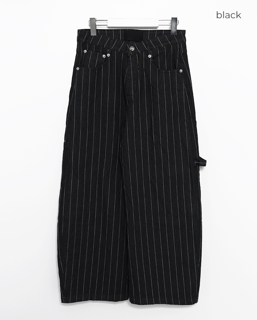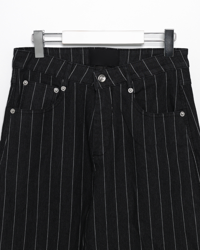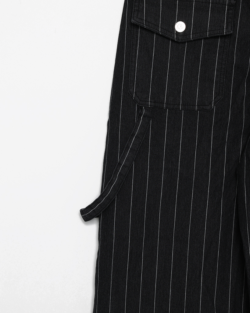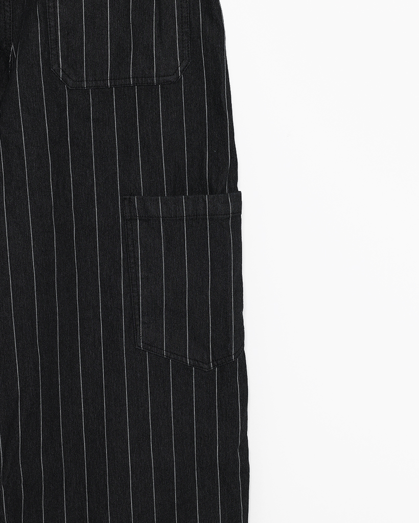 (ユニセックス)ハンマーループピンストライプブラックデニムパンツ