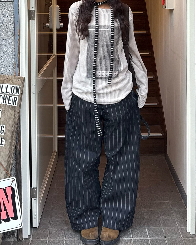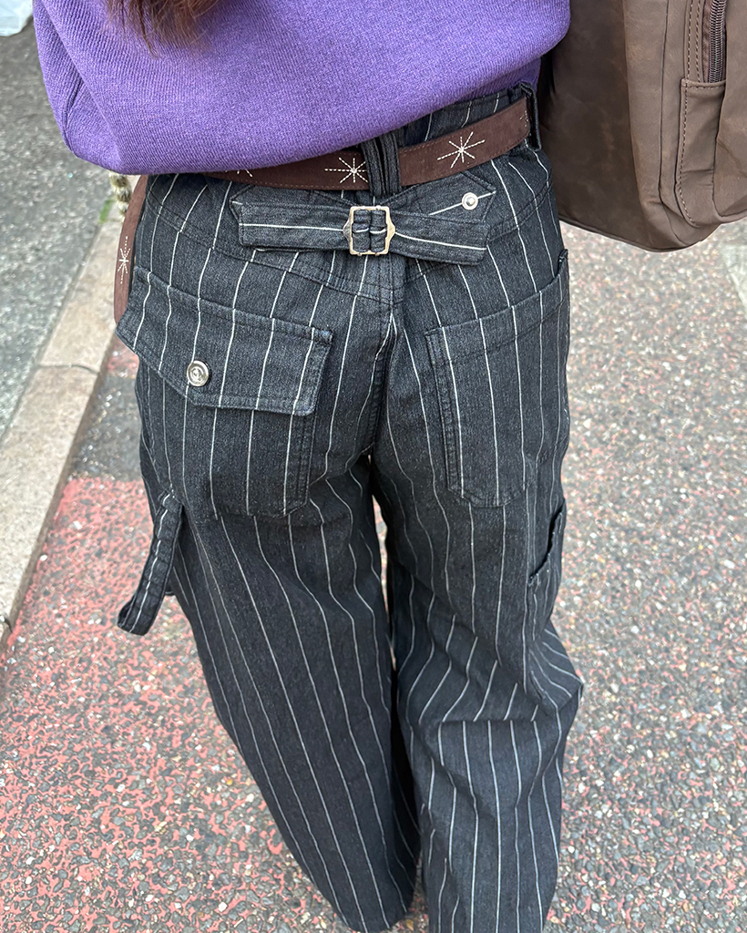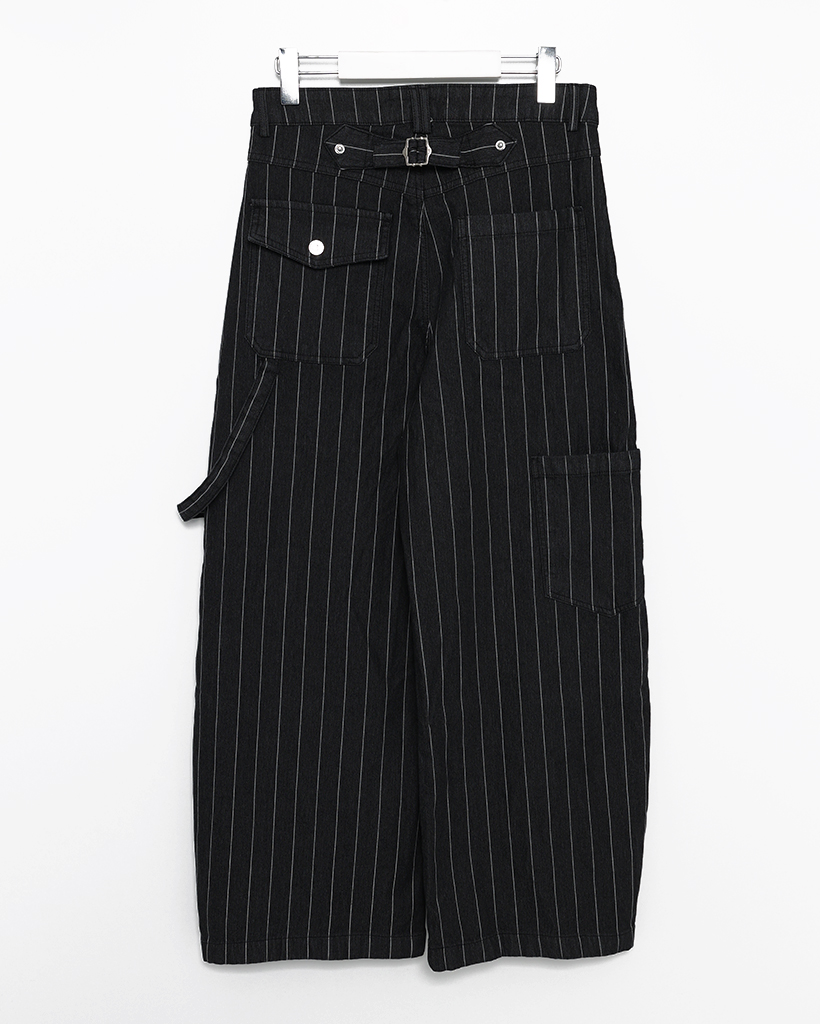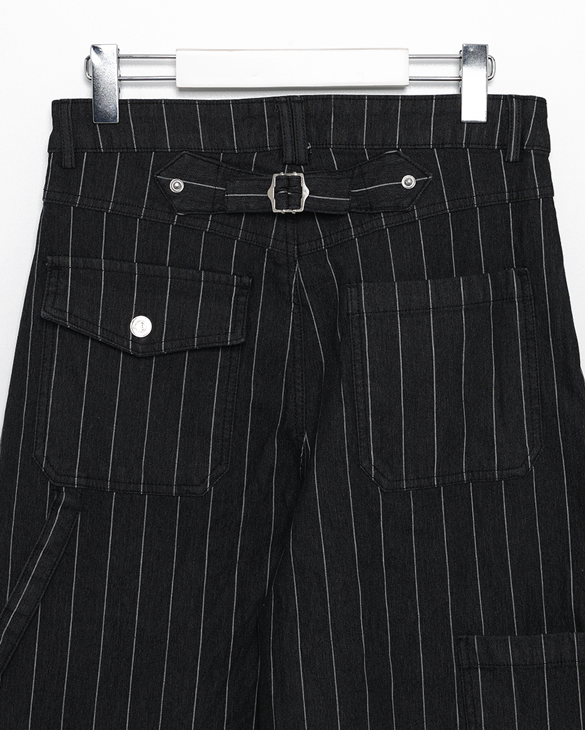 (ユニセックス)ハンマーループピンストライプブラックデニムパンツ
