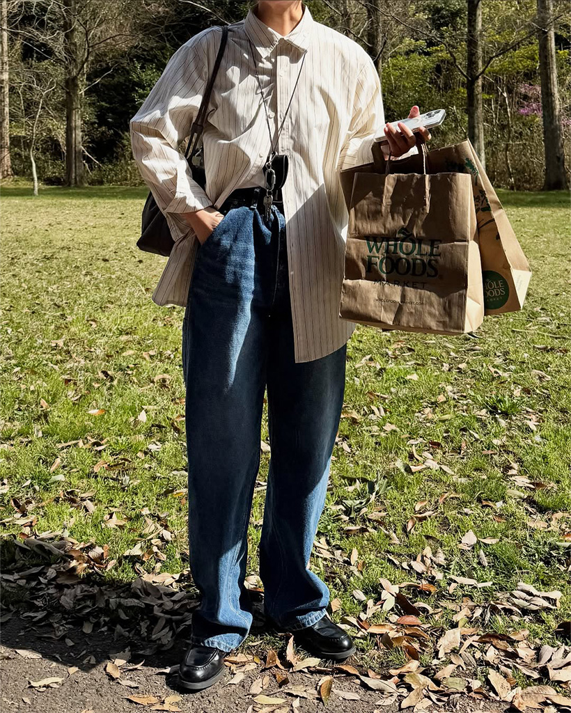 [1回再販](ORIGINAL) ネックポイントストライプオーバーフィットシャツ(beige)