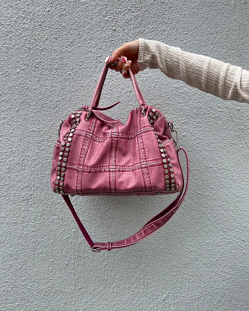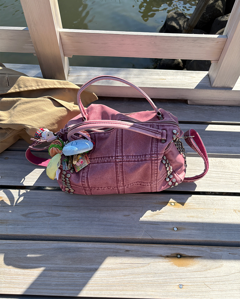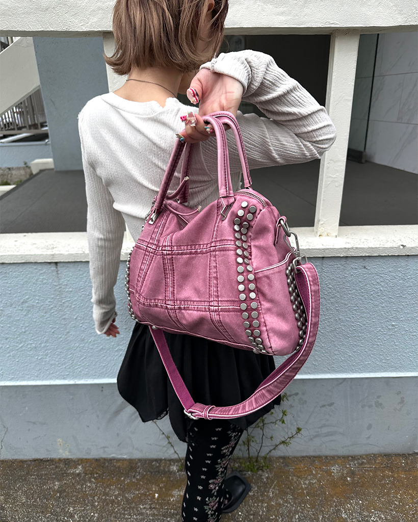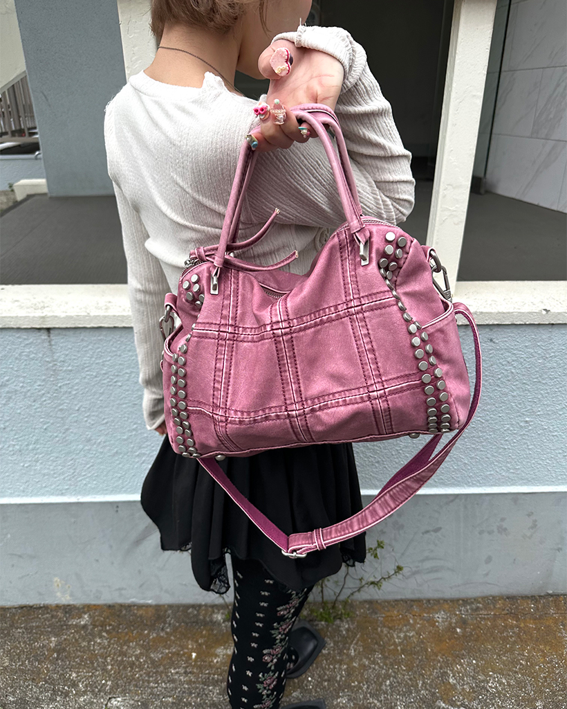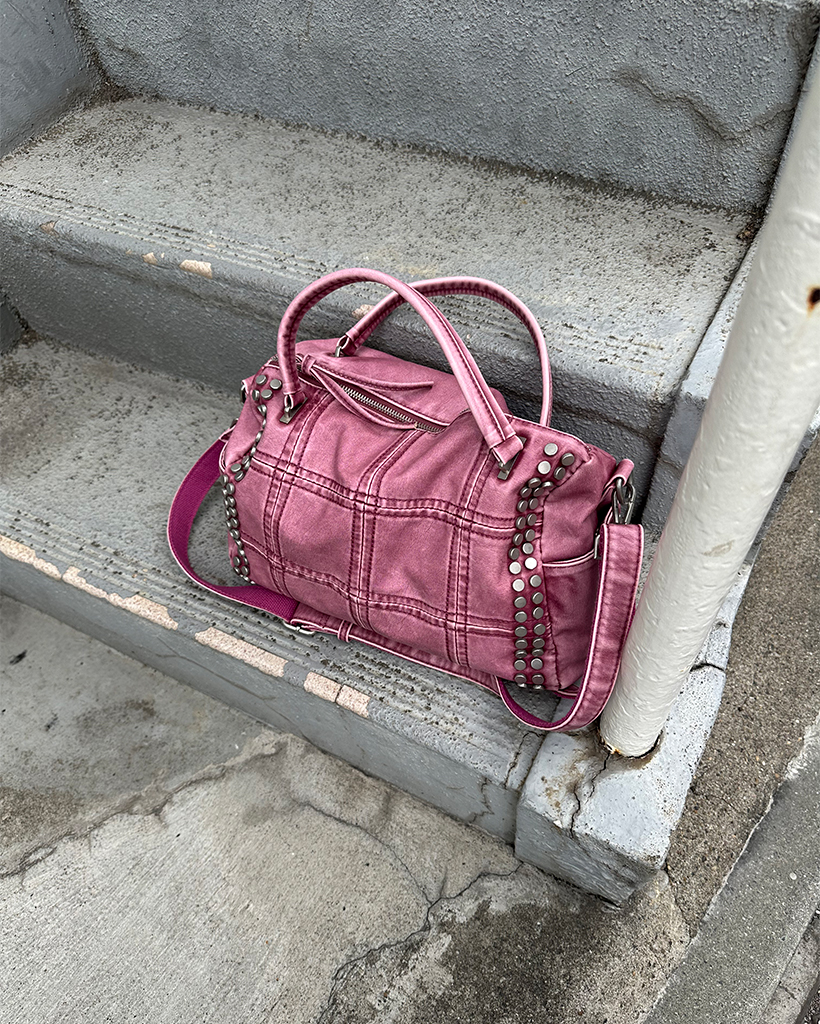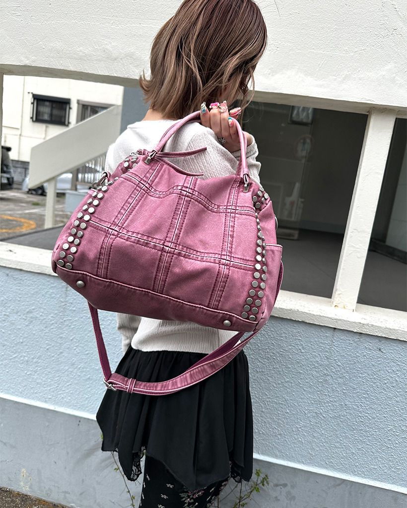 ブロックステッチダブルスタッズ2wayボストンバッグ