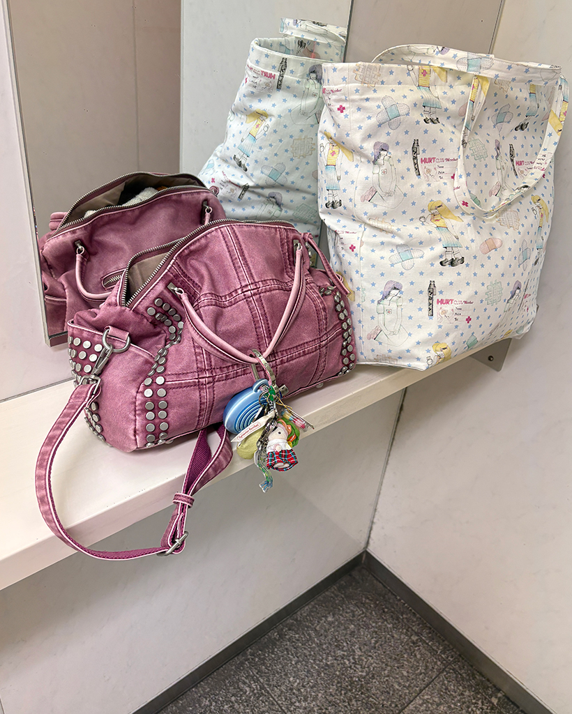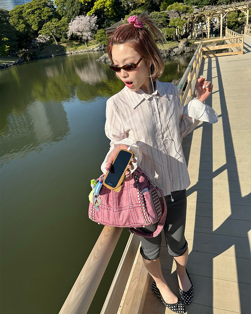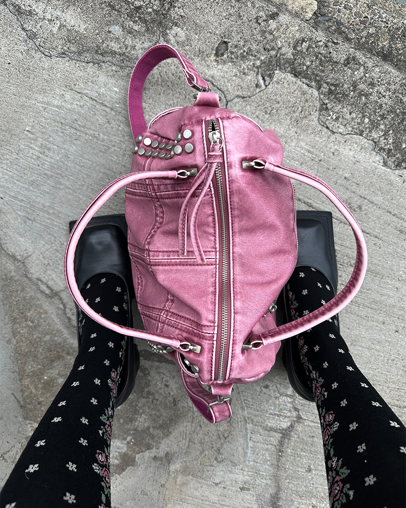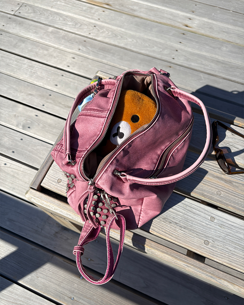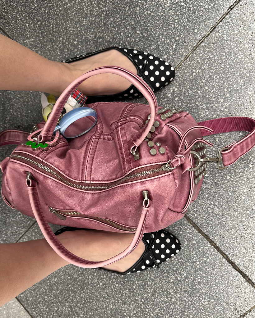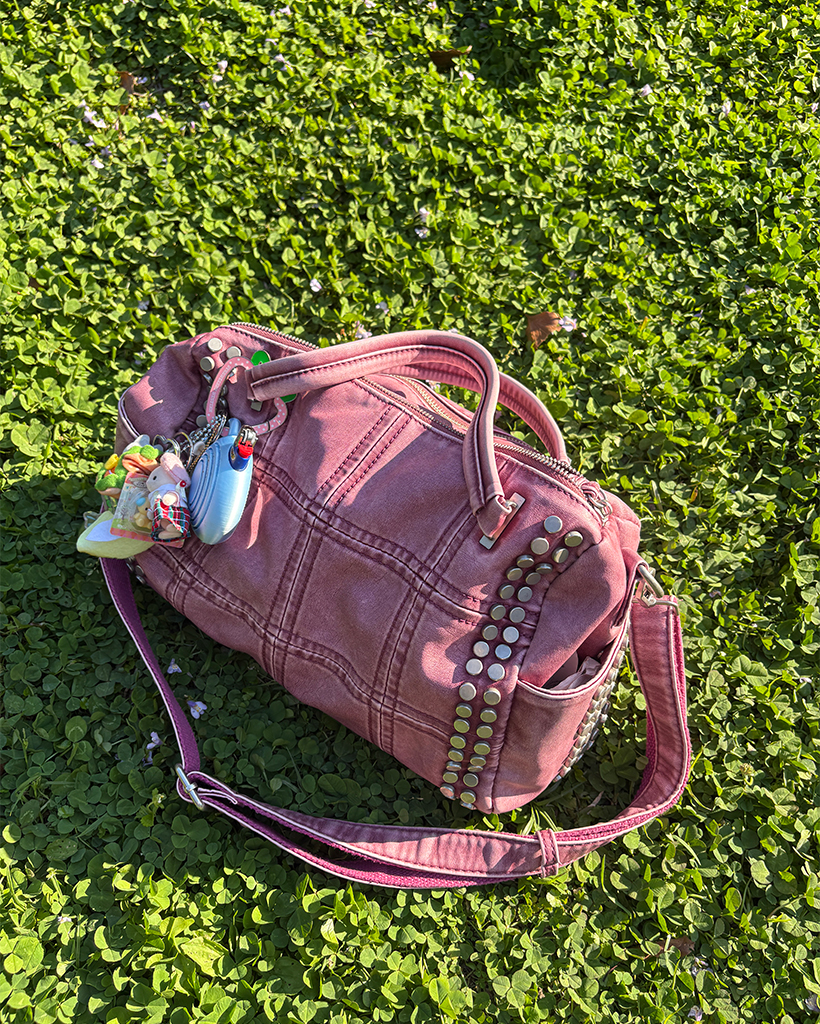 ブロックステッチダブルスタッズ2wayボストンバッグ