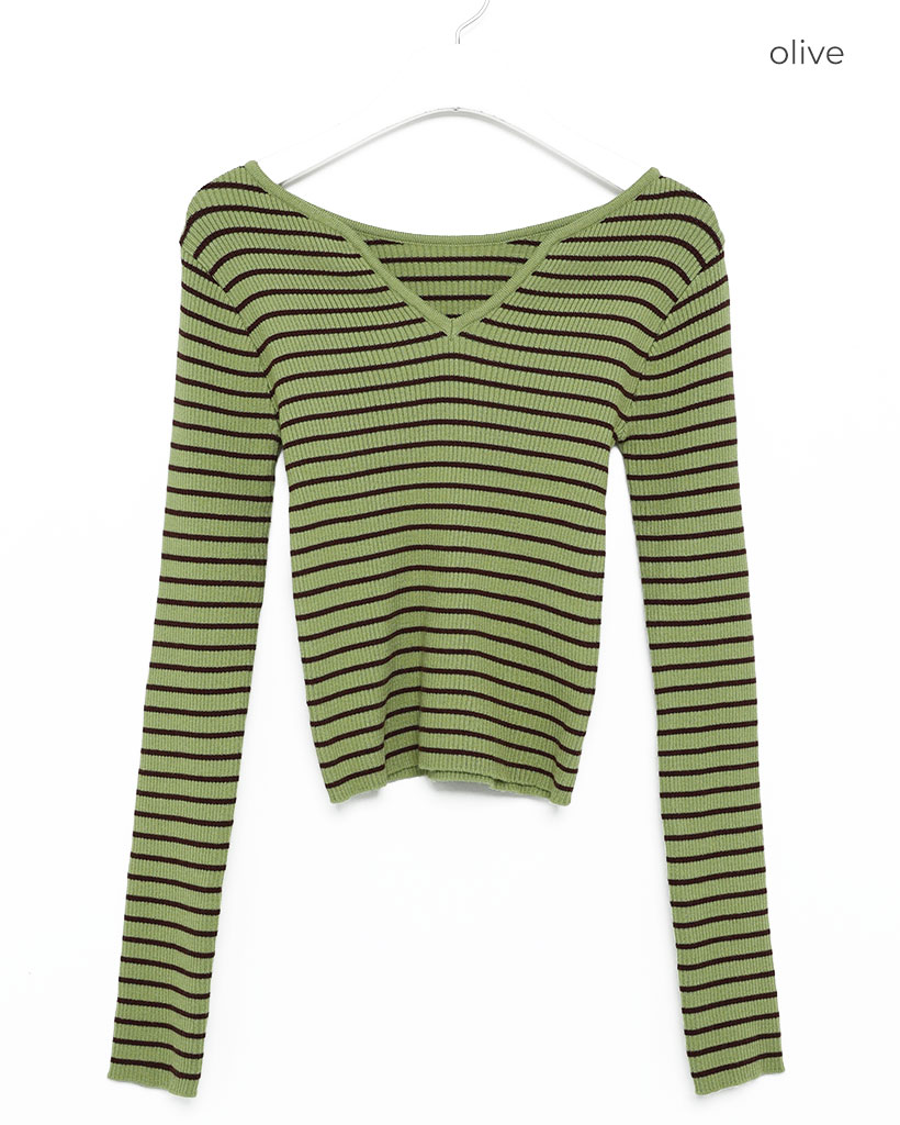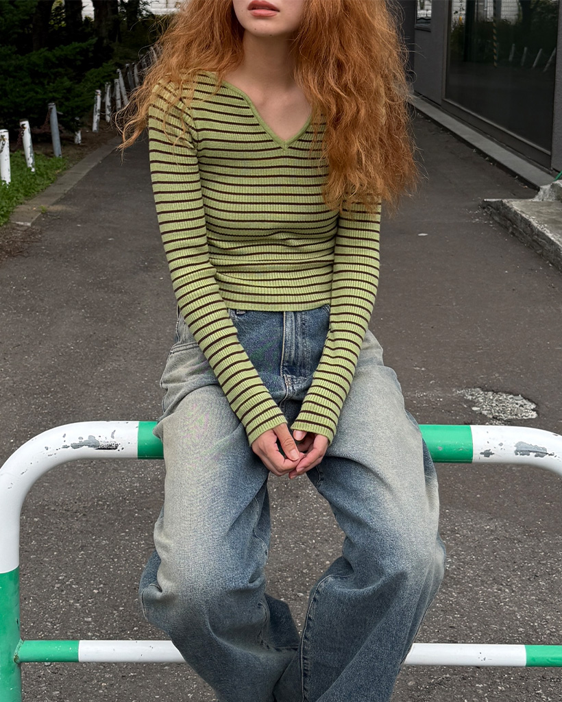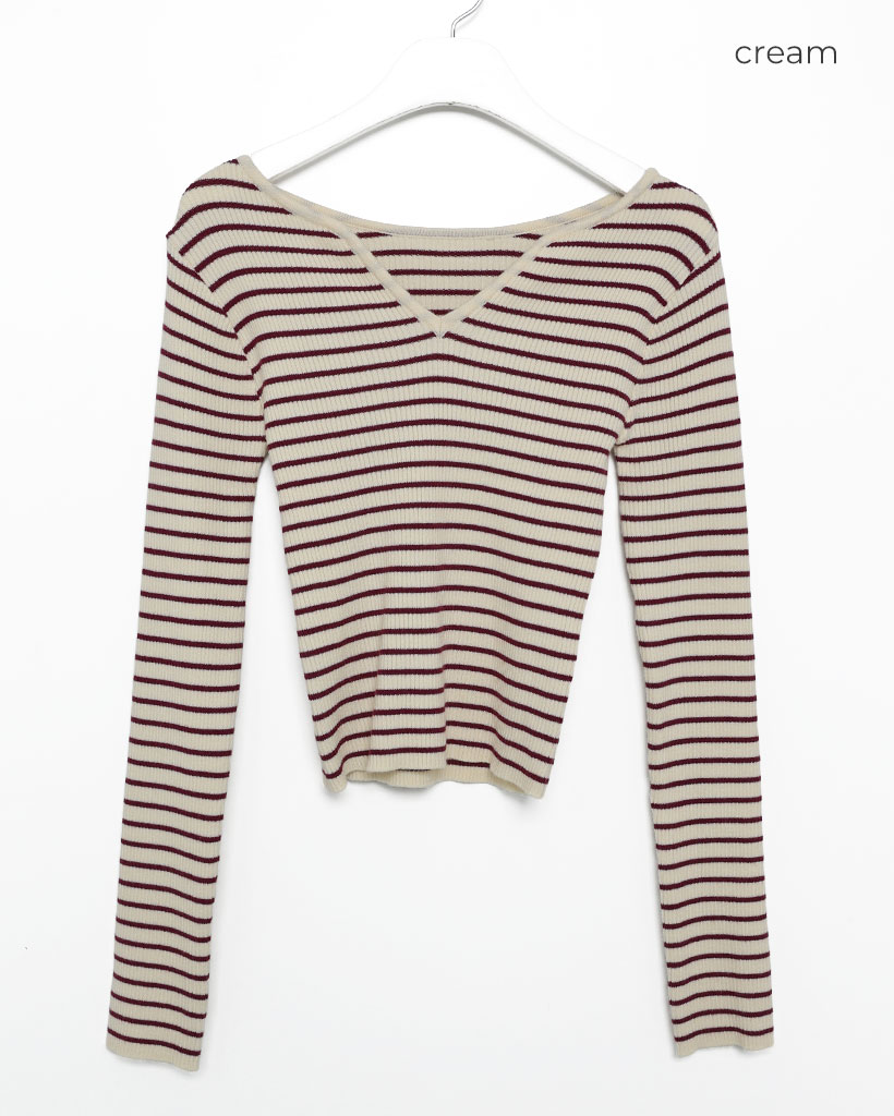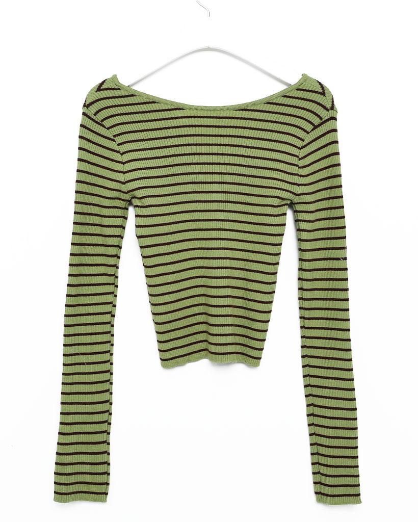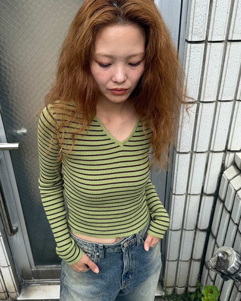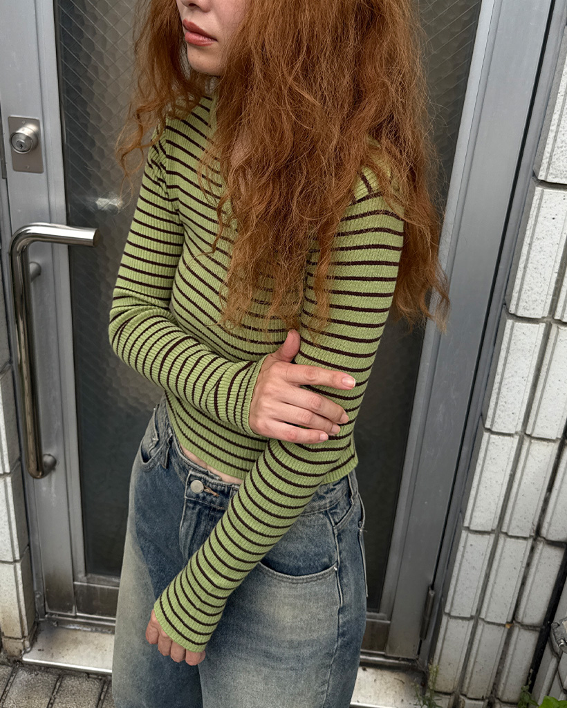 キーネックボーダーロングスリーブニット