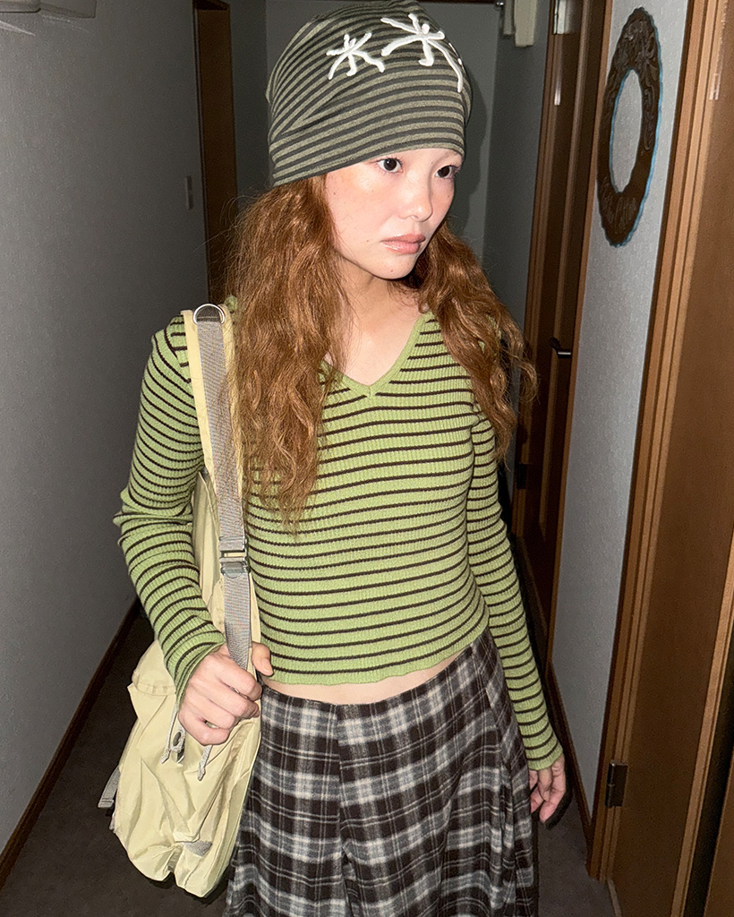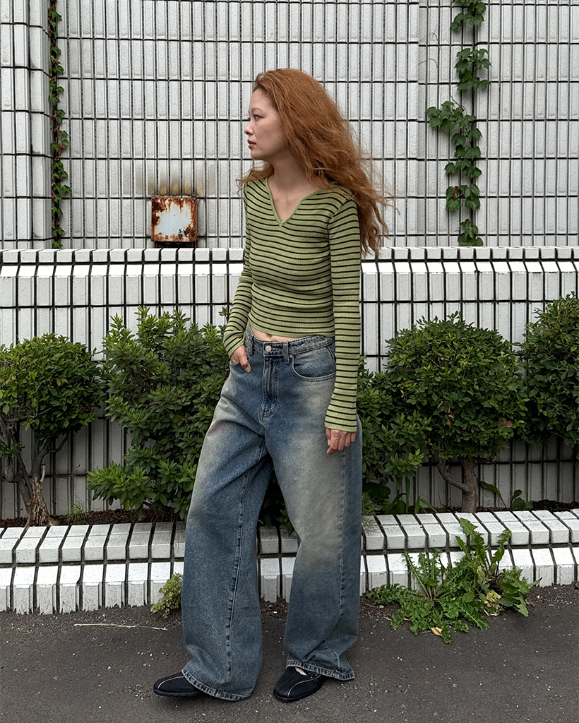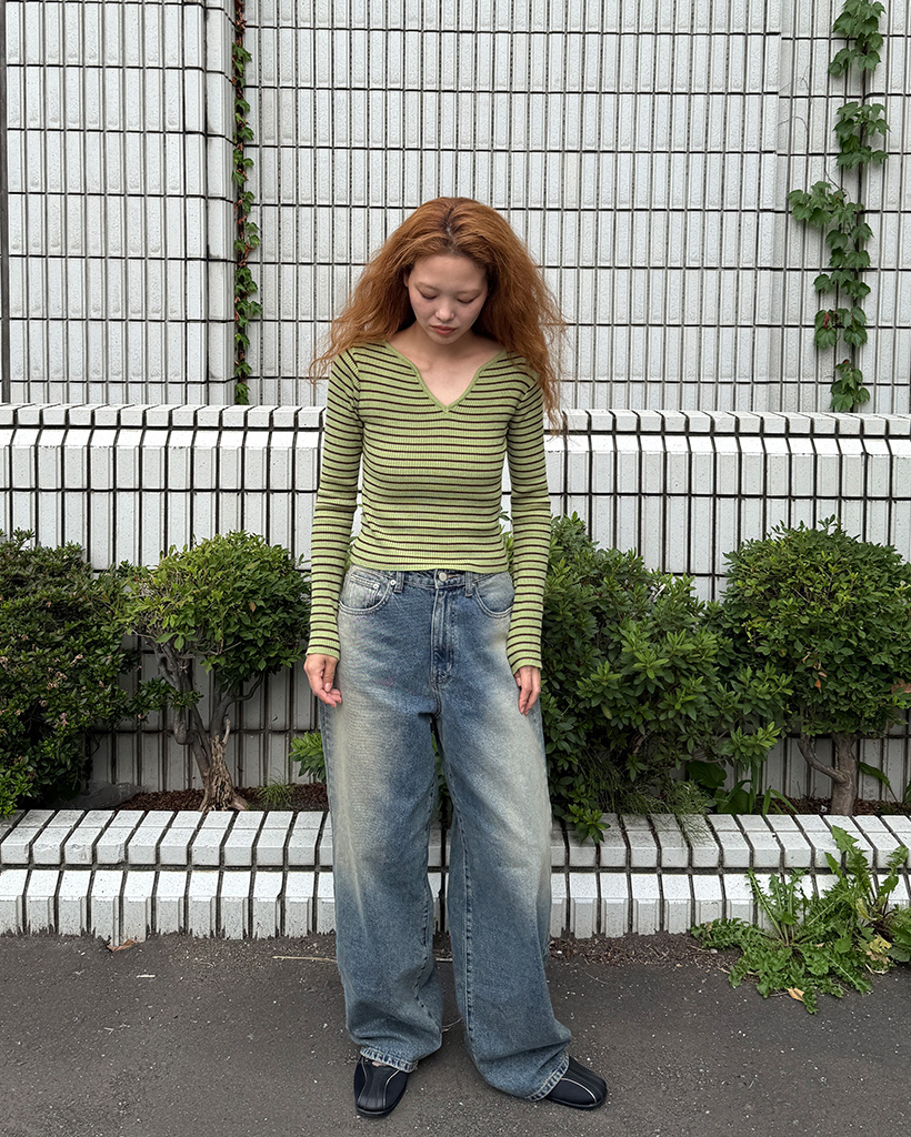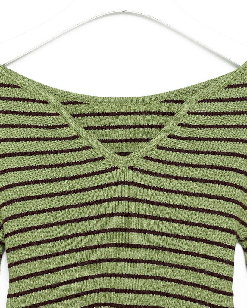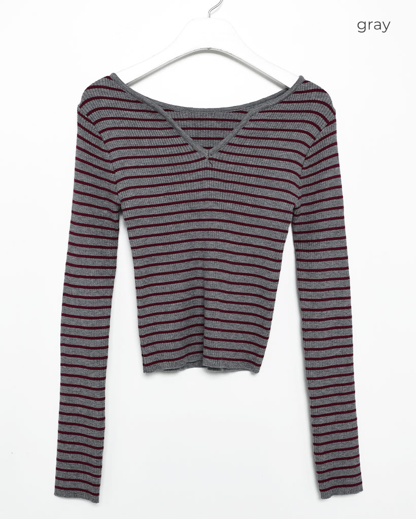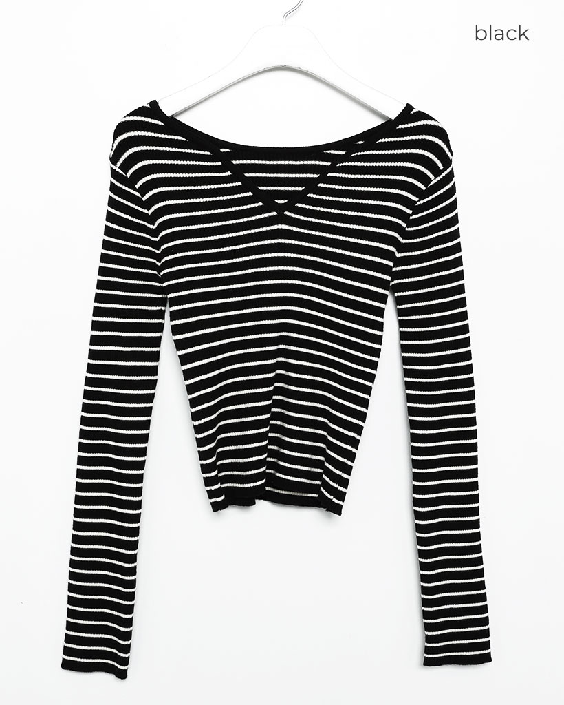 キーネックボーダーロングスリーブニット