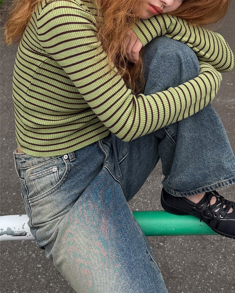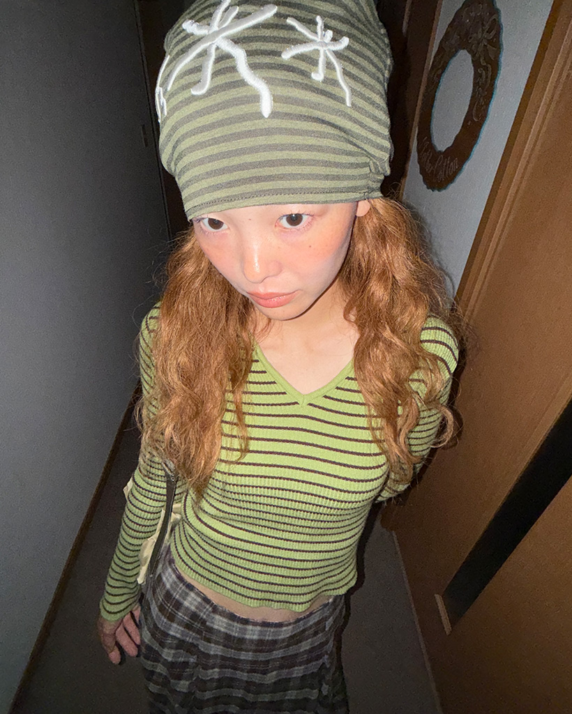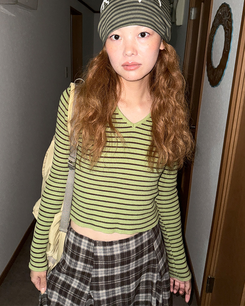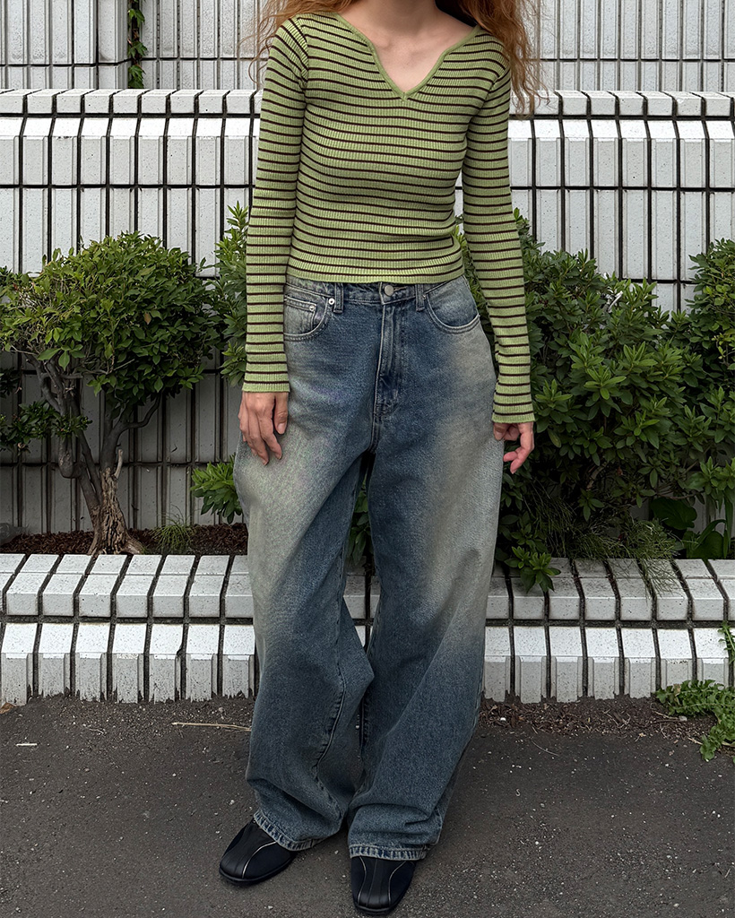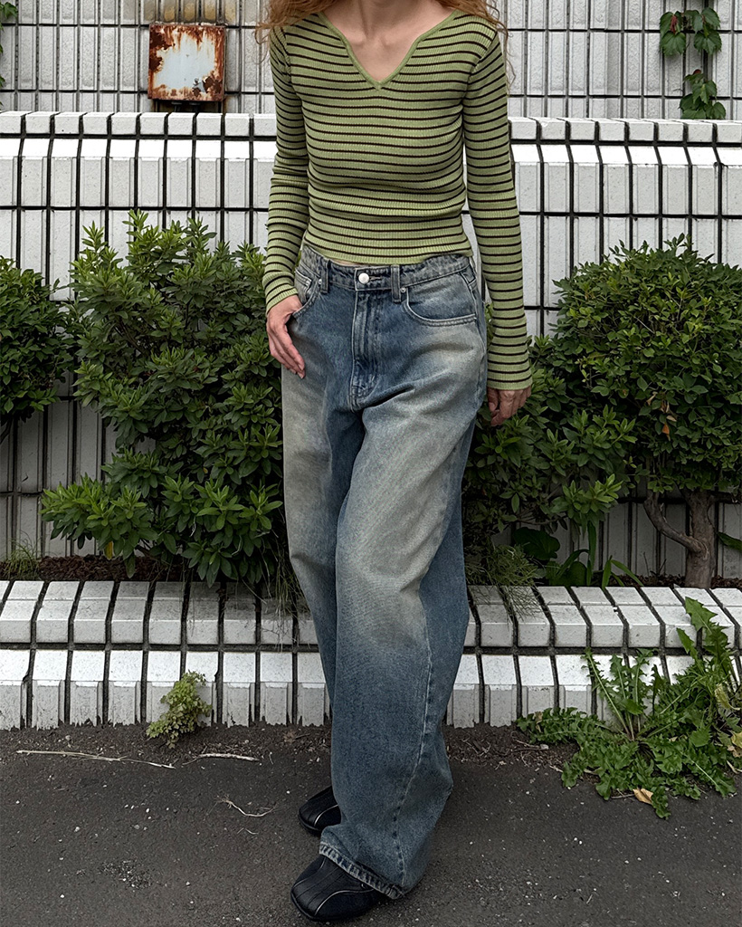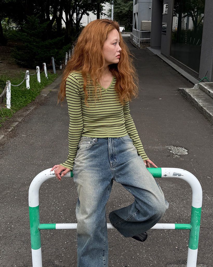 キーネックボーダーロングスリーブニット