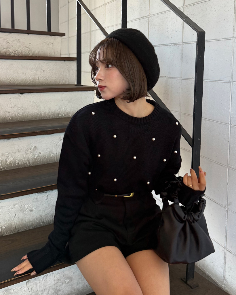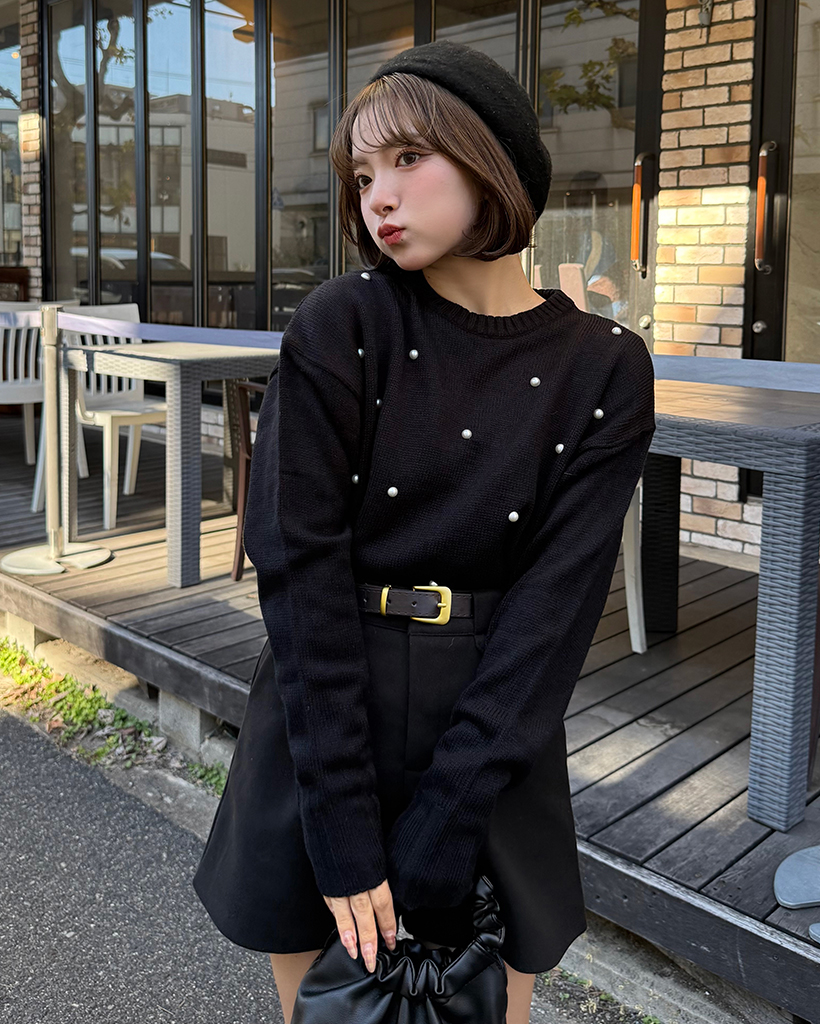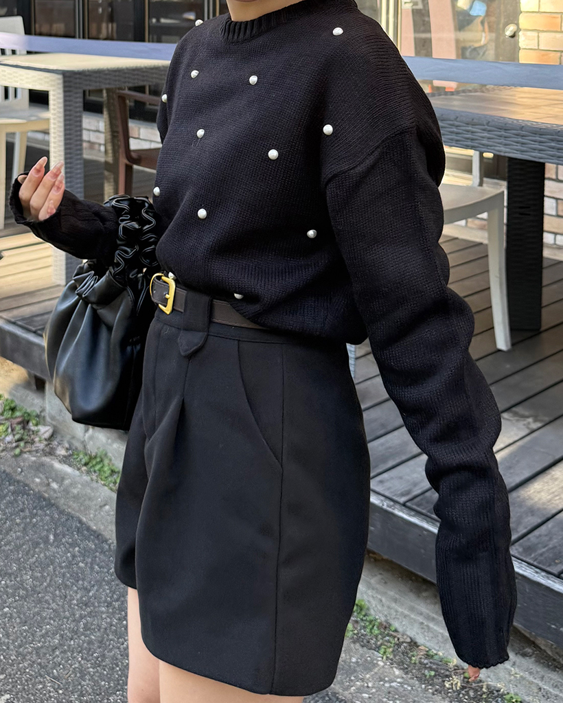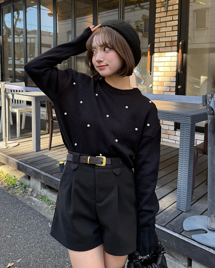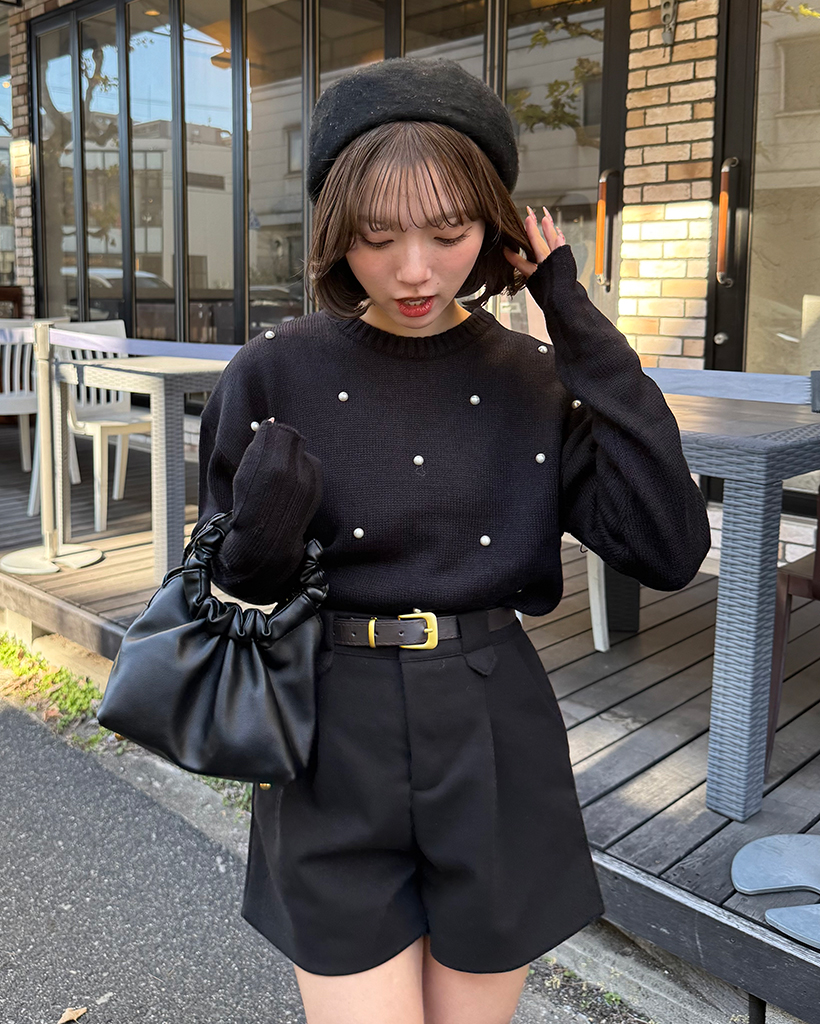 パールワイドリブヘムセミクロップドセーター