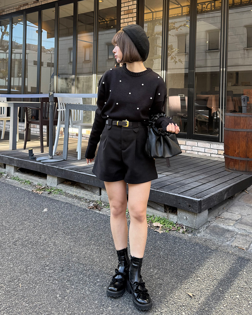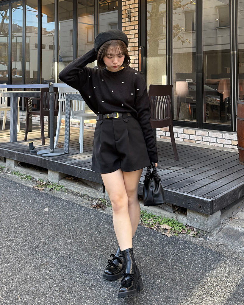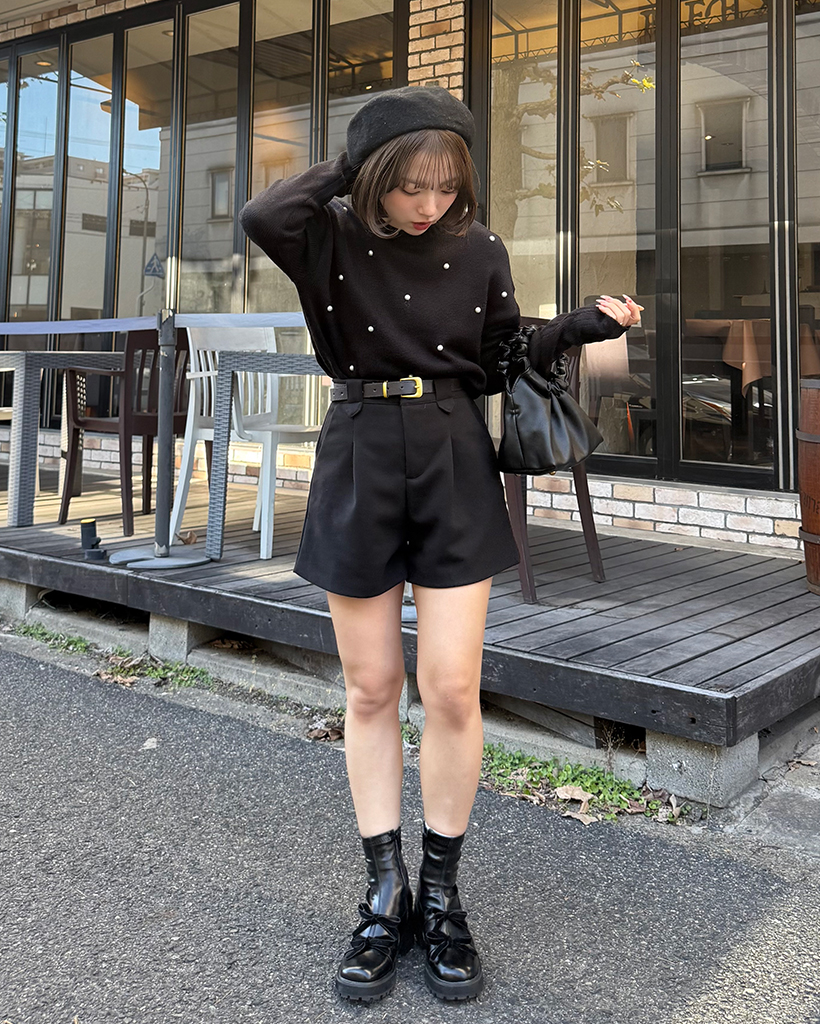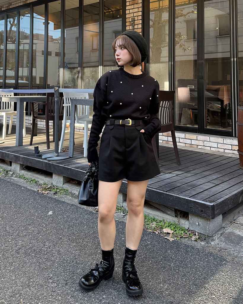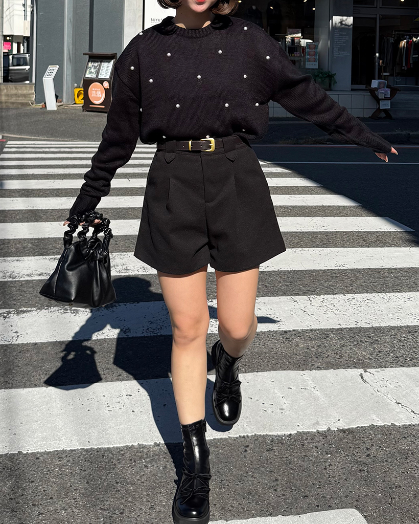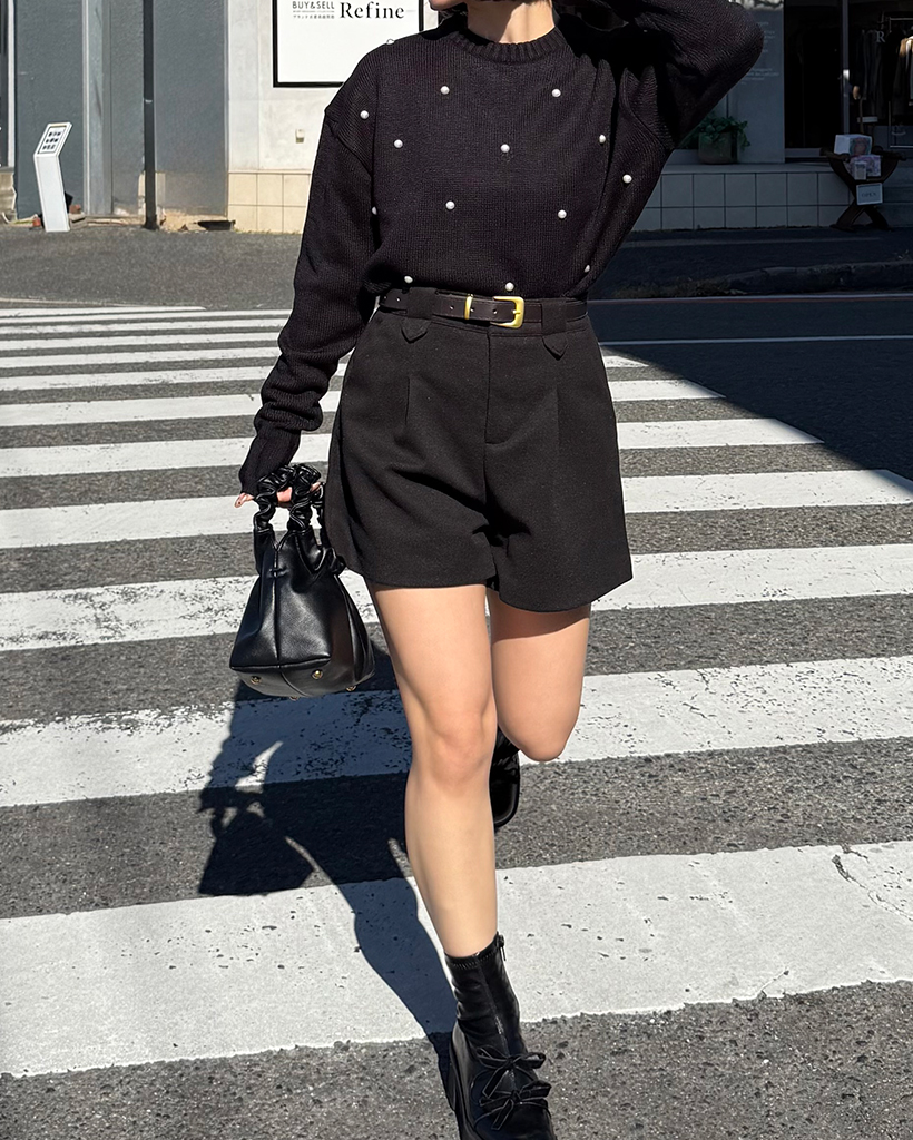 パールワイドリブヘムセミクロップドセーター