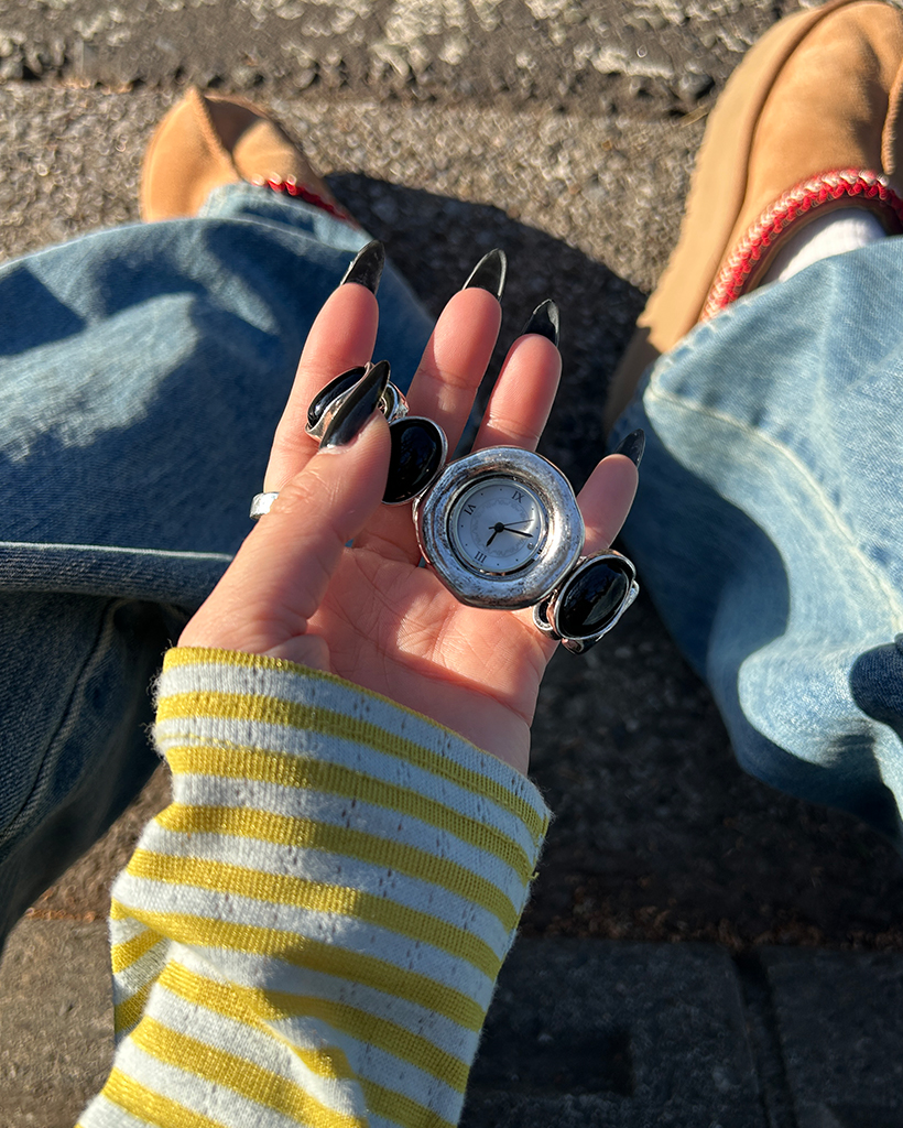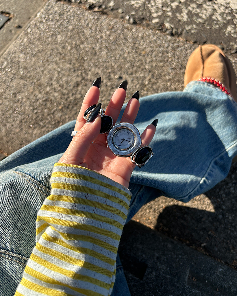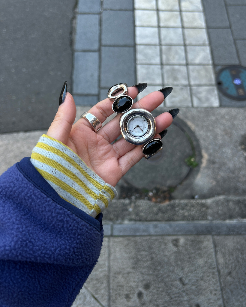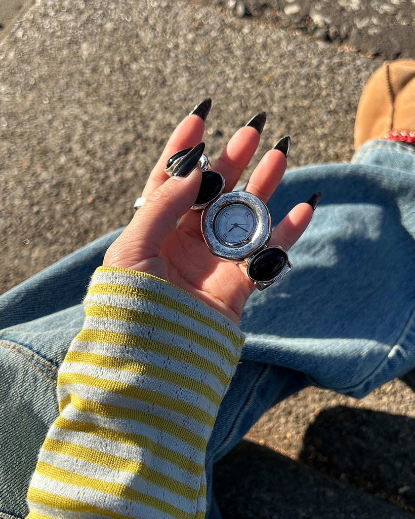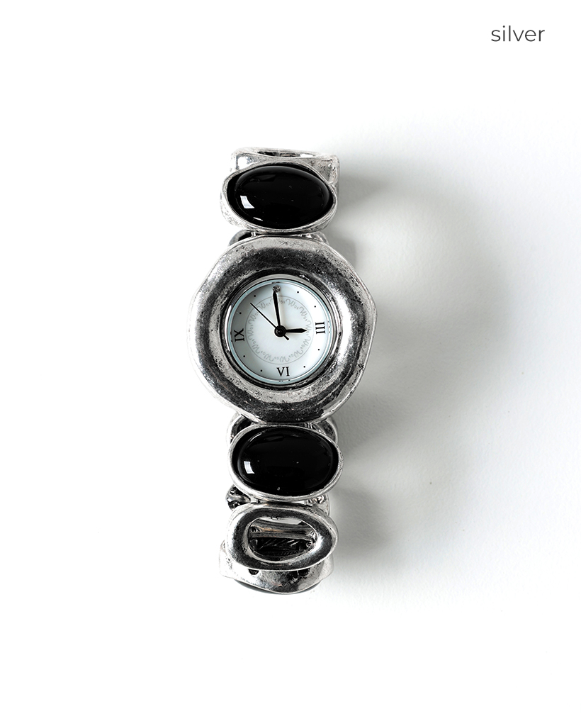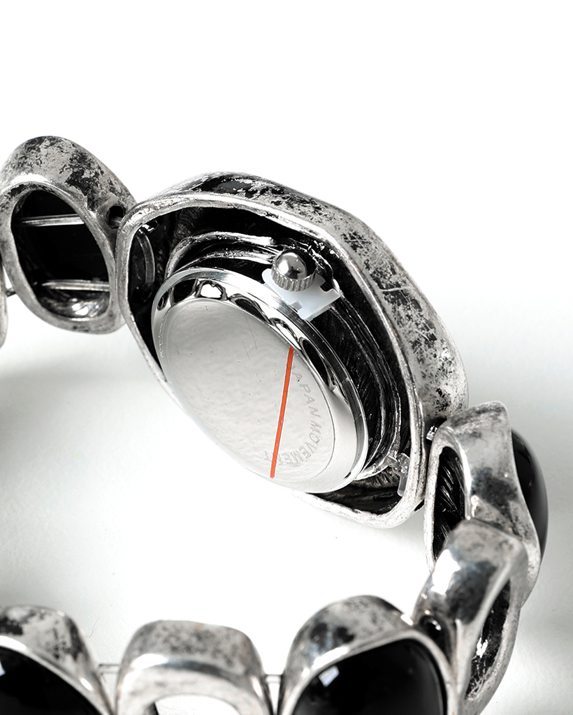 ブラックストーンシルバーブレスレットハンドウォッチ