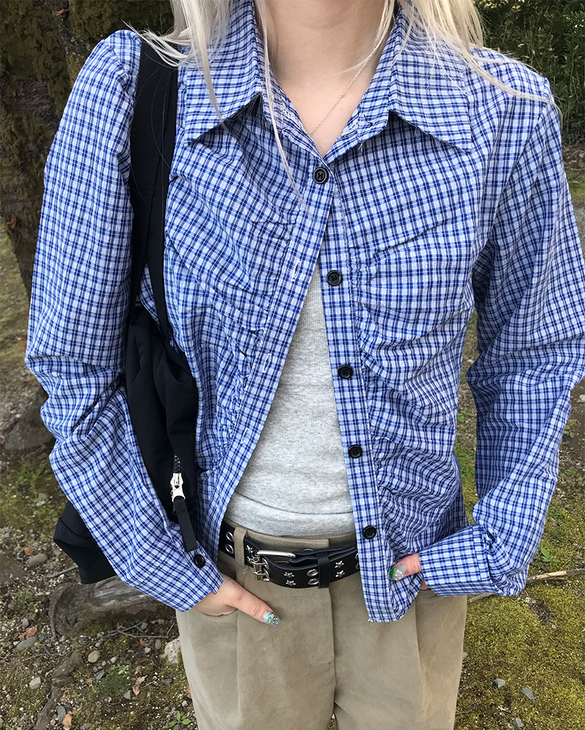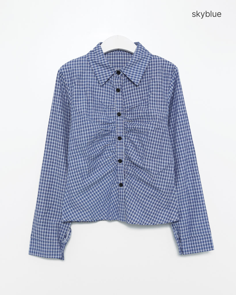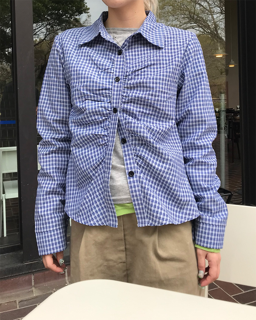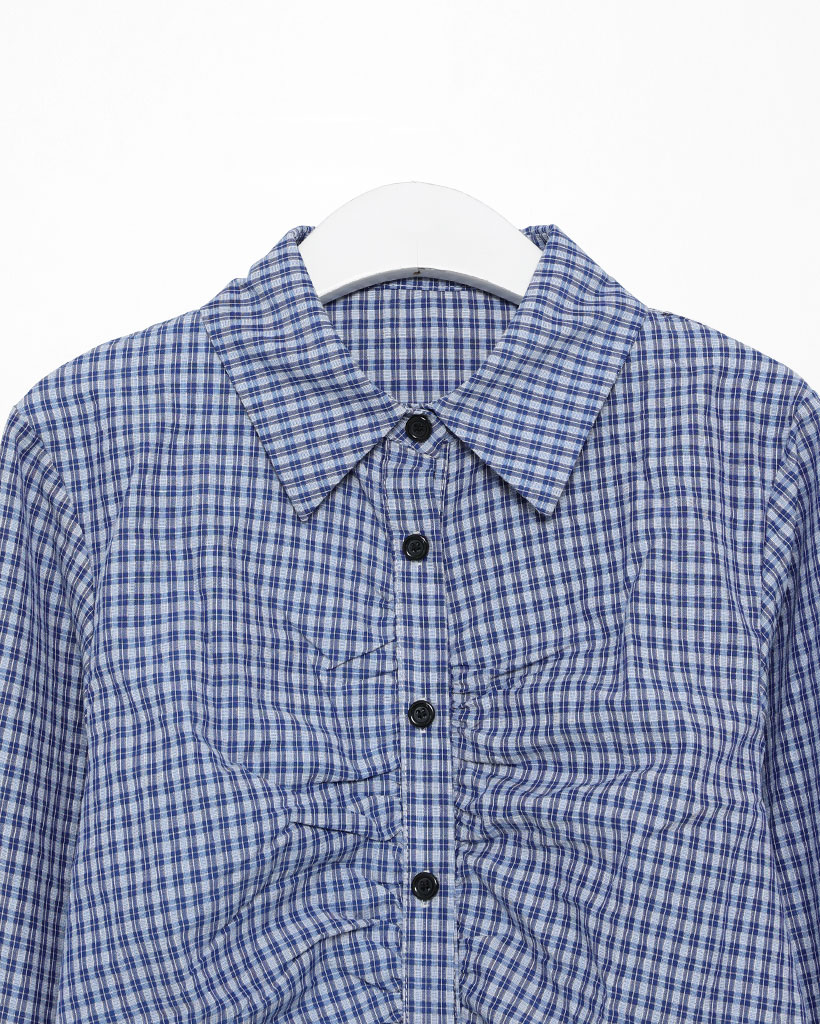 チェックギャザークロップシャツ