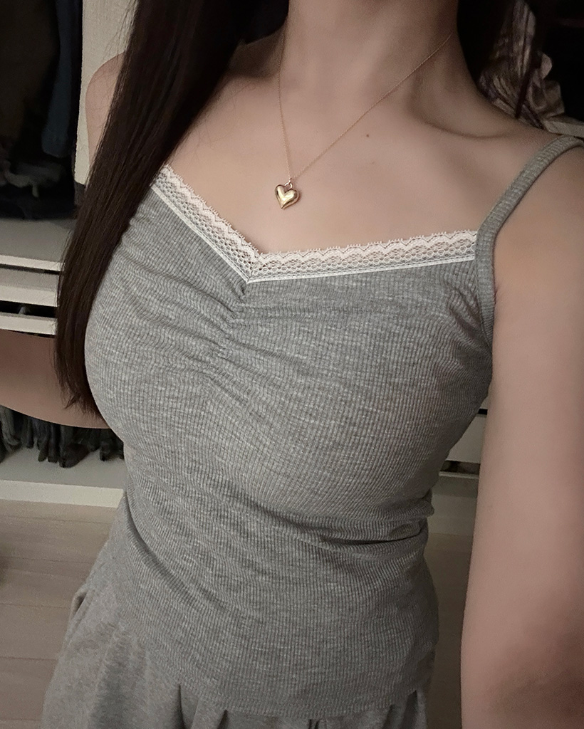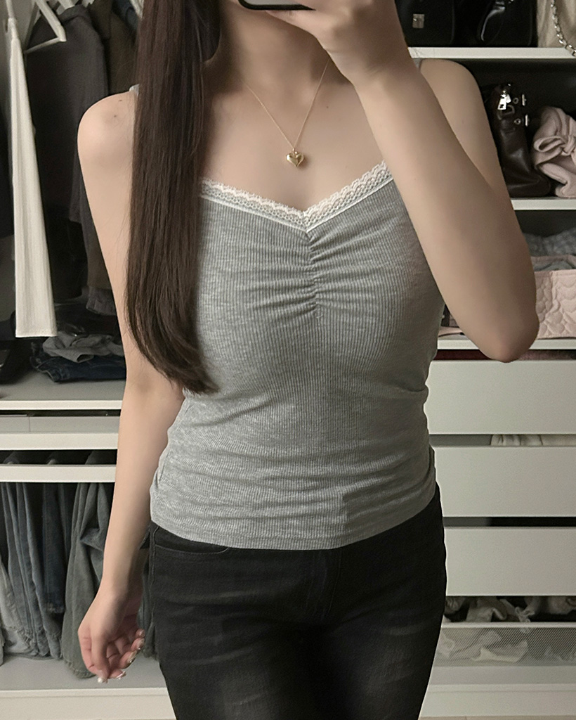 シャーリングレーススリーブレス