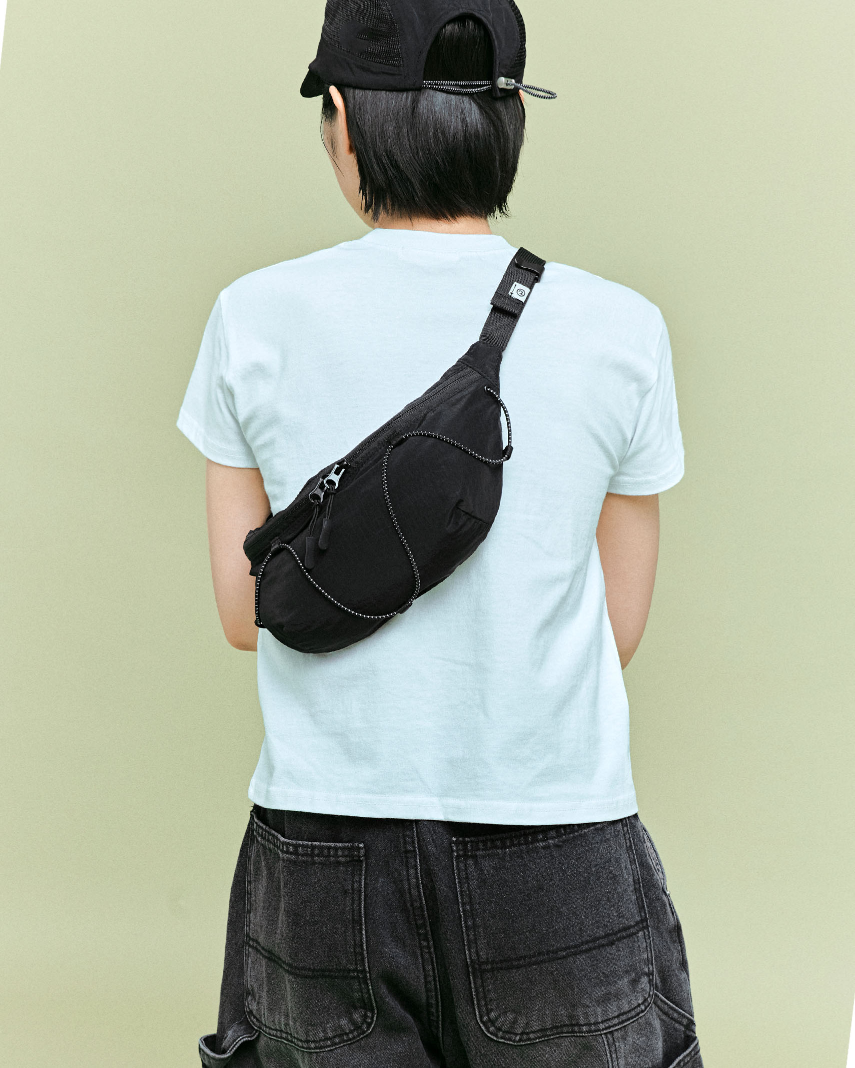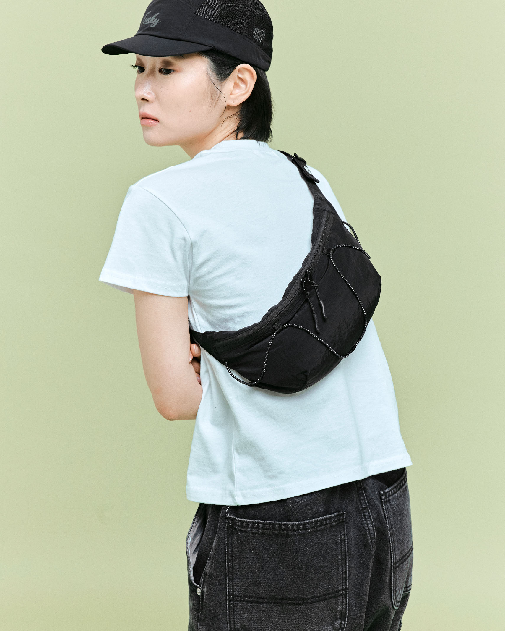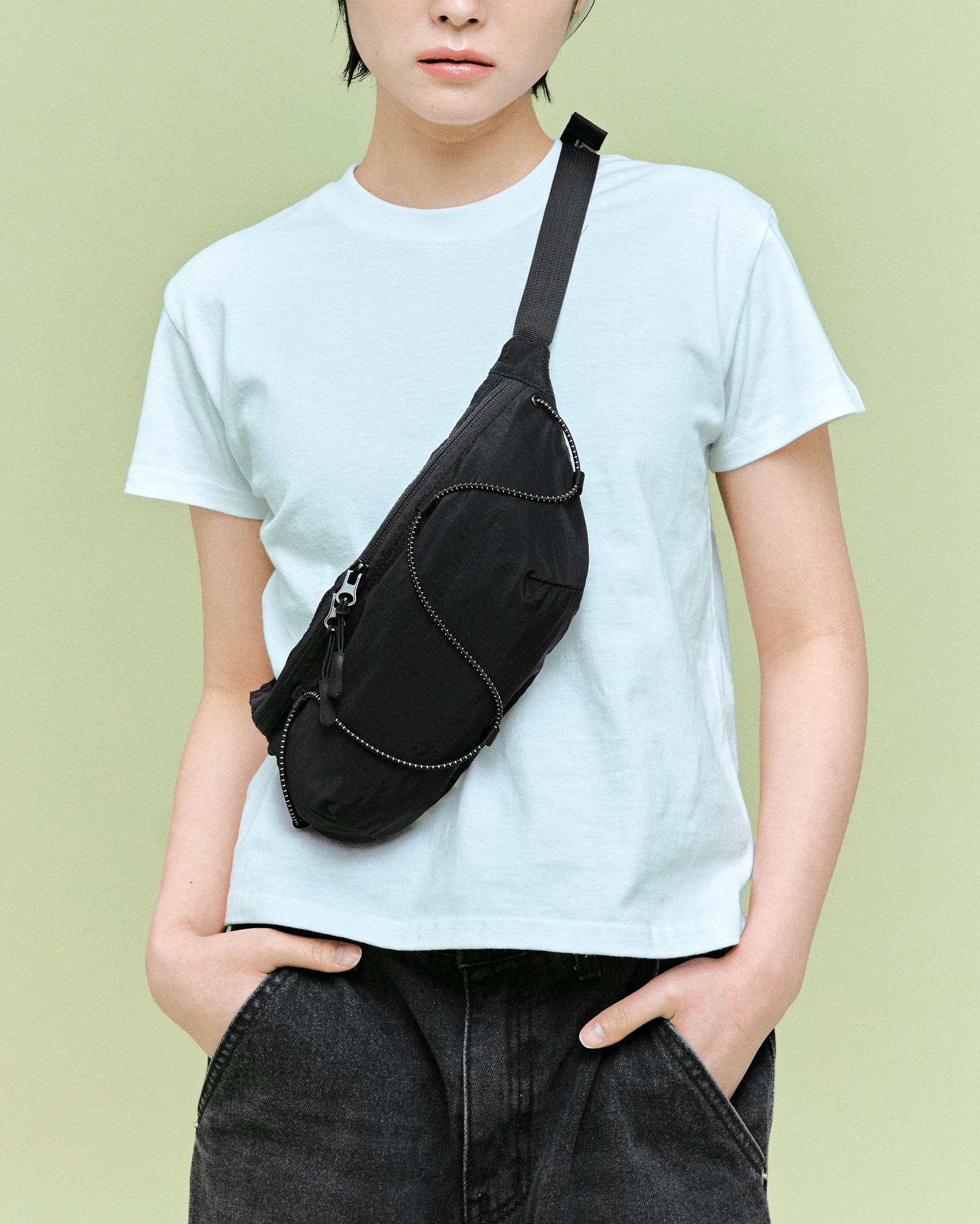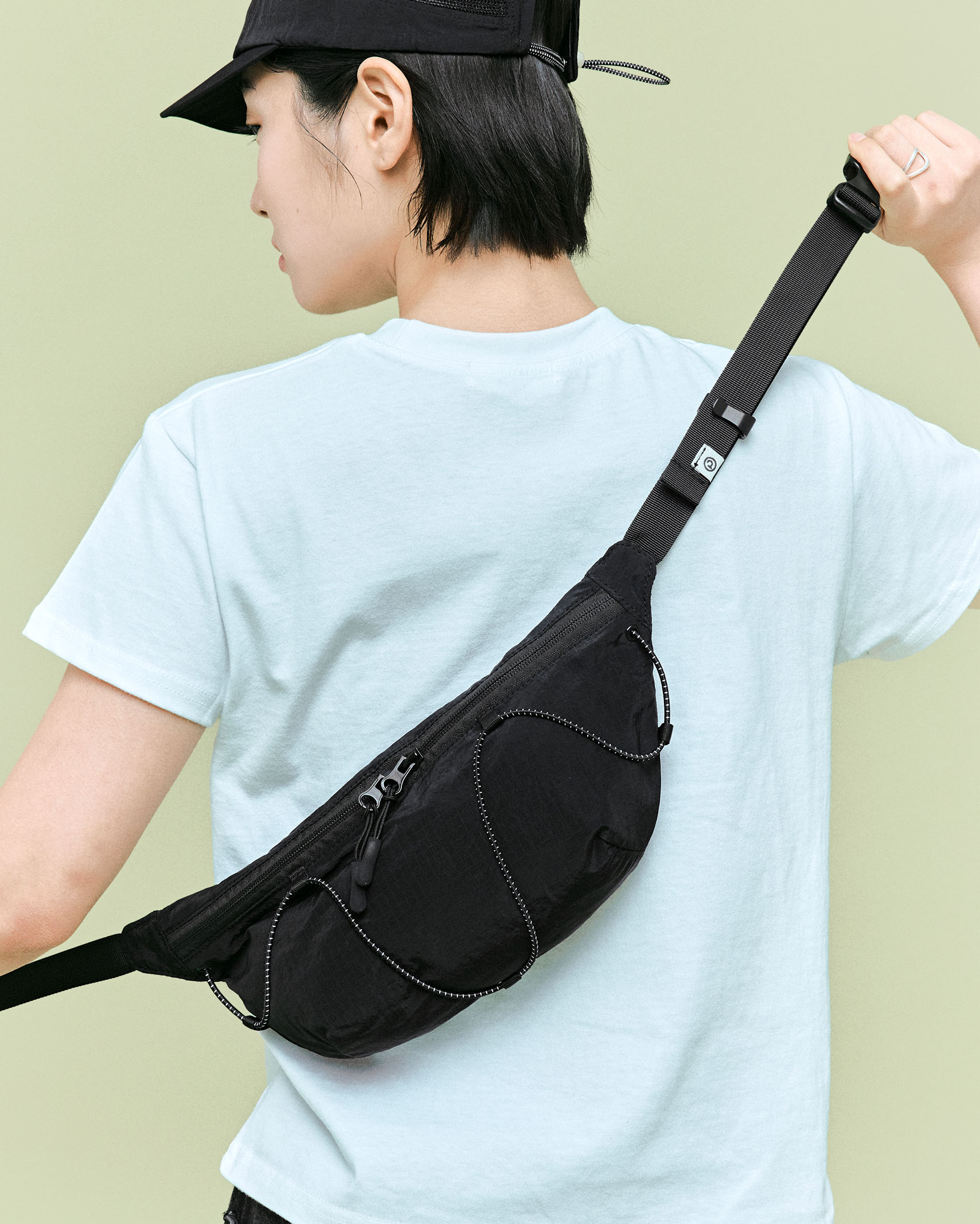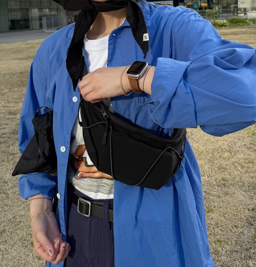 (ORIGINAL) ライトナイロンウエストバッグ (black)