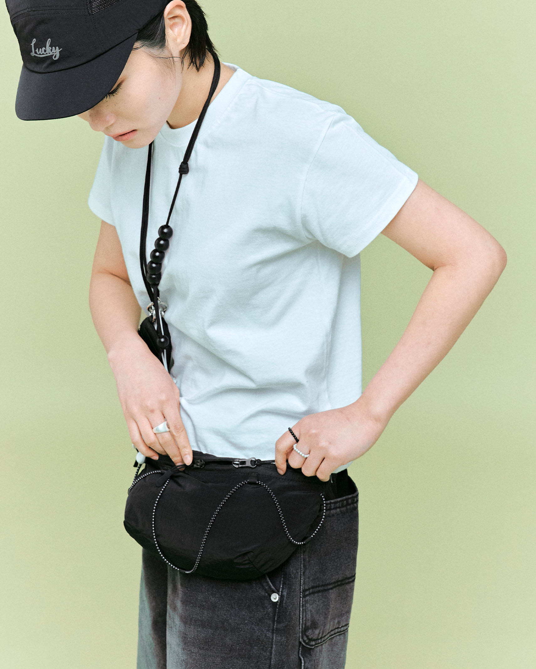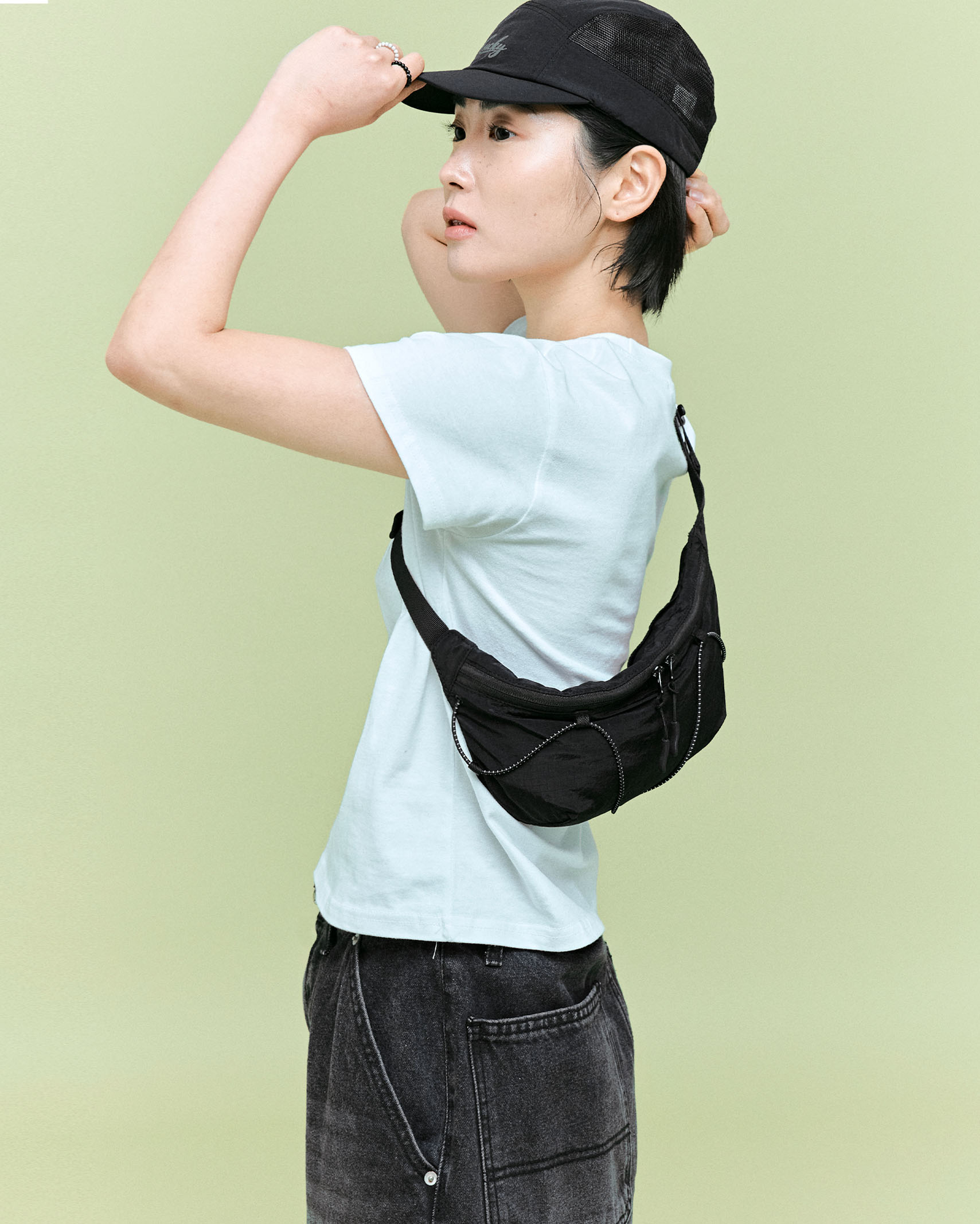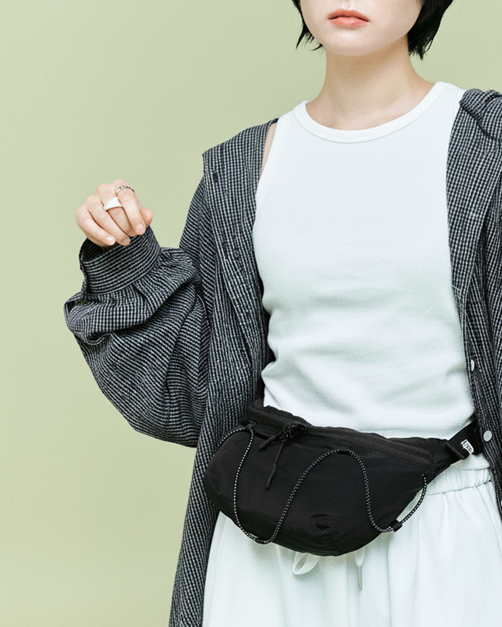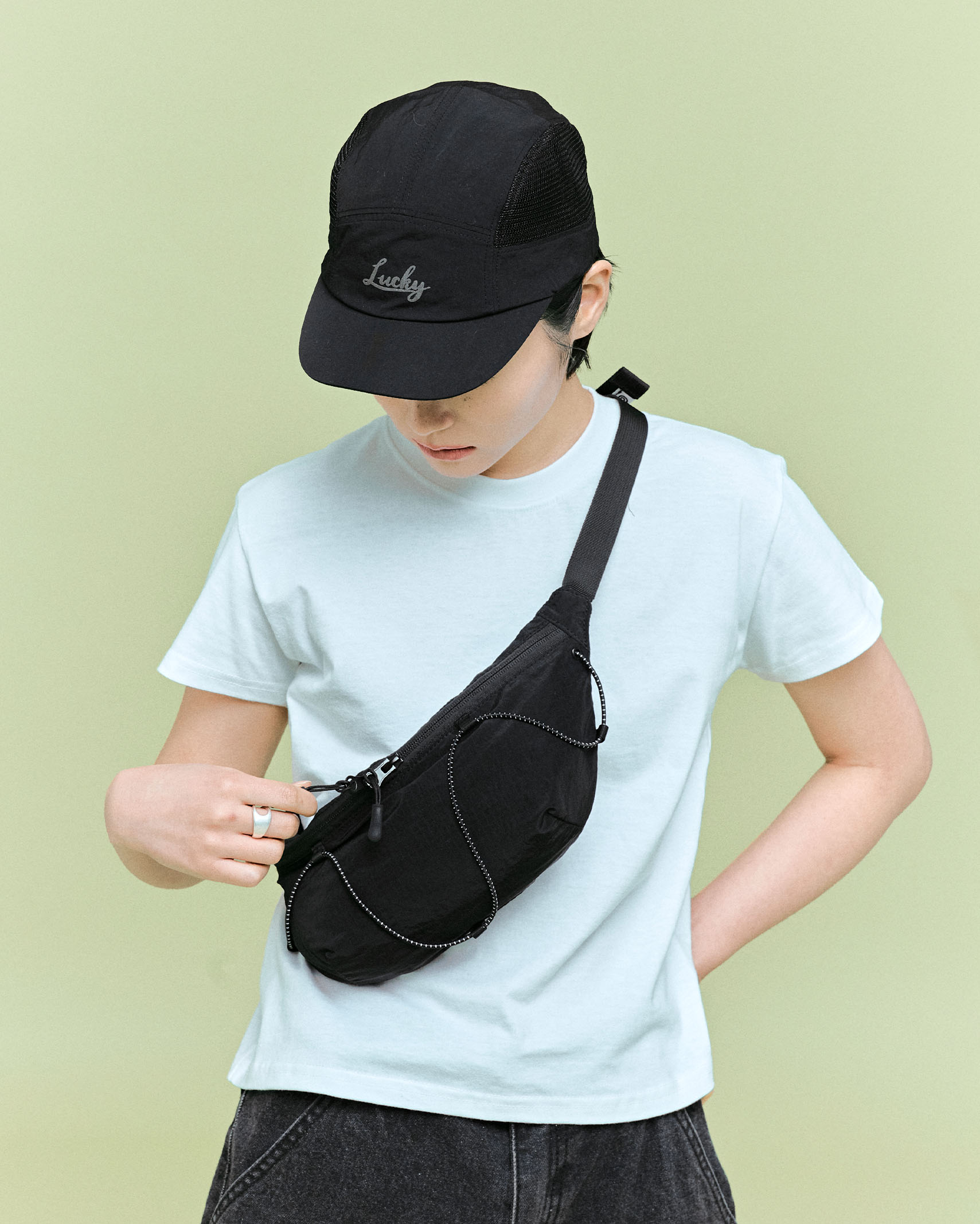 (ORIGINAL) ライトナイロンウエストバッグ (black)