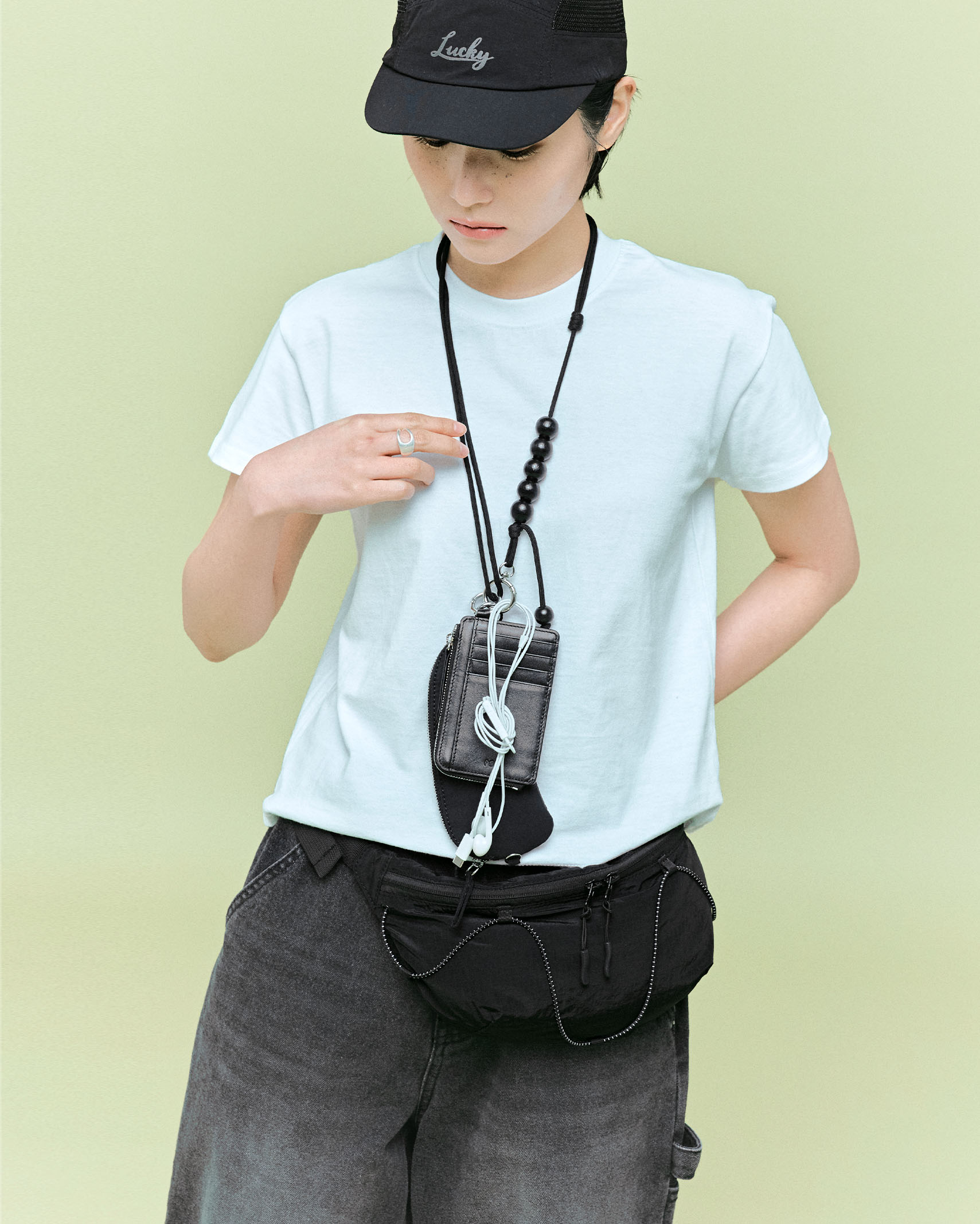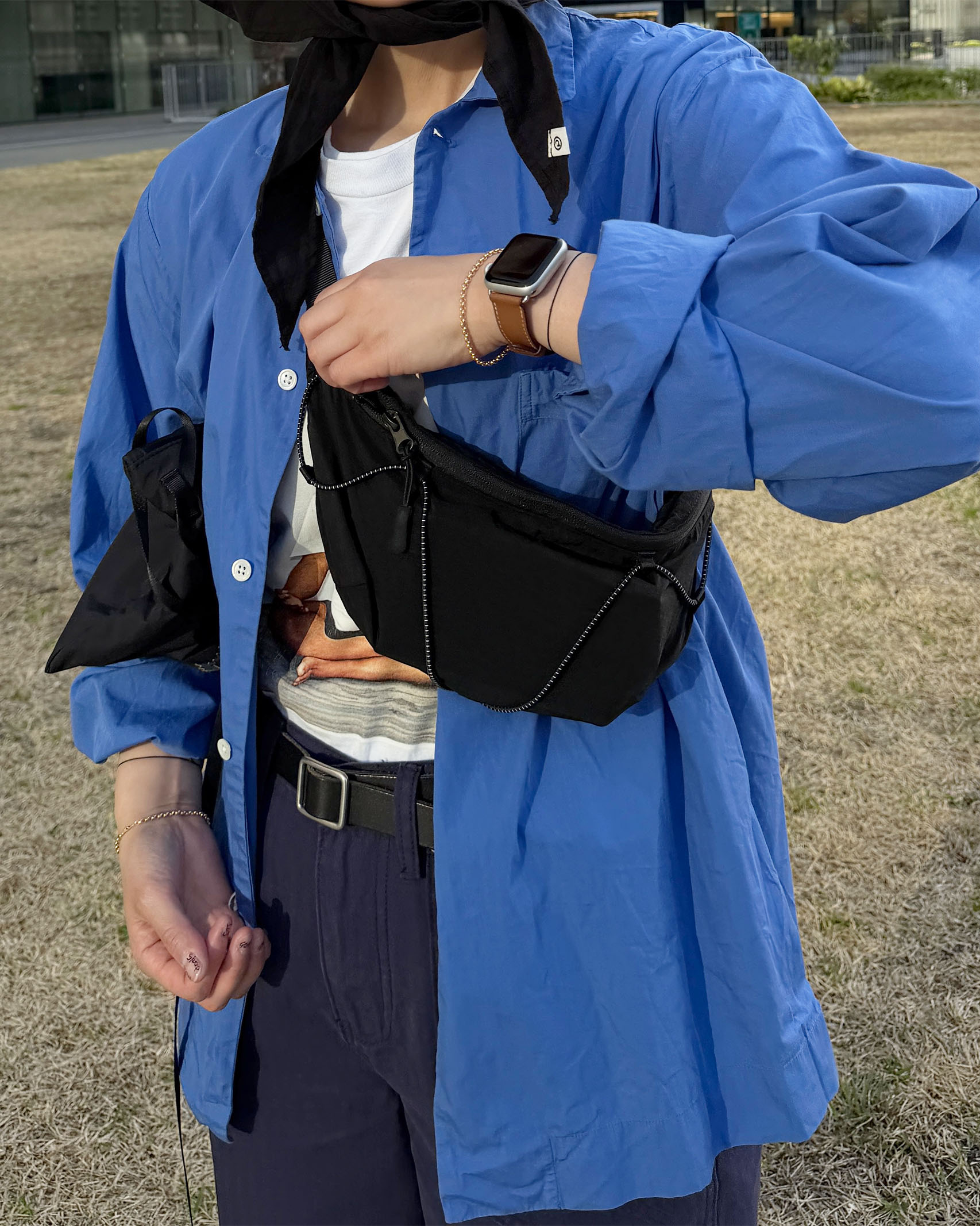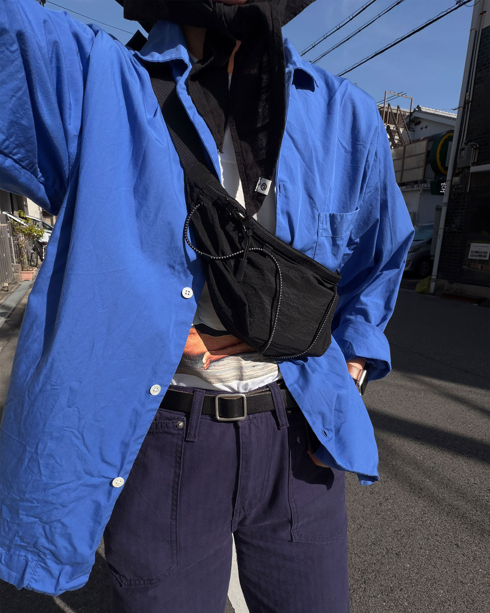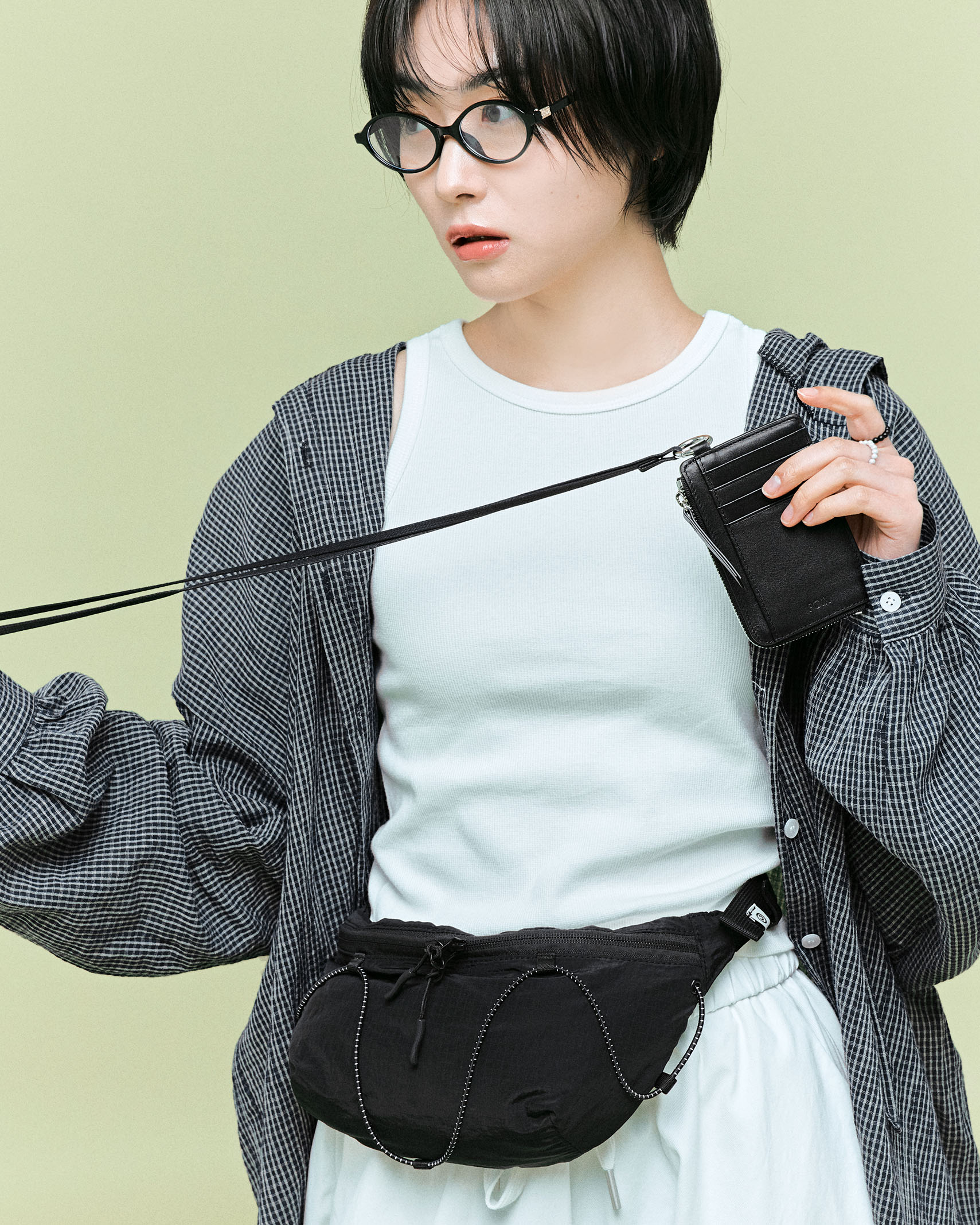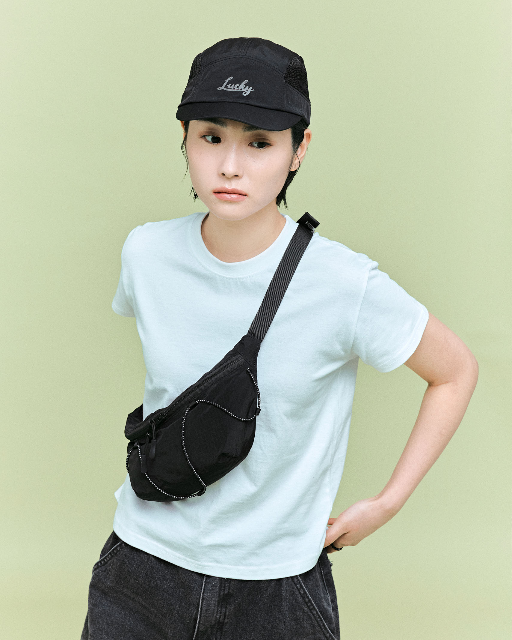 (ORIGINAL) ライトナイロンウエストバッグ (black)