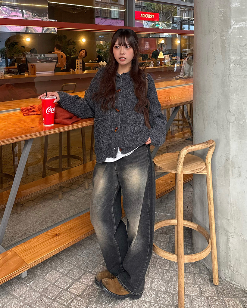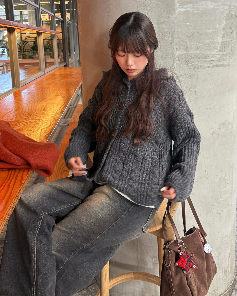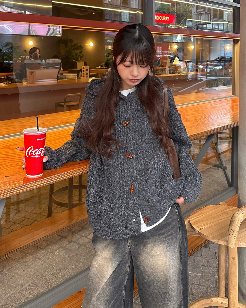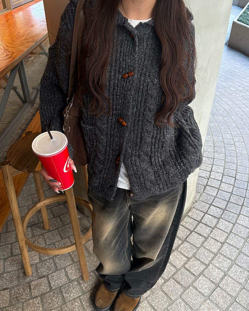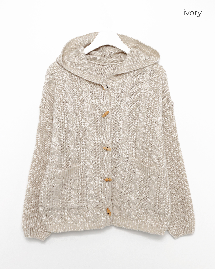 ダッフルケーブルニットパーカー