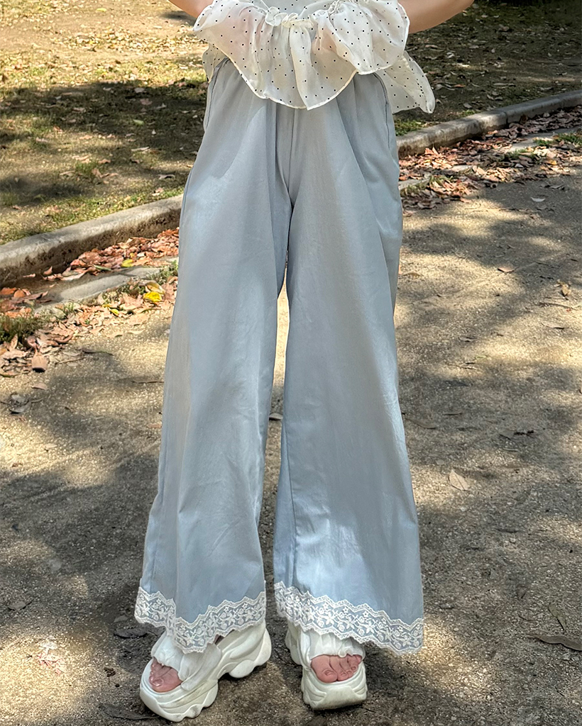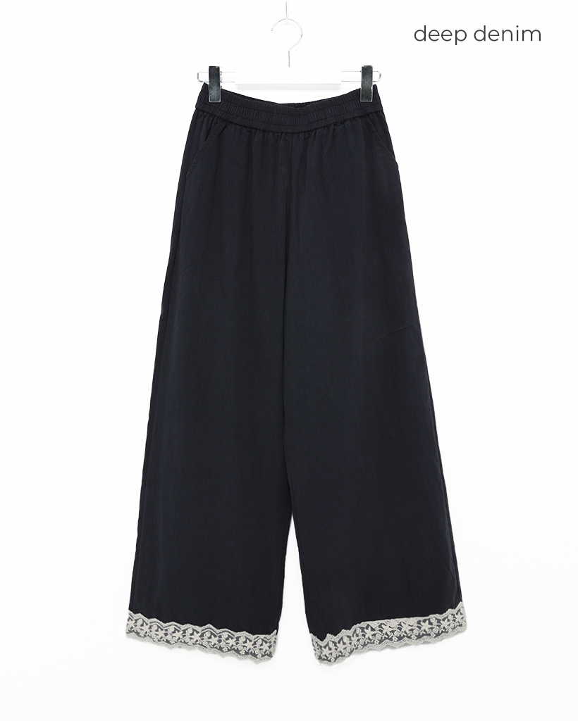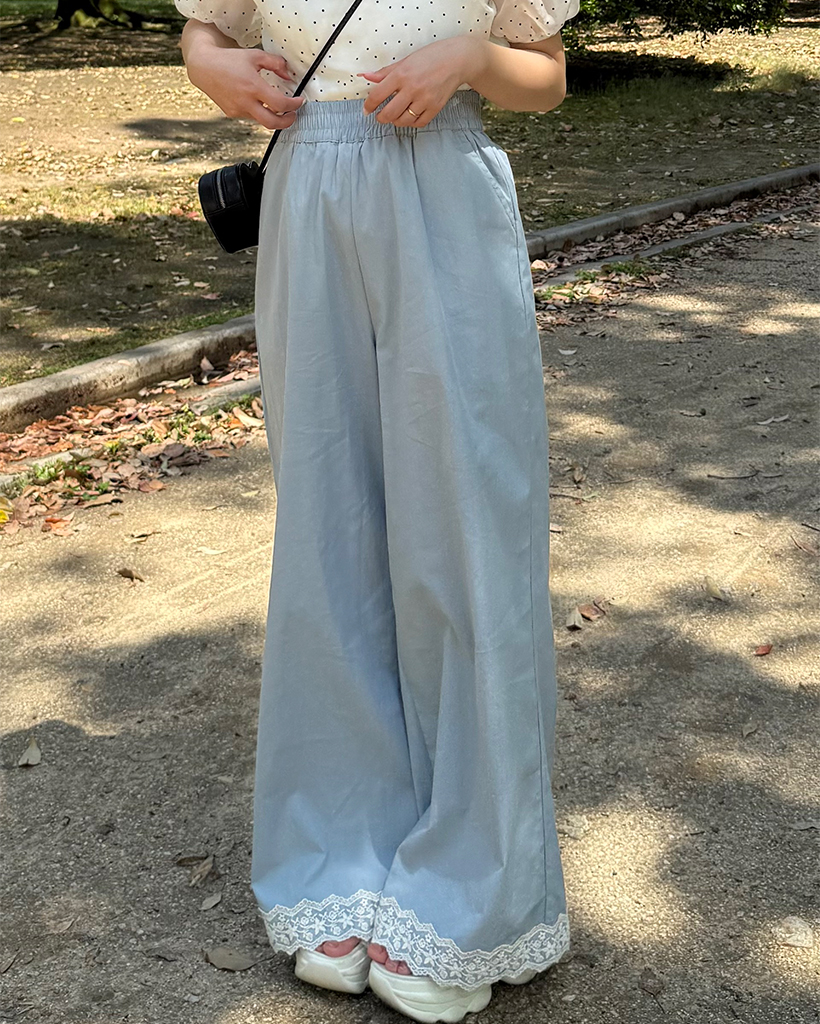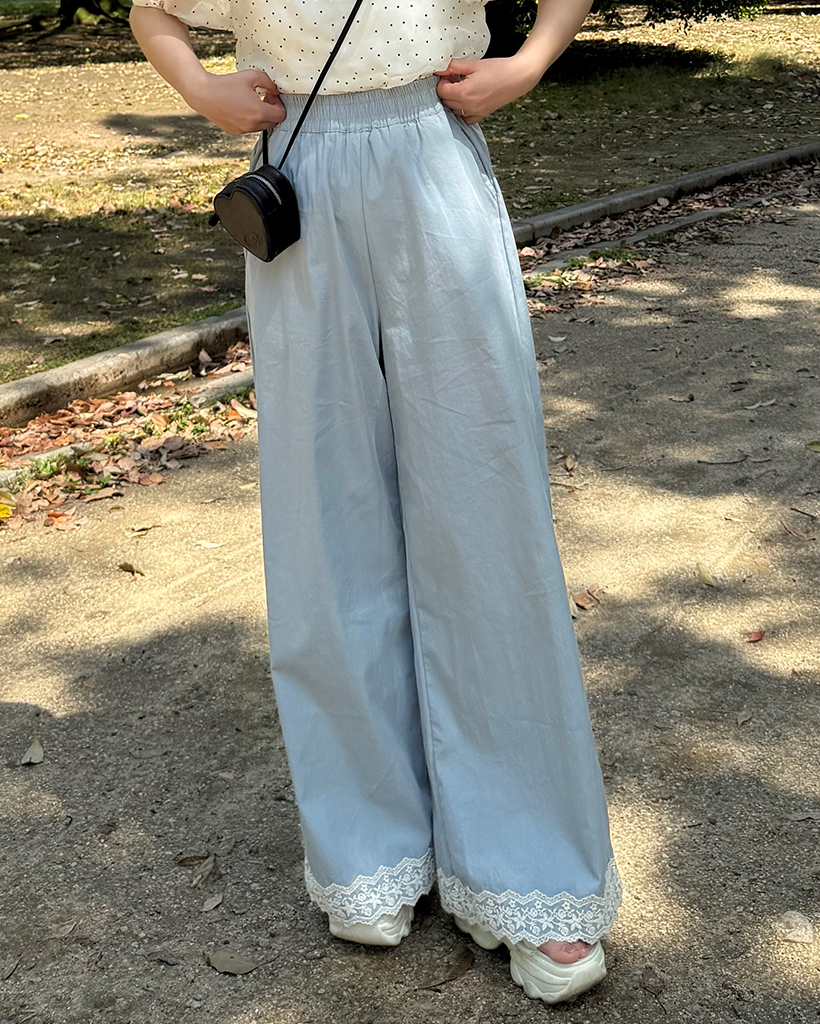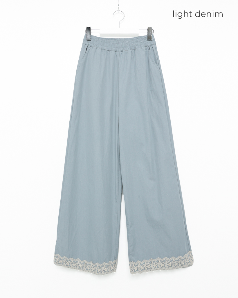フラワーレースヘムワイドパンツ