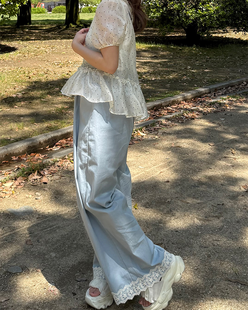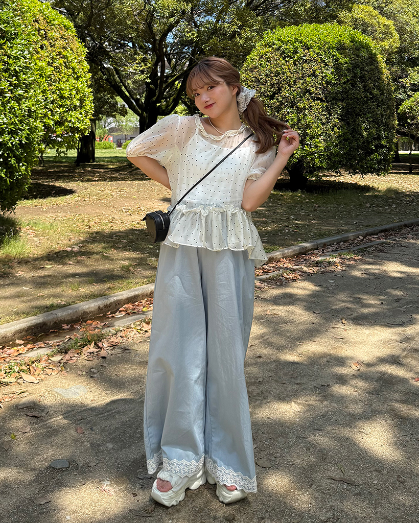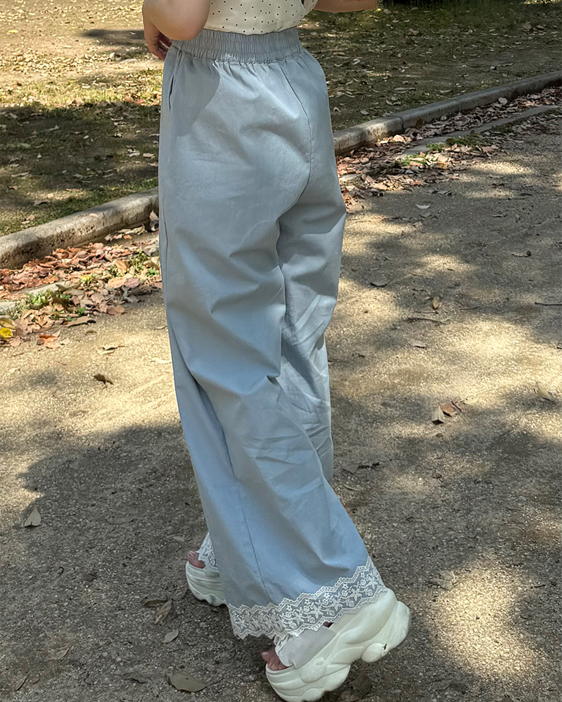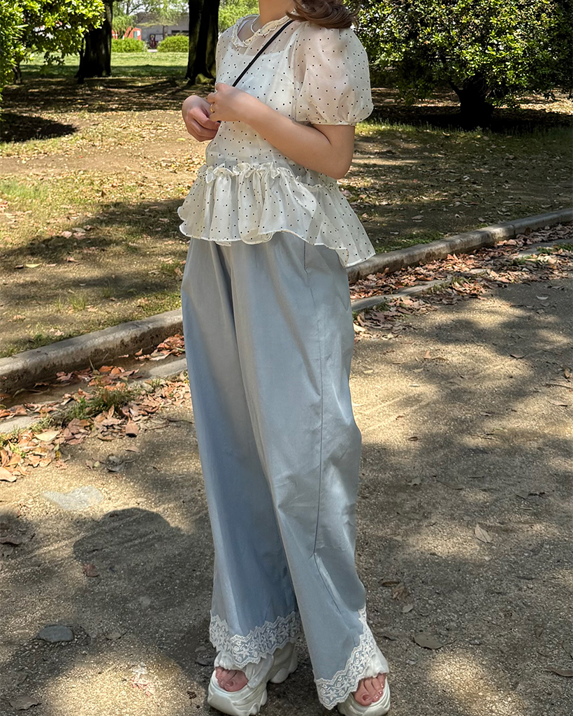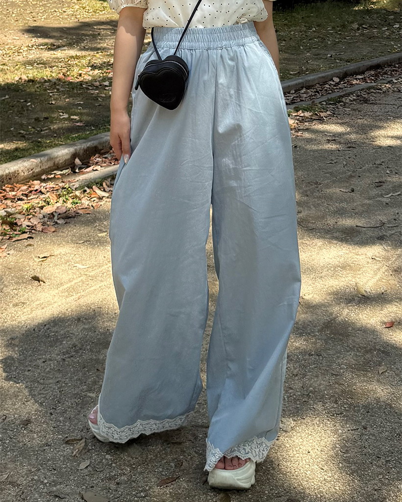 フラワーレースヘムワイドパンツ