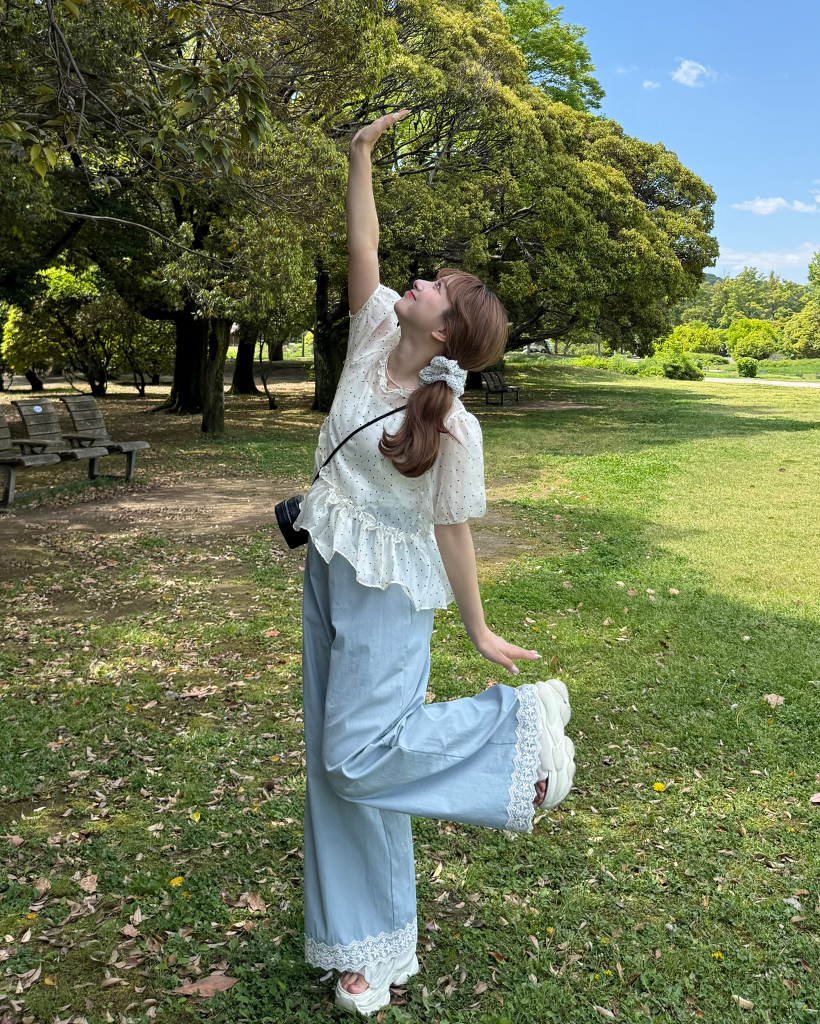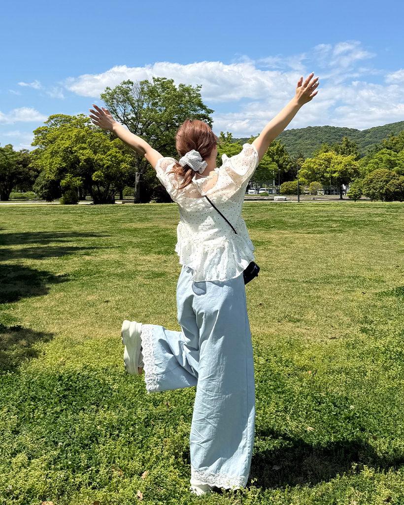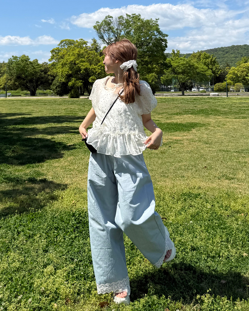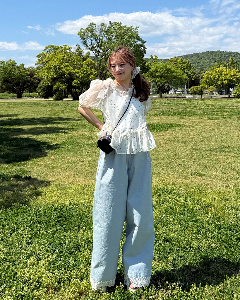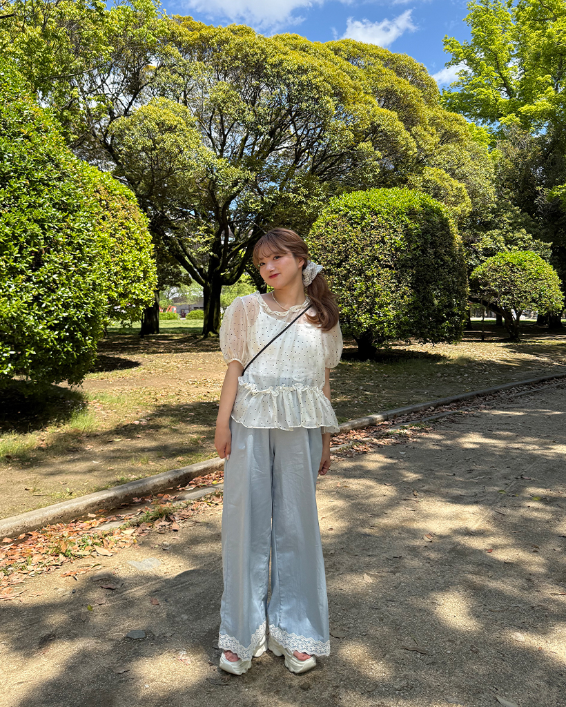 フラワーレースヘムワイドパンツ
