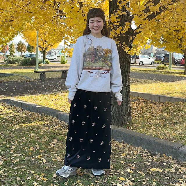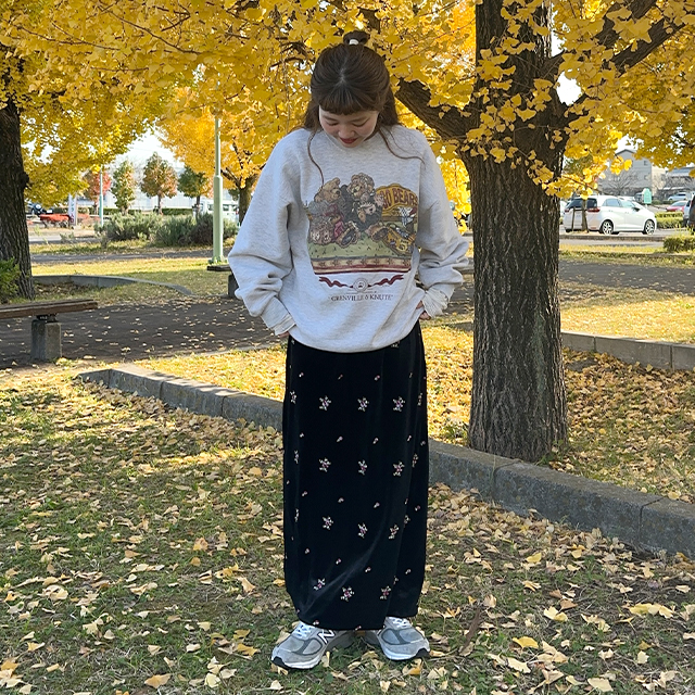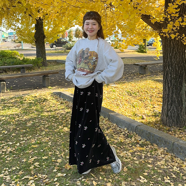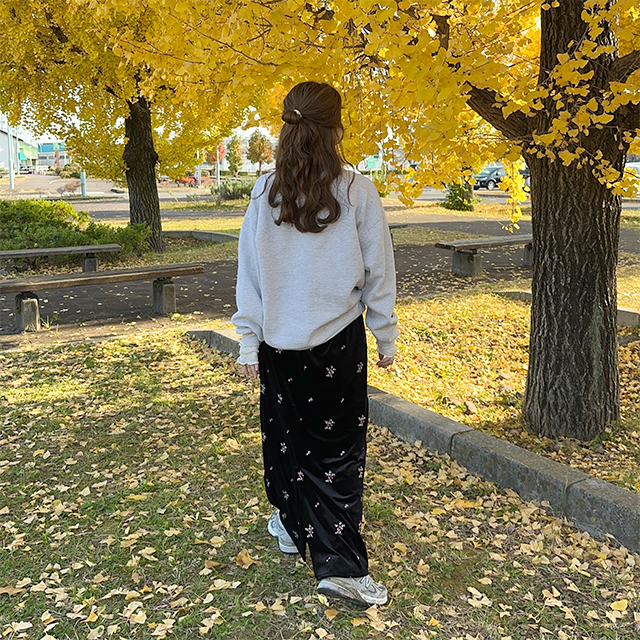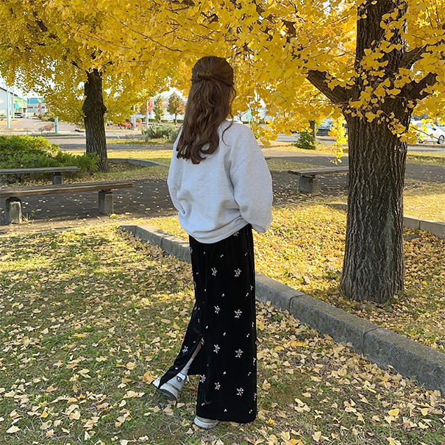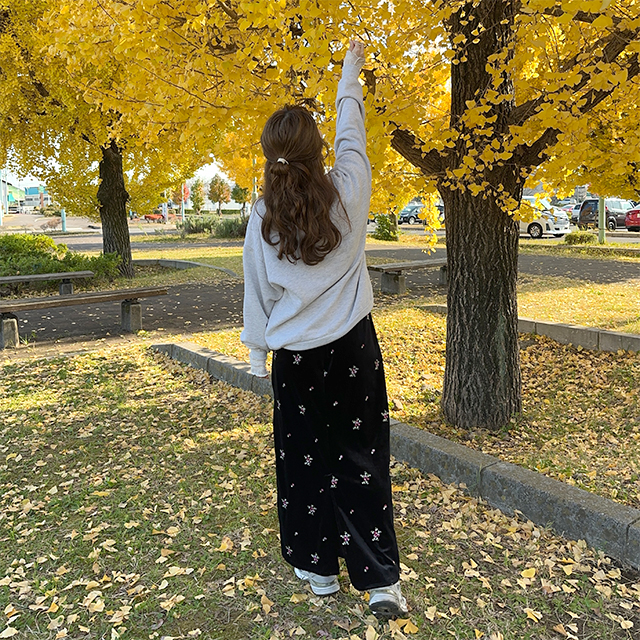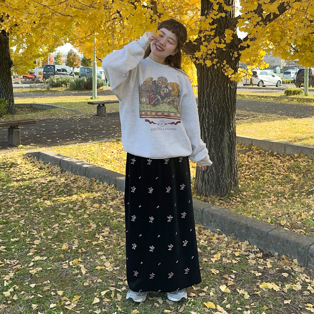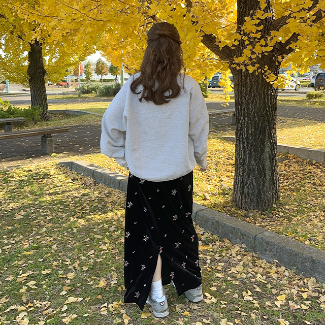 花柄ベルベットロングスカート