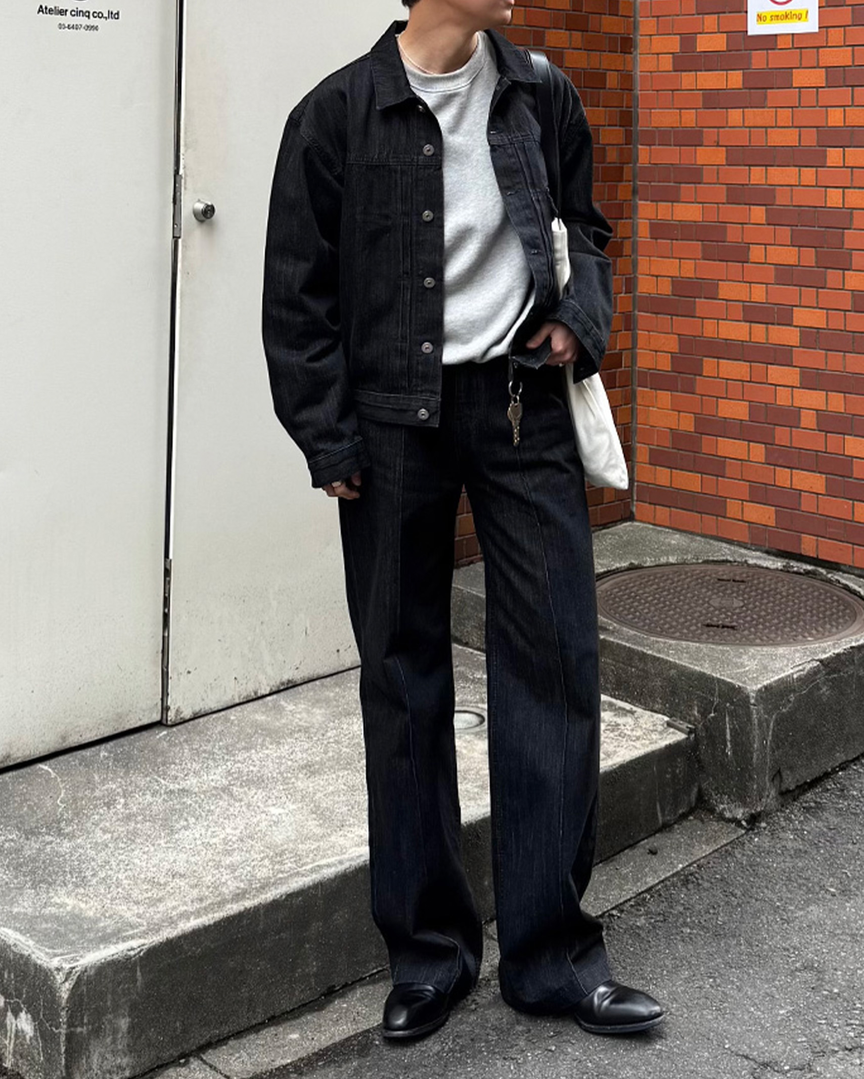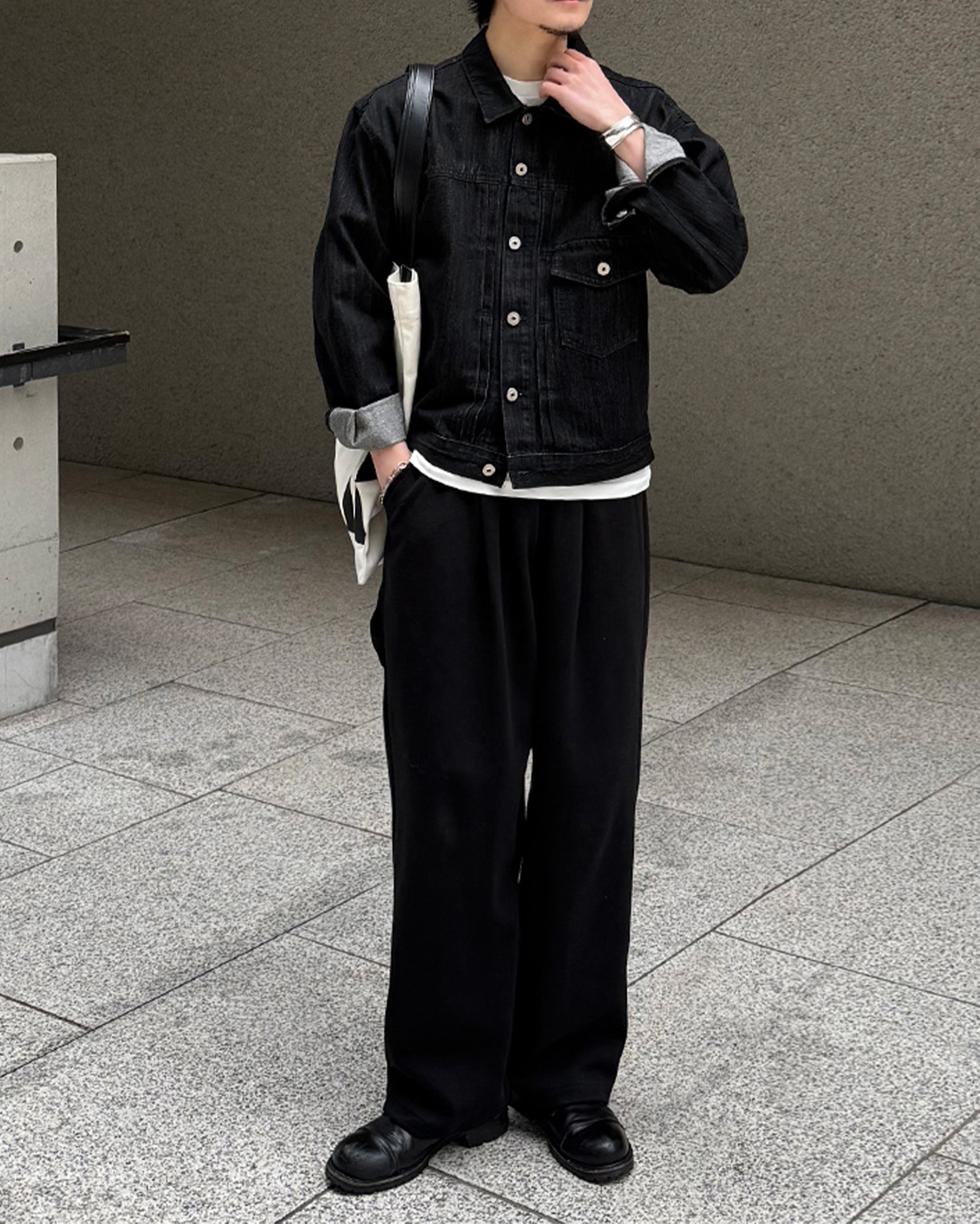 (ORIGINAL) センターピンタックデニムジャケット (deep black)