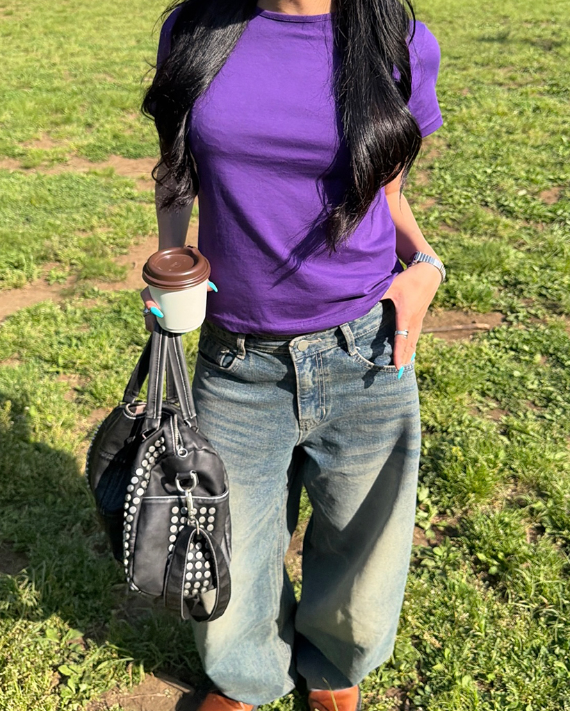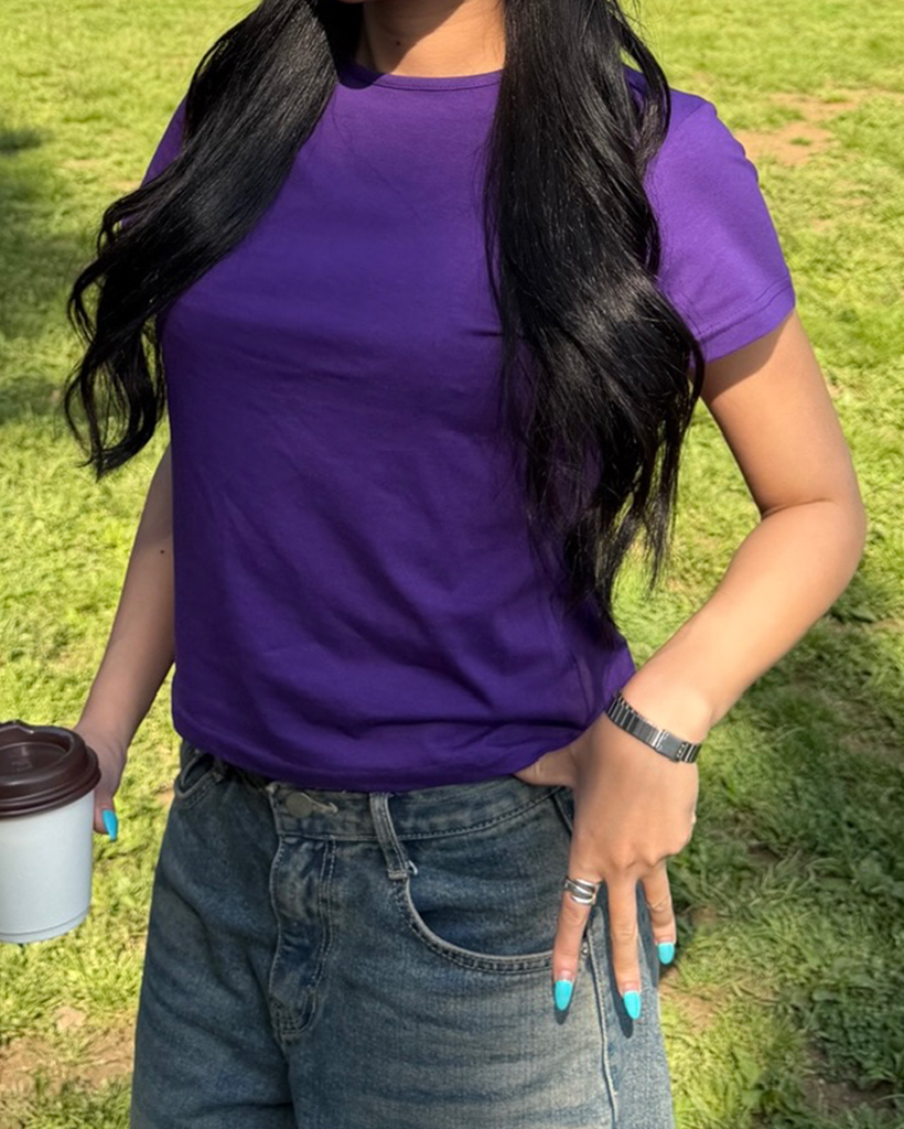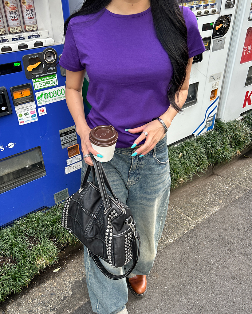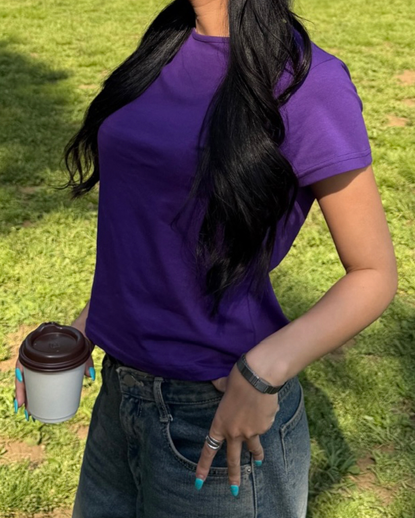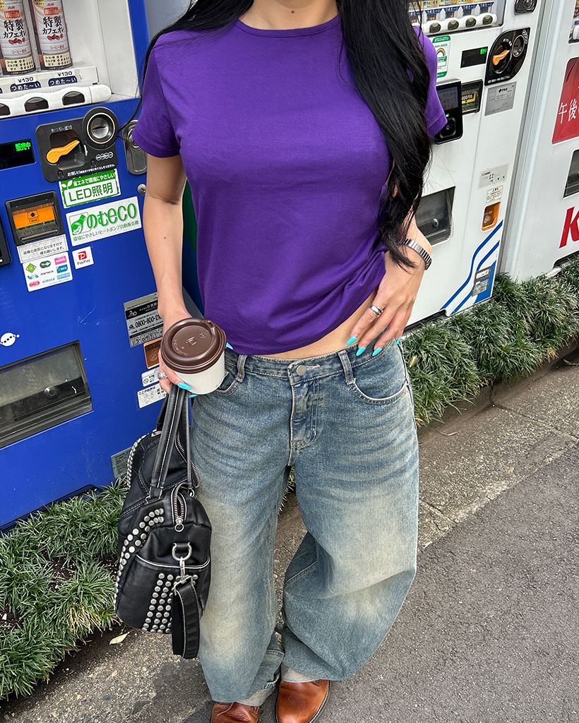 セミクロップドショートスリーブTシャツ
