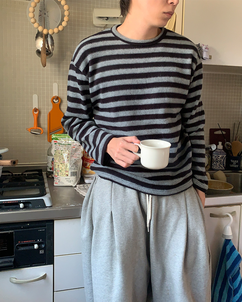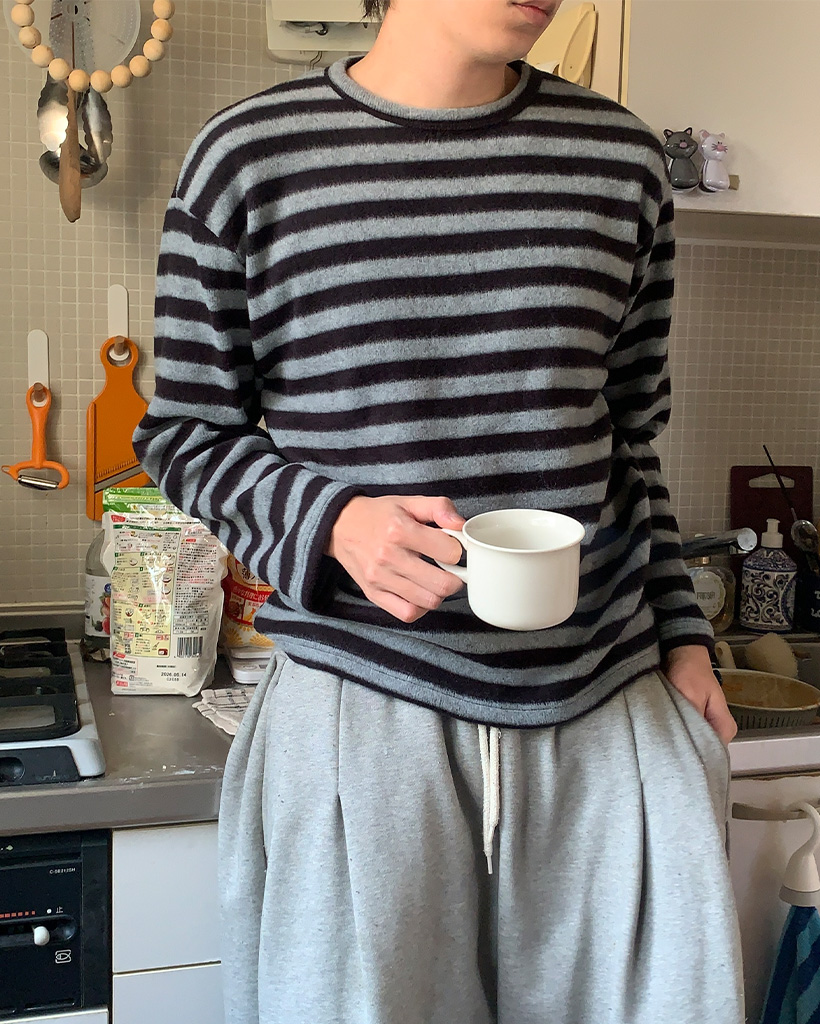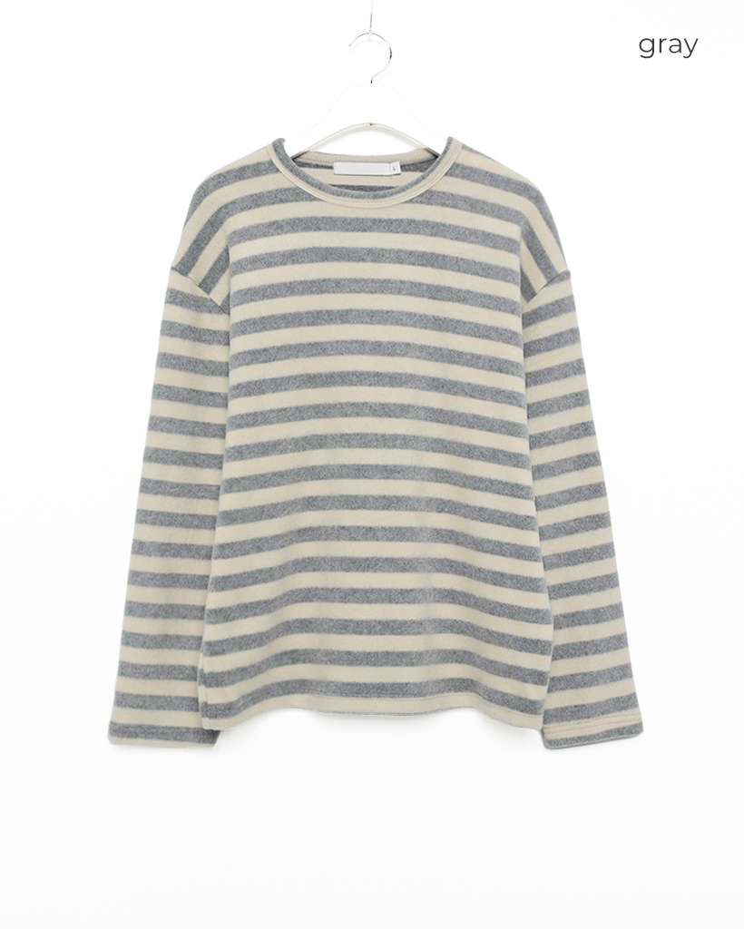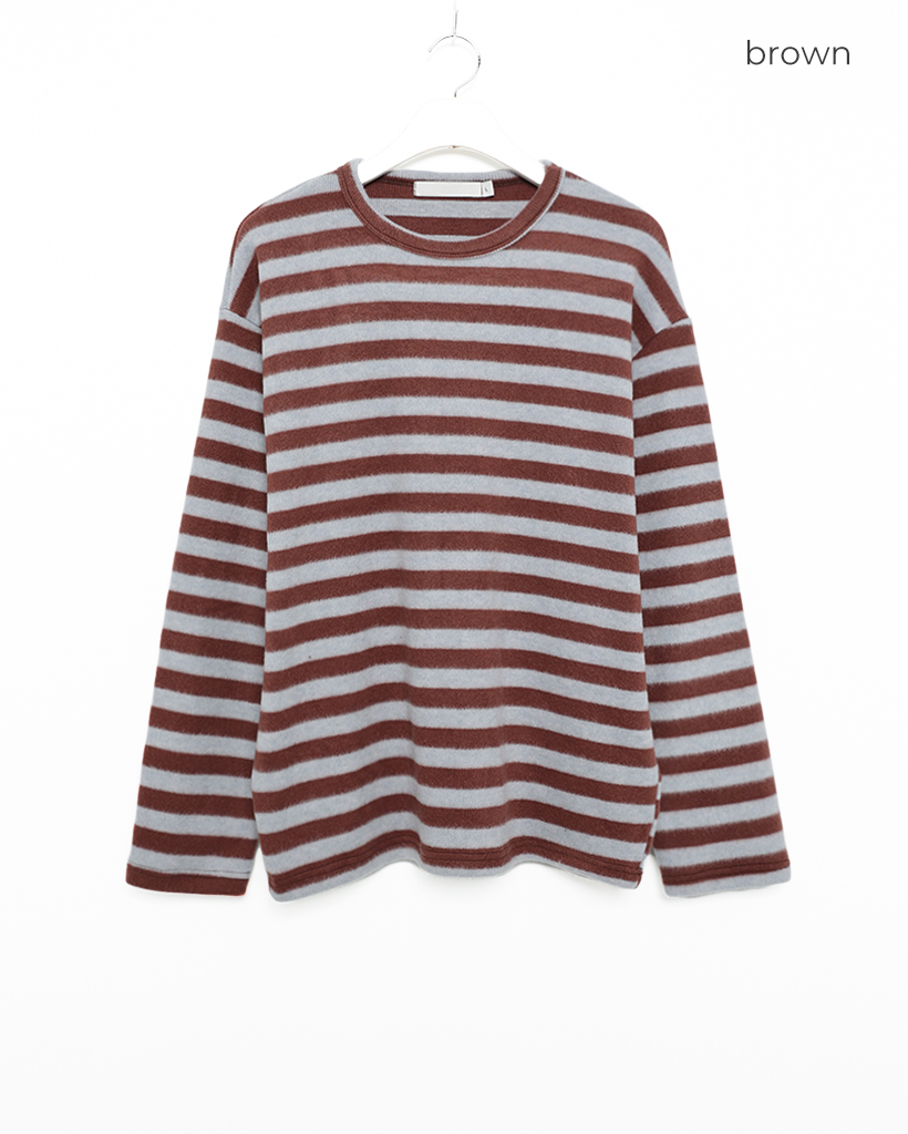 (ユニセックス)ボーダー起毛長袖Tシャツ