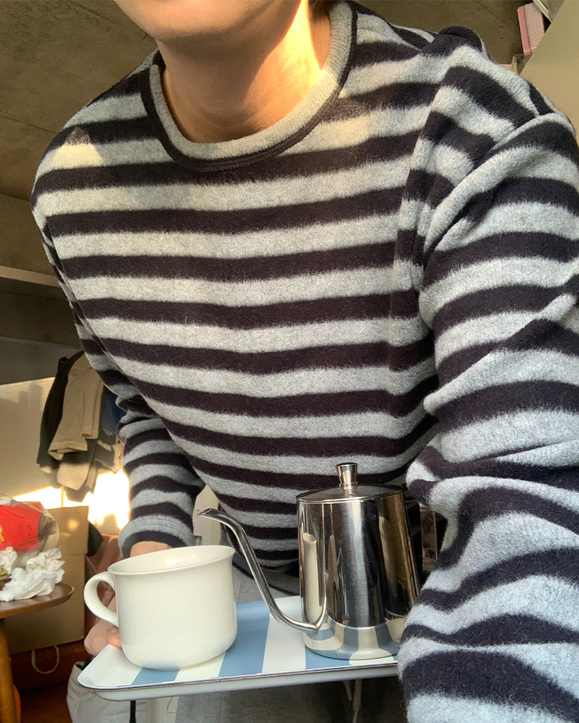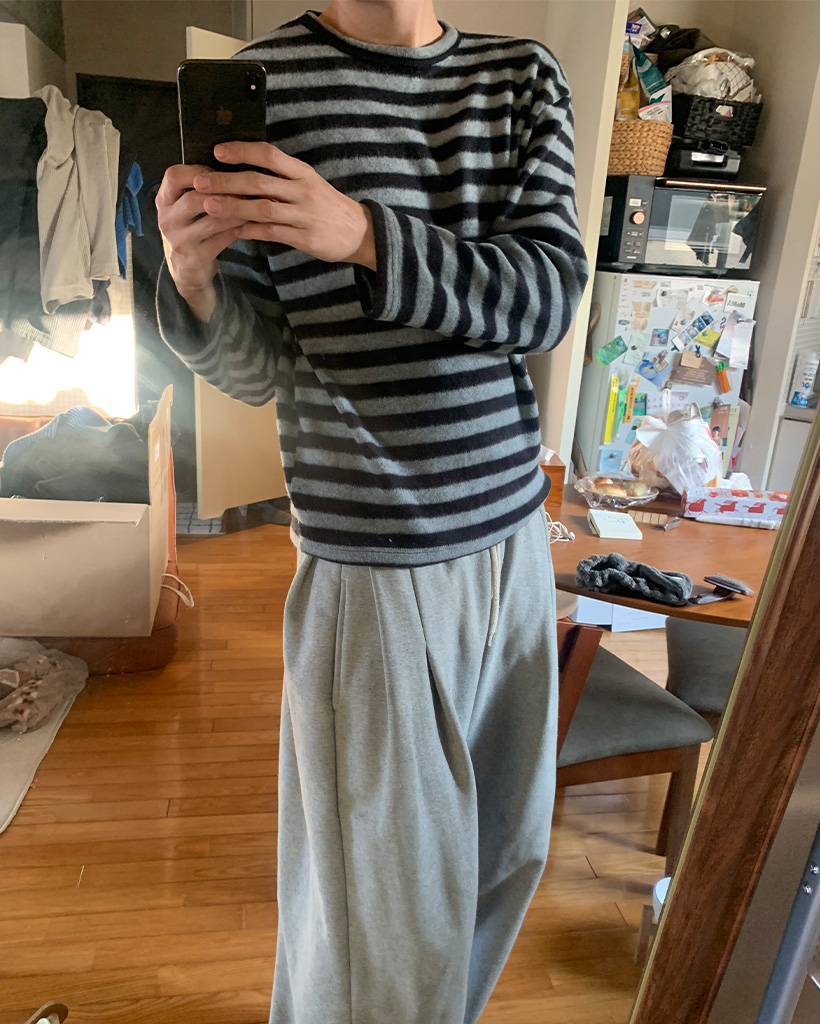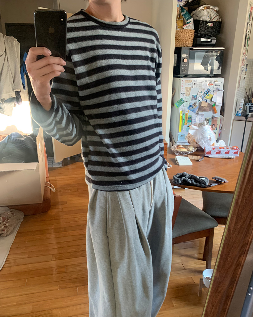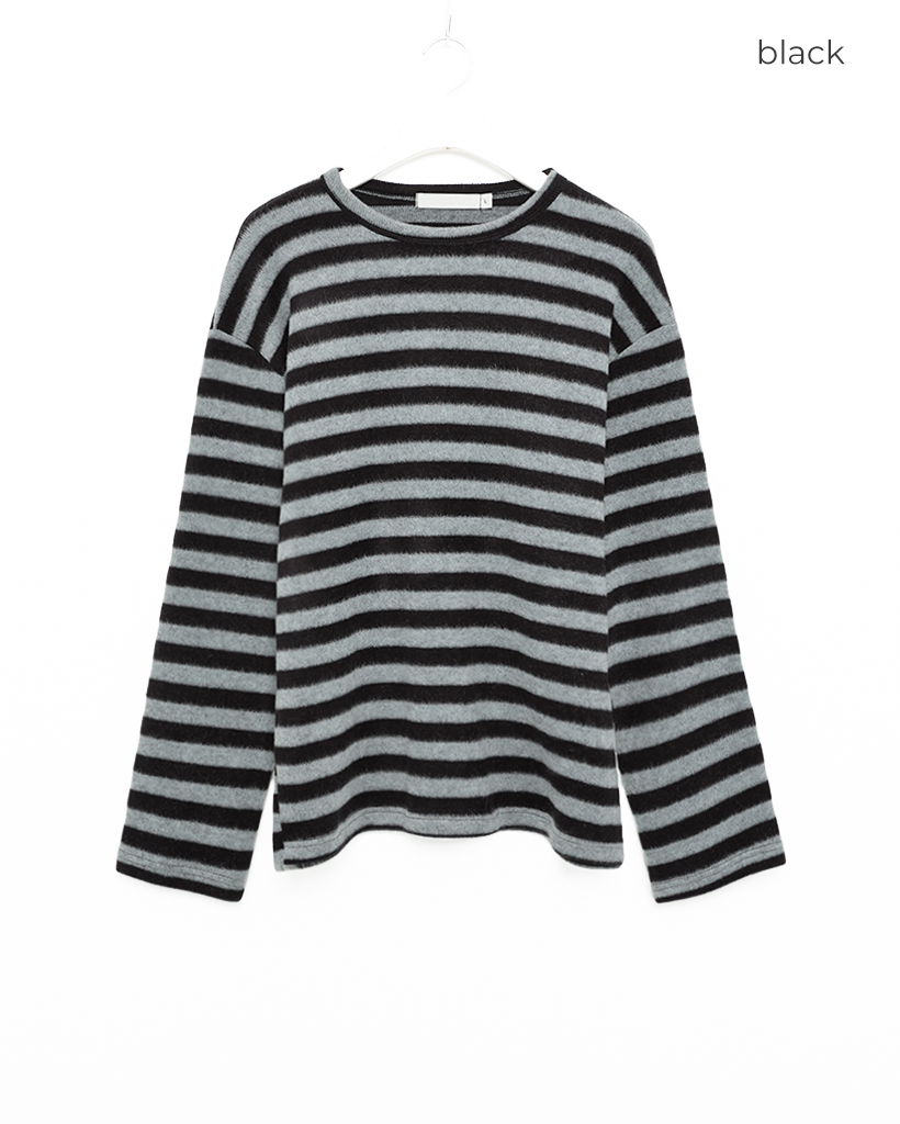 (ユニセックス)ボーダー起毛長袖Tシャツ