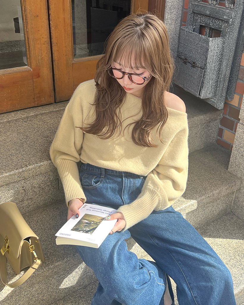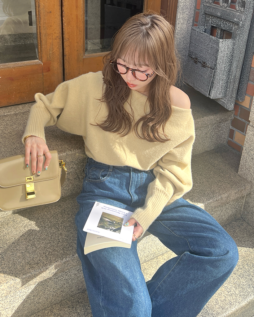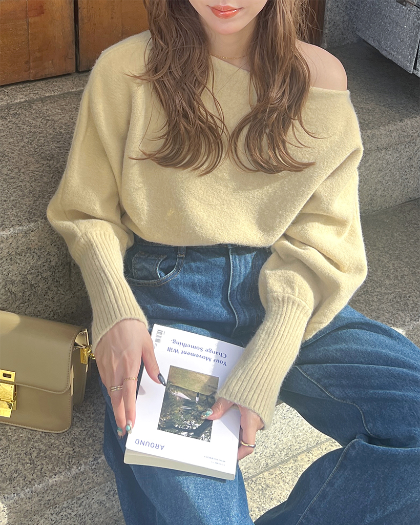 [BEST 50]アンバランスショルダールーズフィットニット