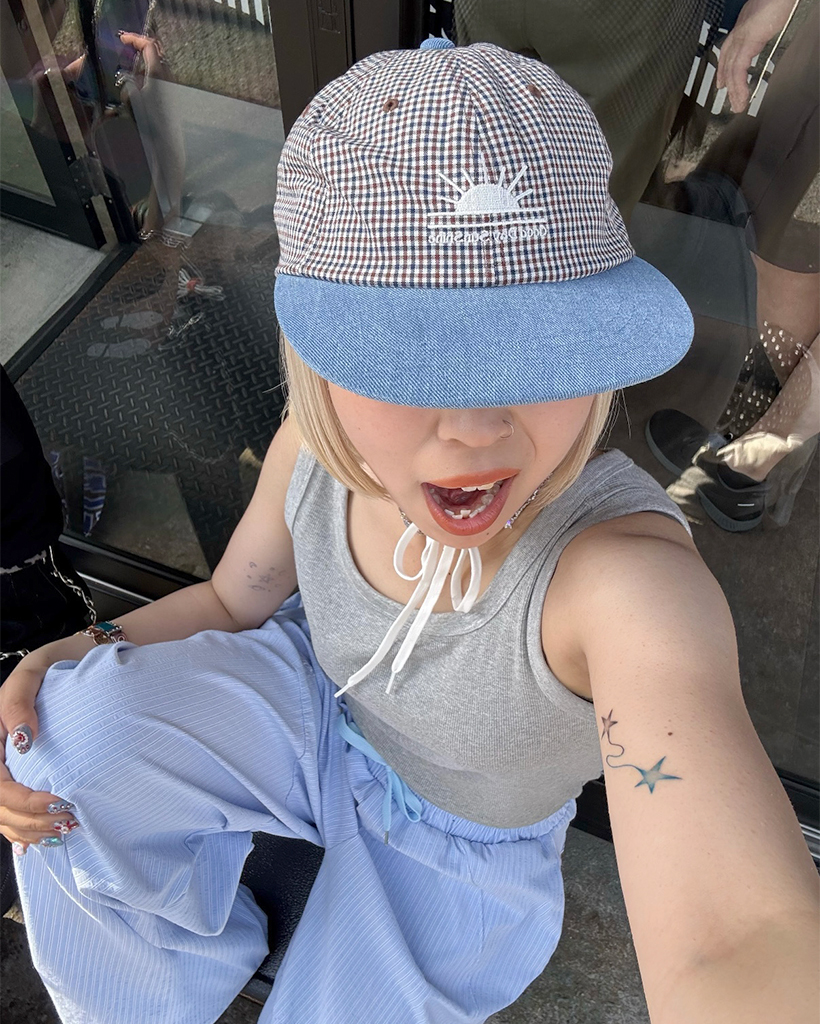 チェック配色キャンプキャップ