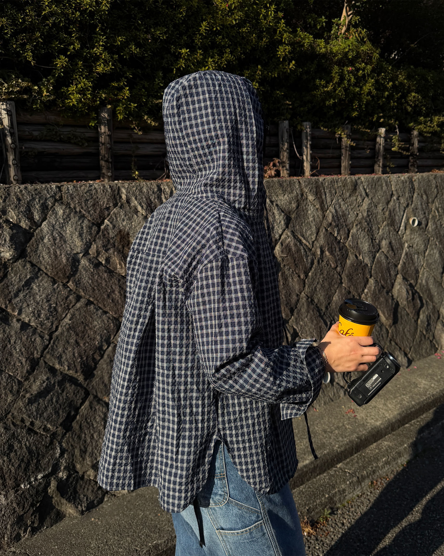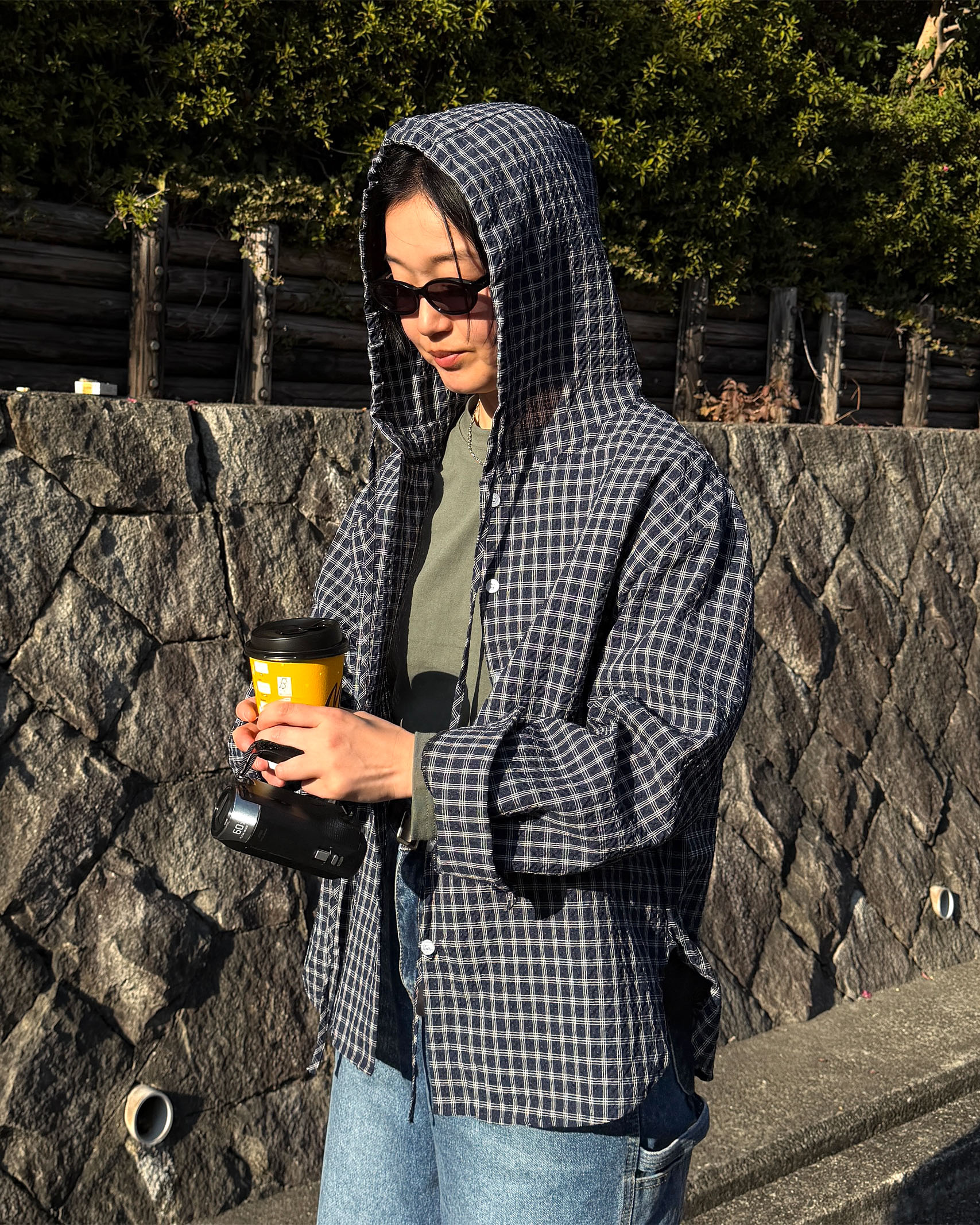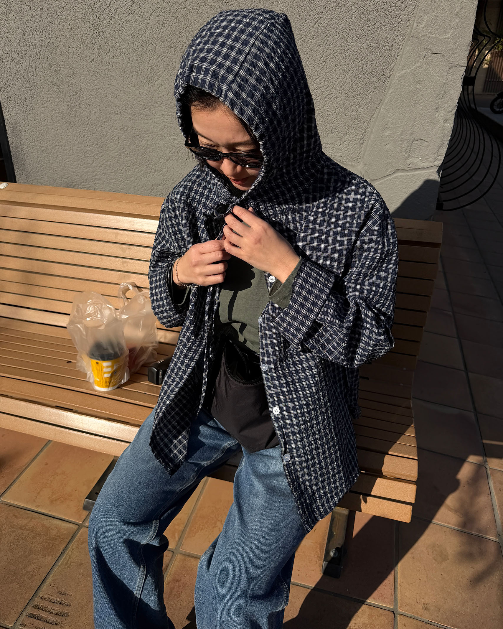 フーディーチェックシャツ