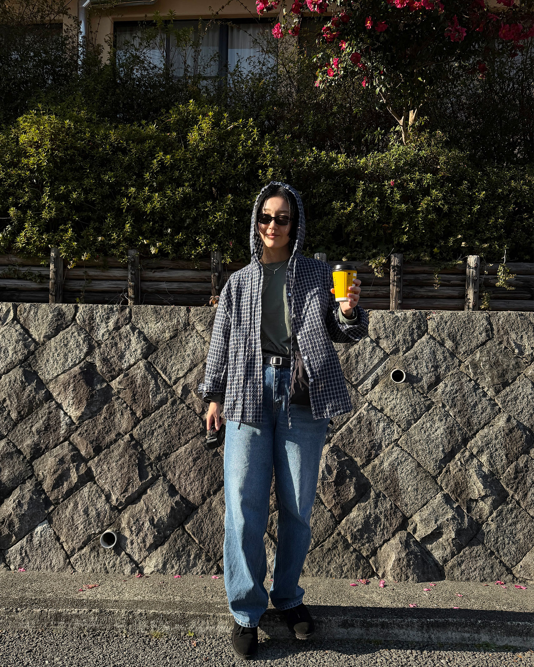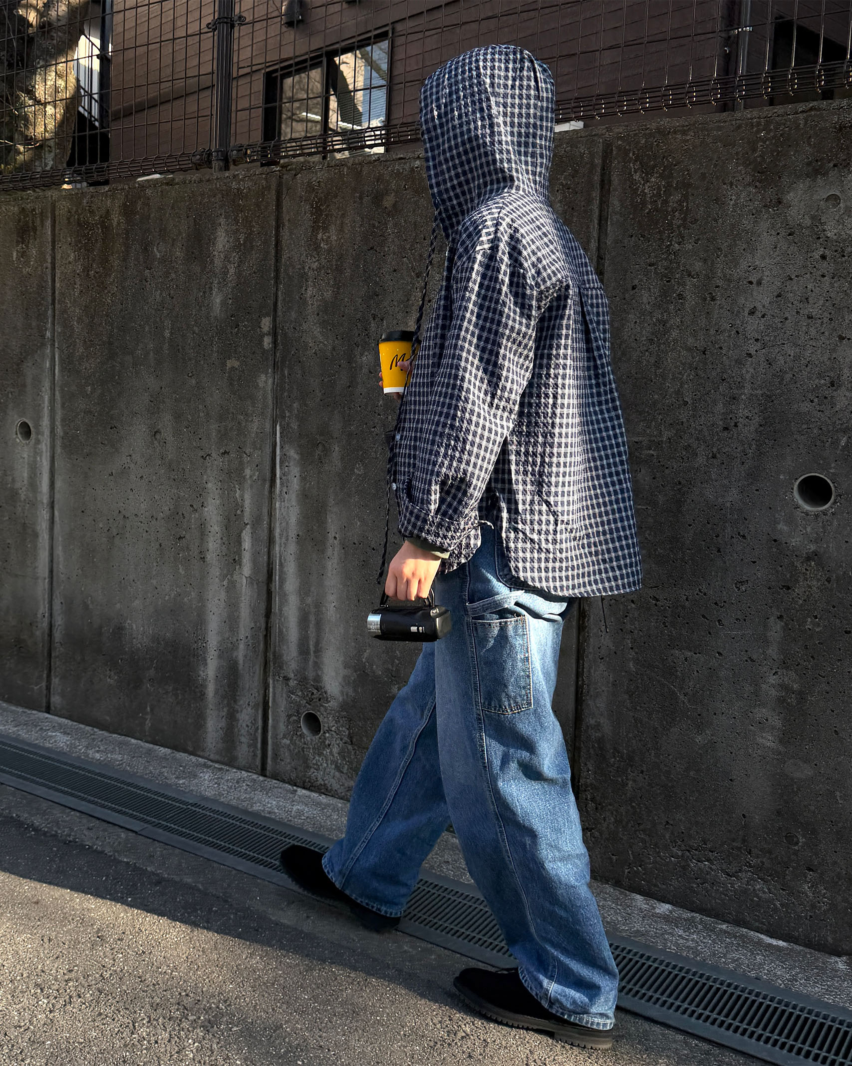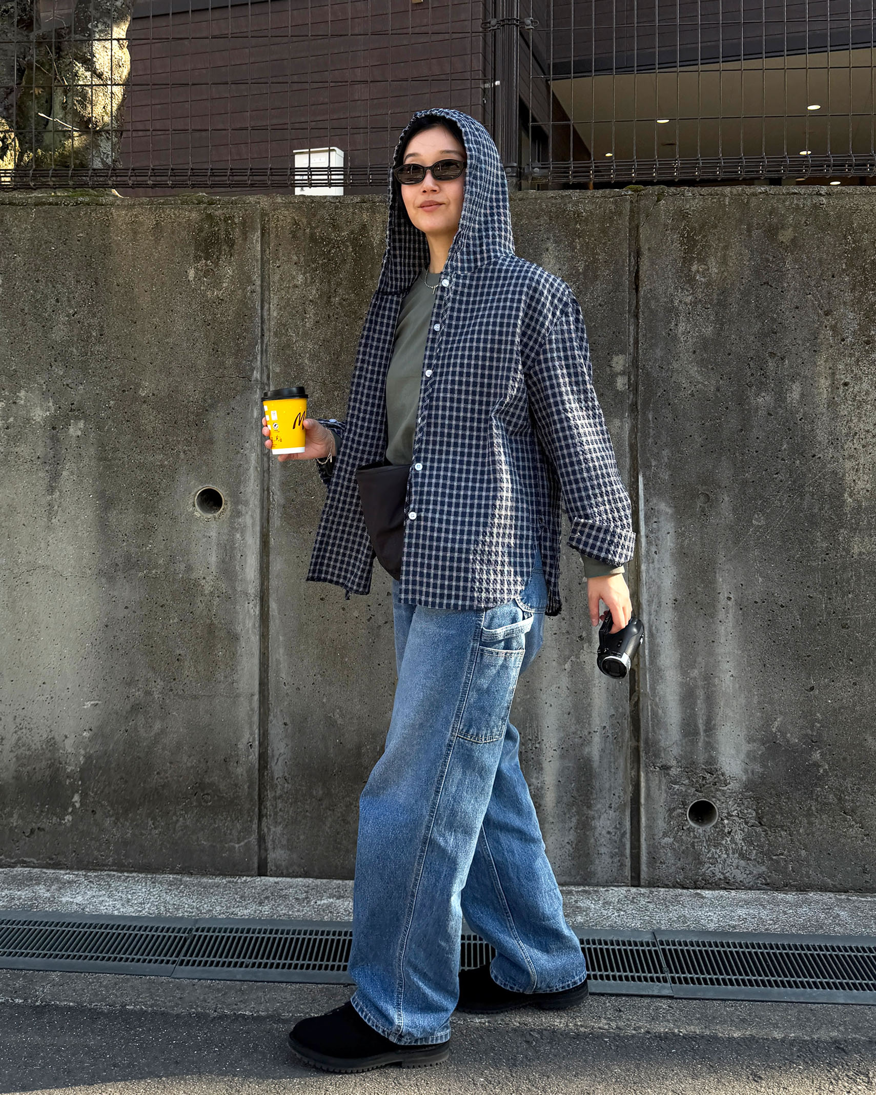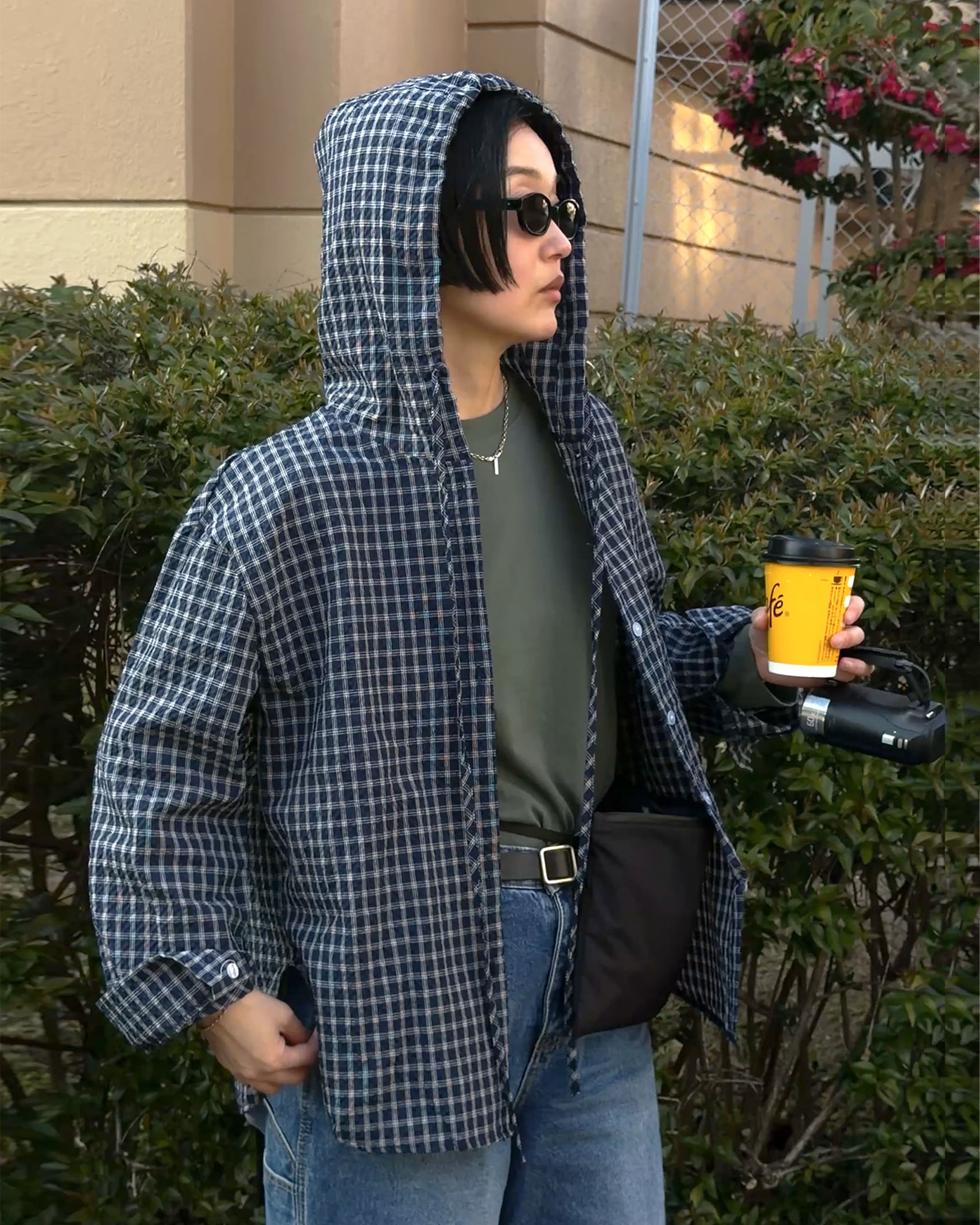 フーディーチェックシャツ