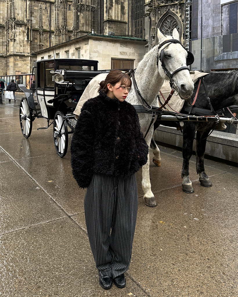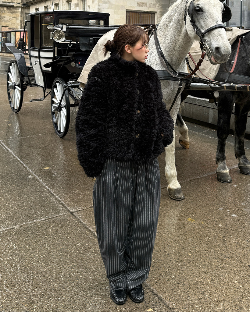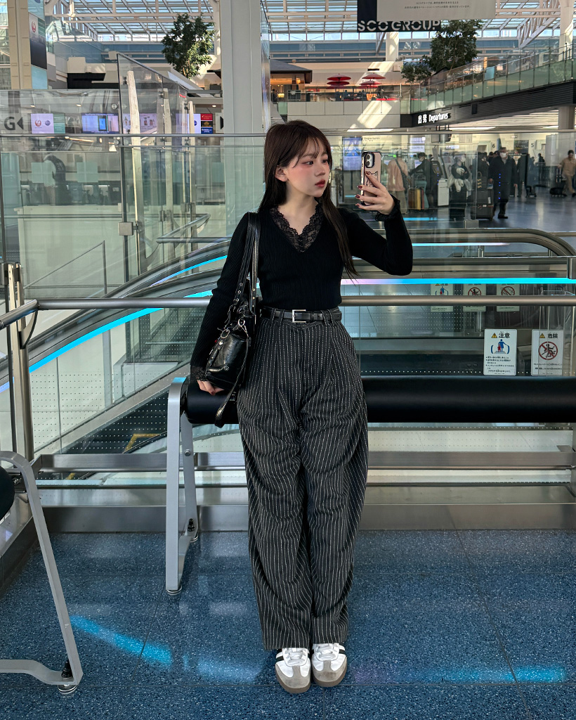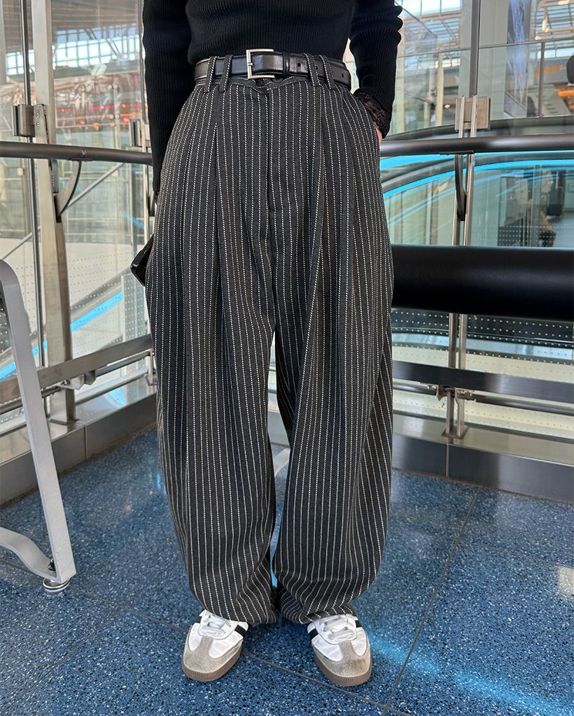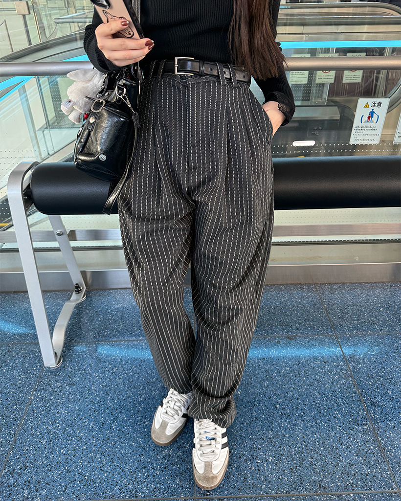 ツータックピンストライプワイドスラックス