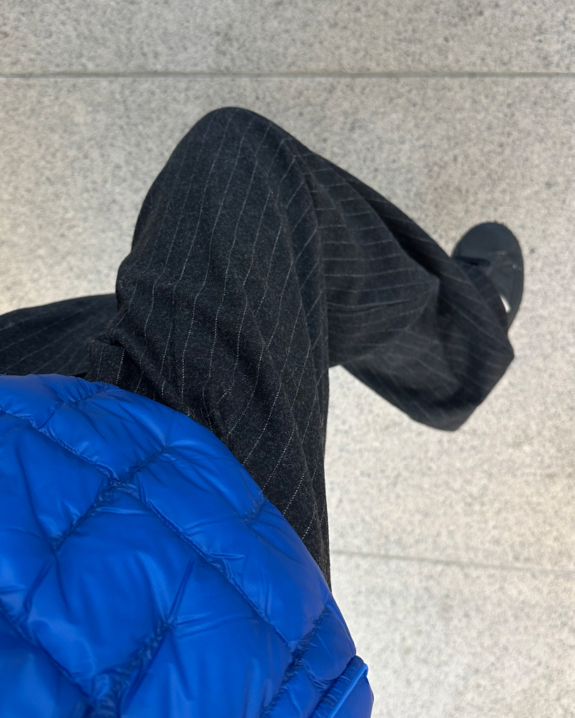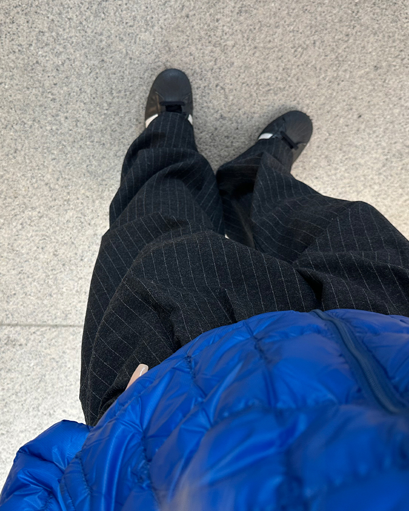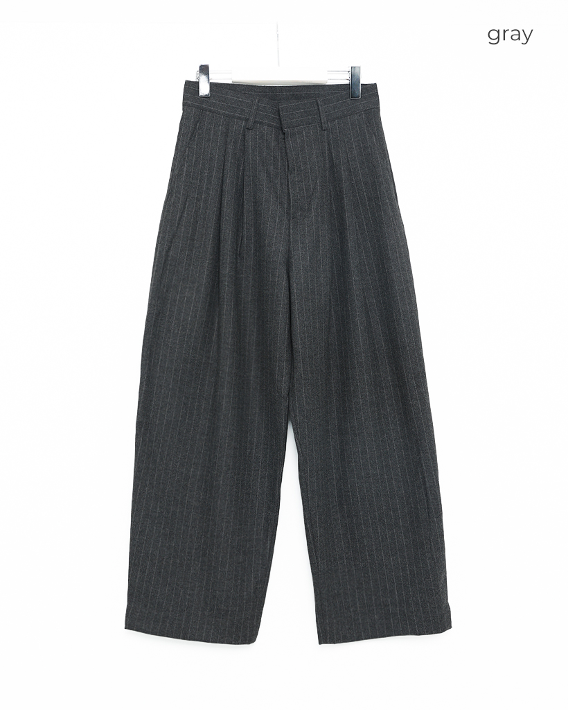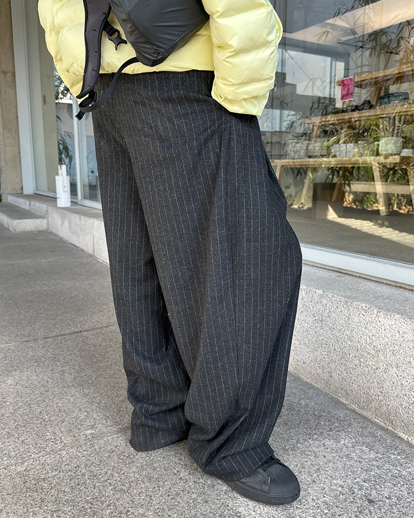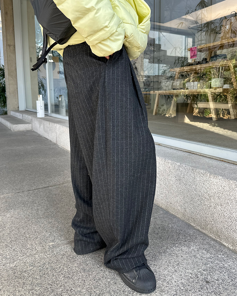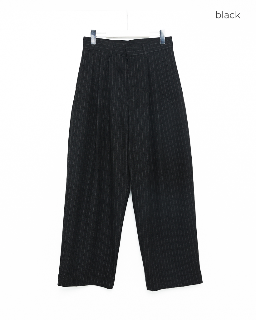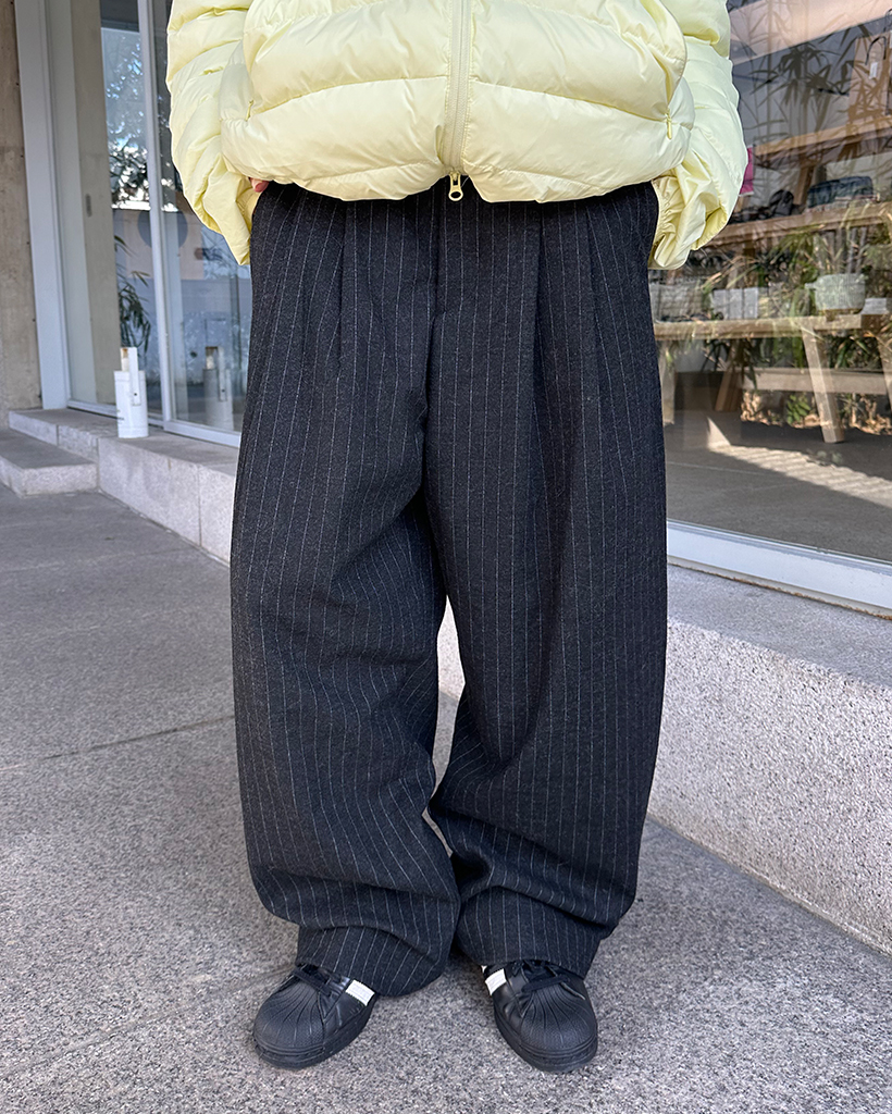 (ユニセックス)ピンストライプツータックワイドウィンタースラックス