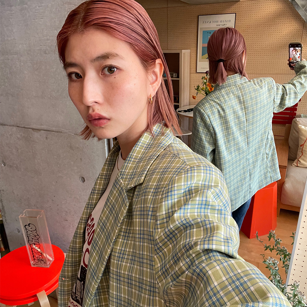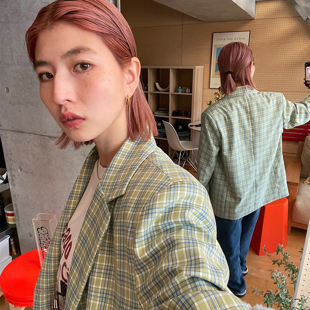 ユニークグリーンチェックジャケット