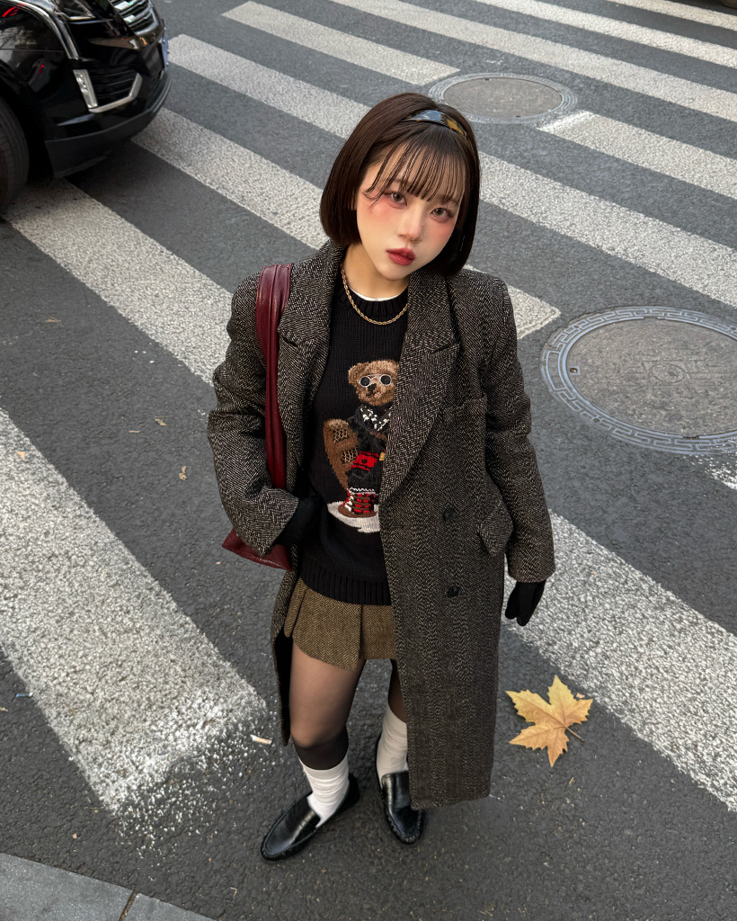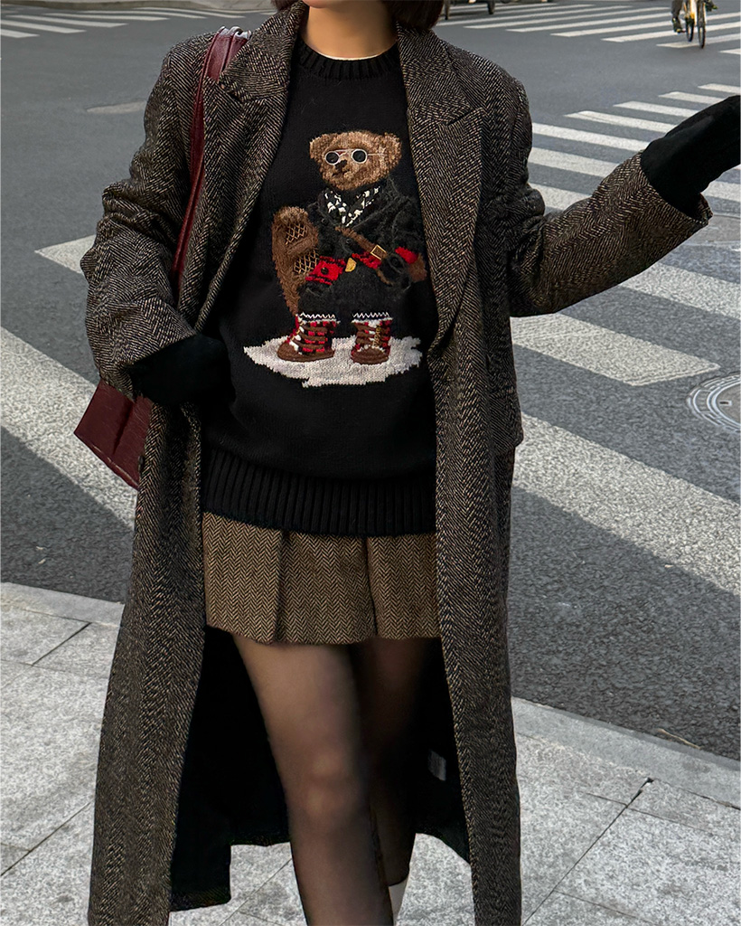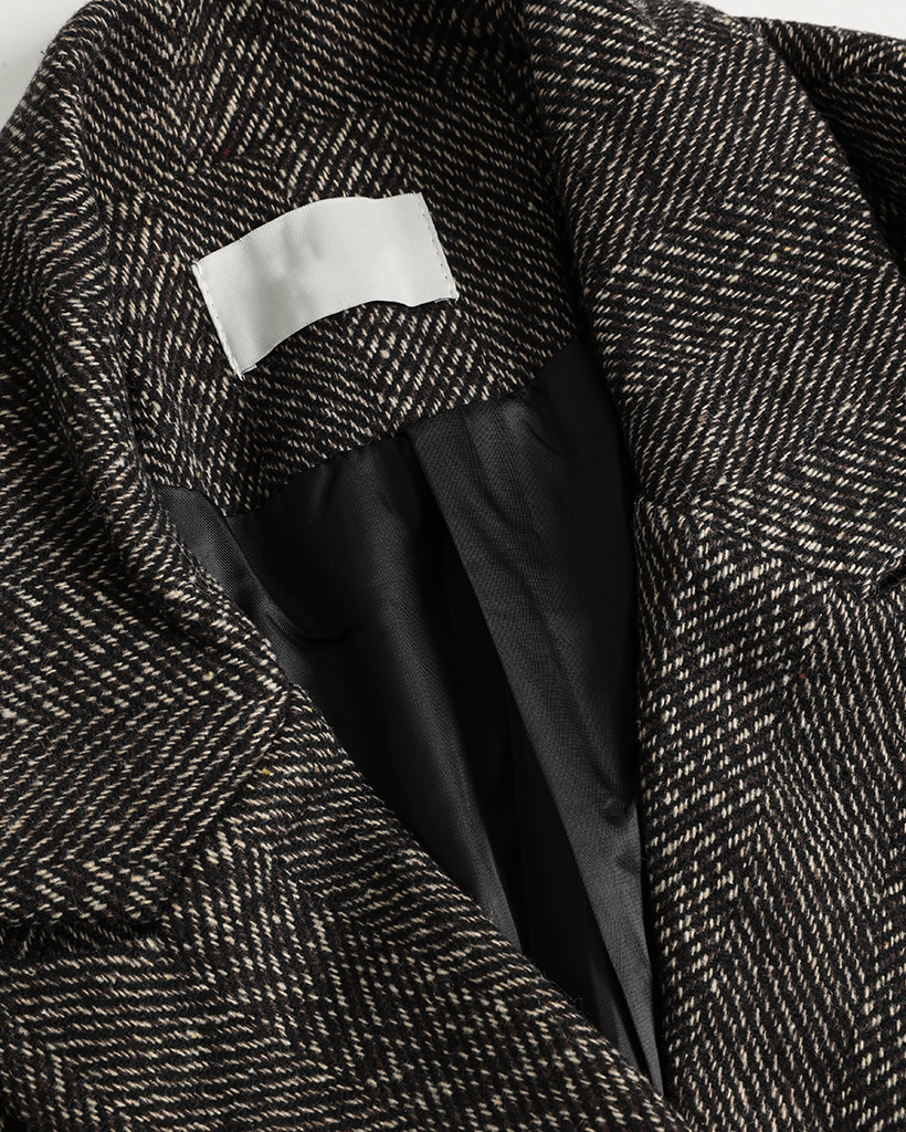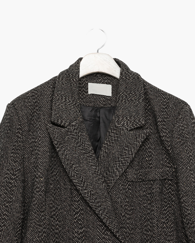 ヘリンボーンウールロングコート