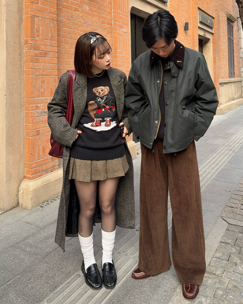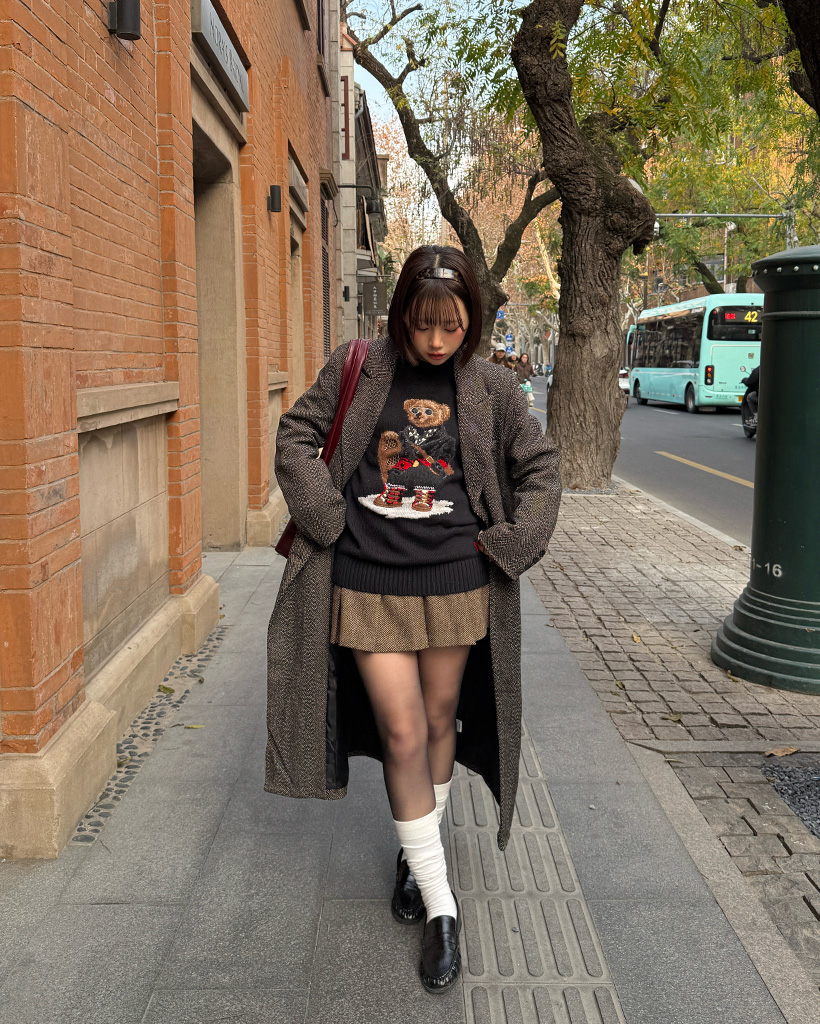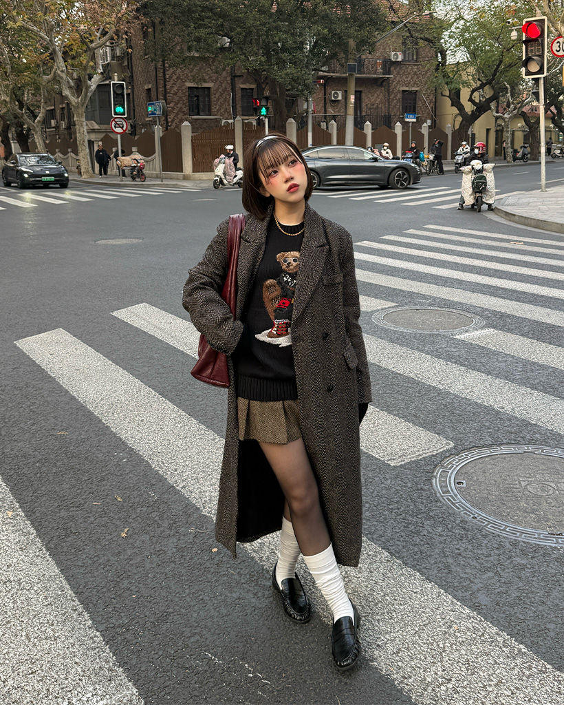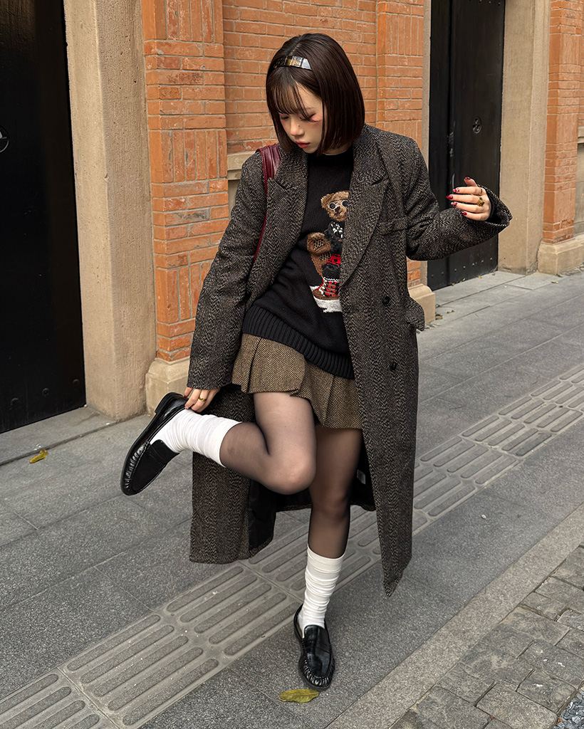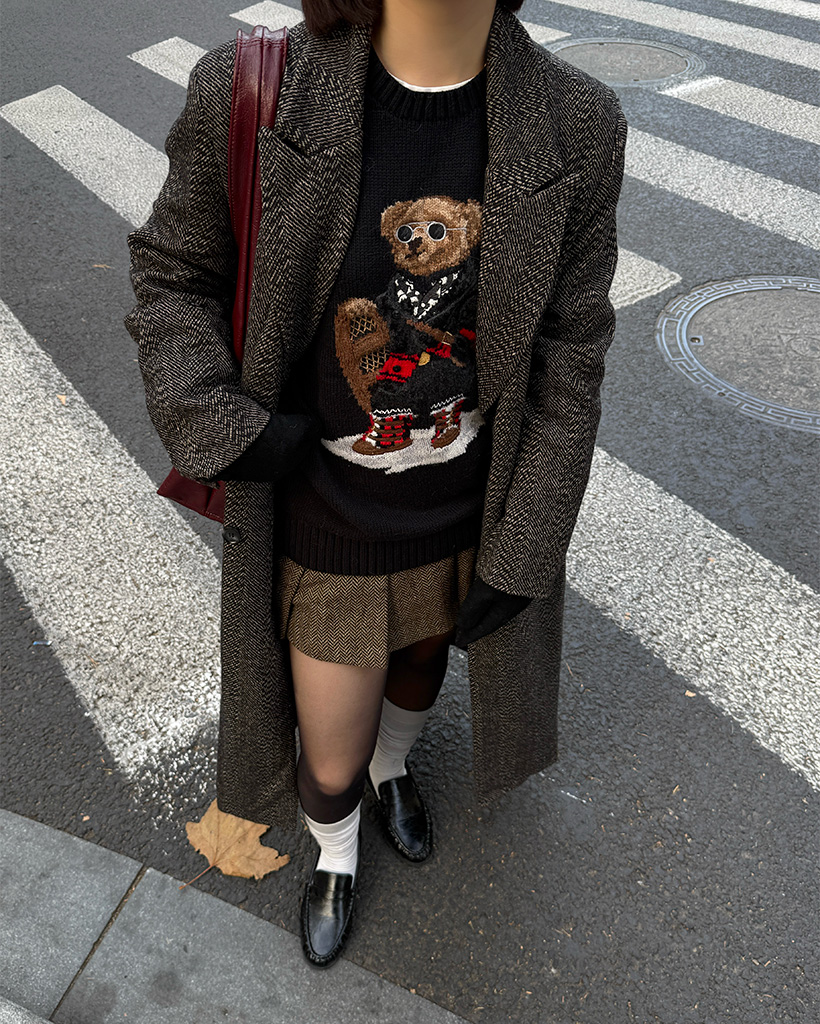 ヘリンボーンウールロングコート