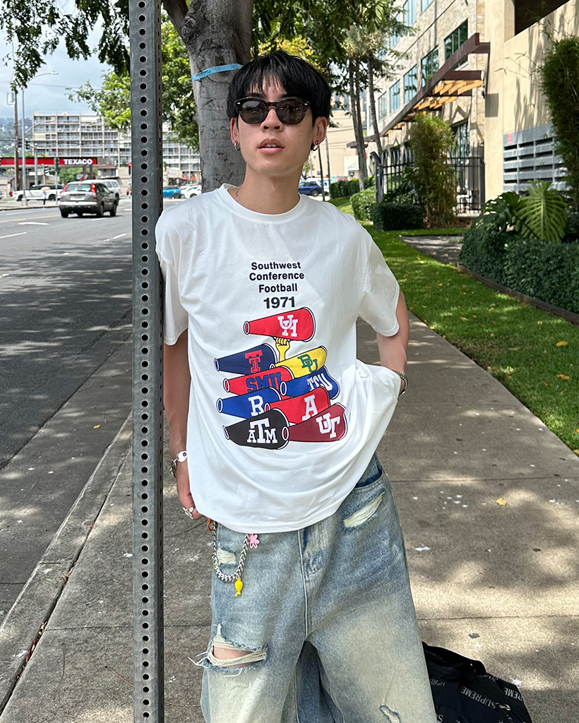 (ユニセックス)カラフルプリント半袖Tシャツ