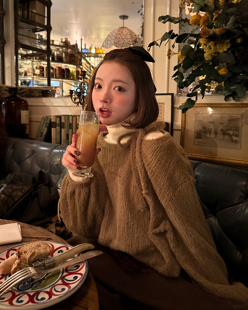 [4回再販](ORIGINAL) ヘアリー ボートネックリボンニット