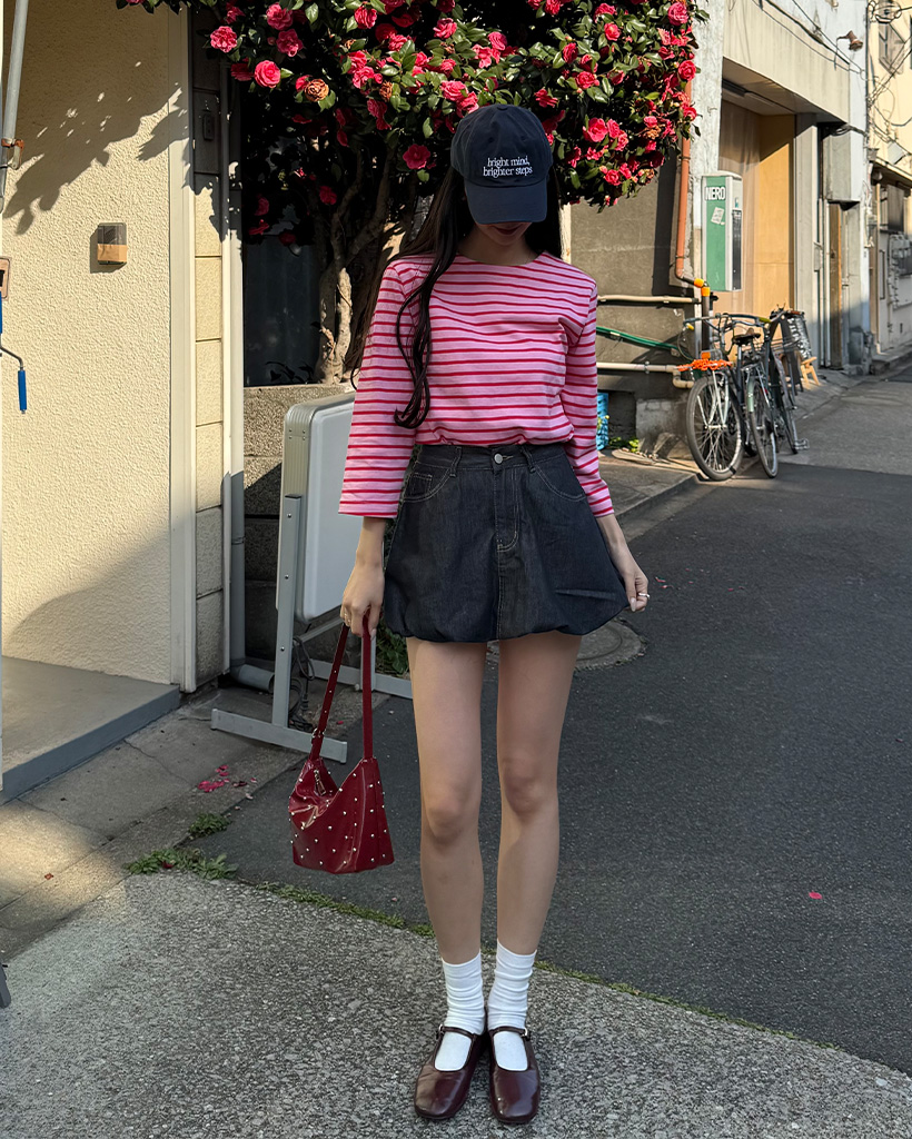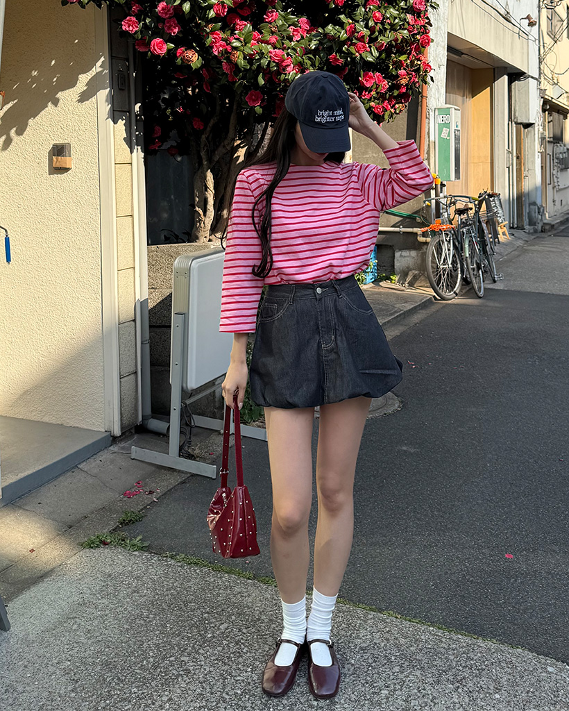 デニムボリュームミニスカート