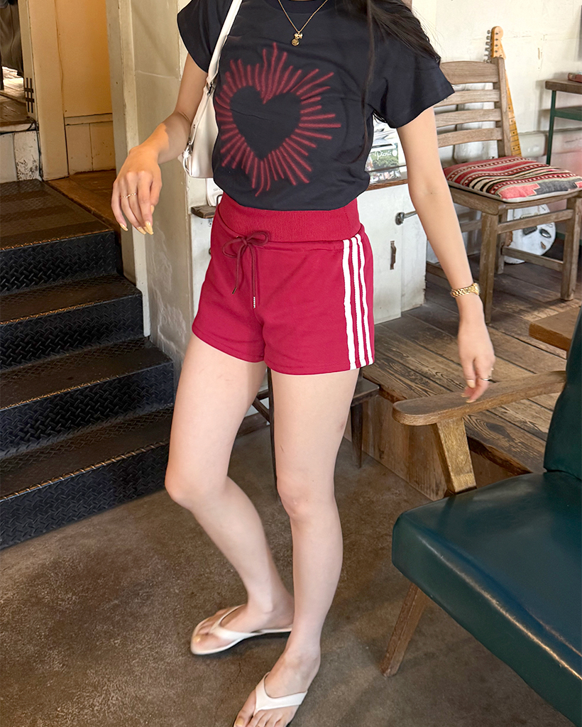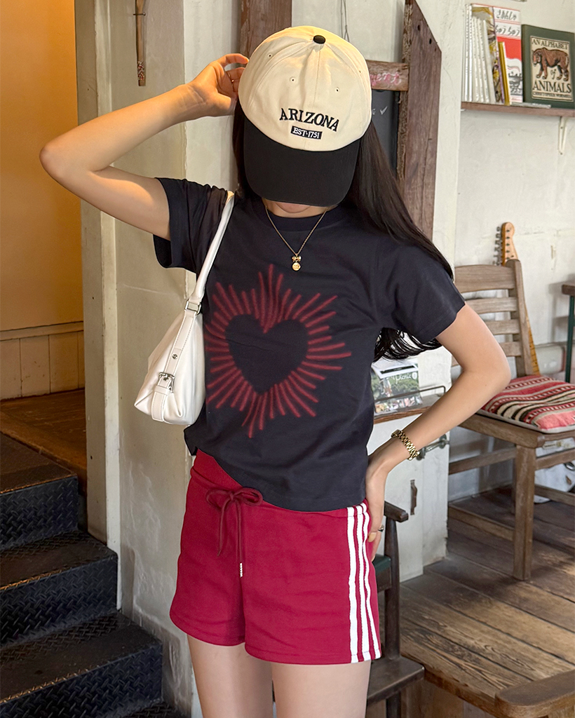 ハートプリントスリム半袖Tシャツ