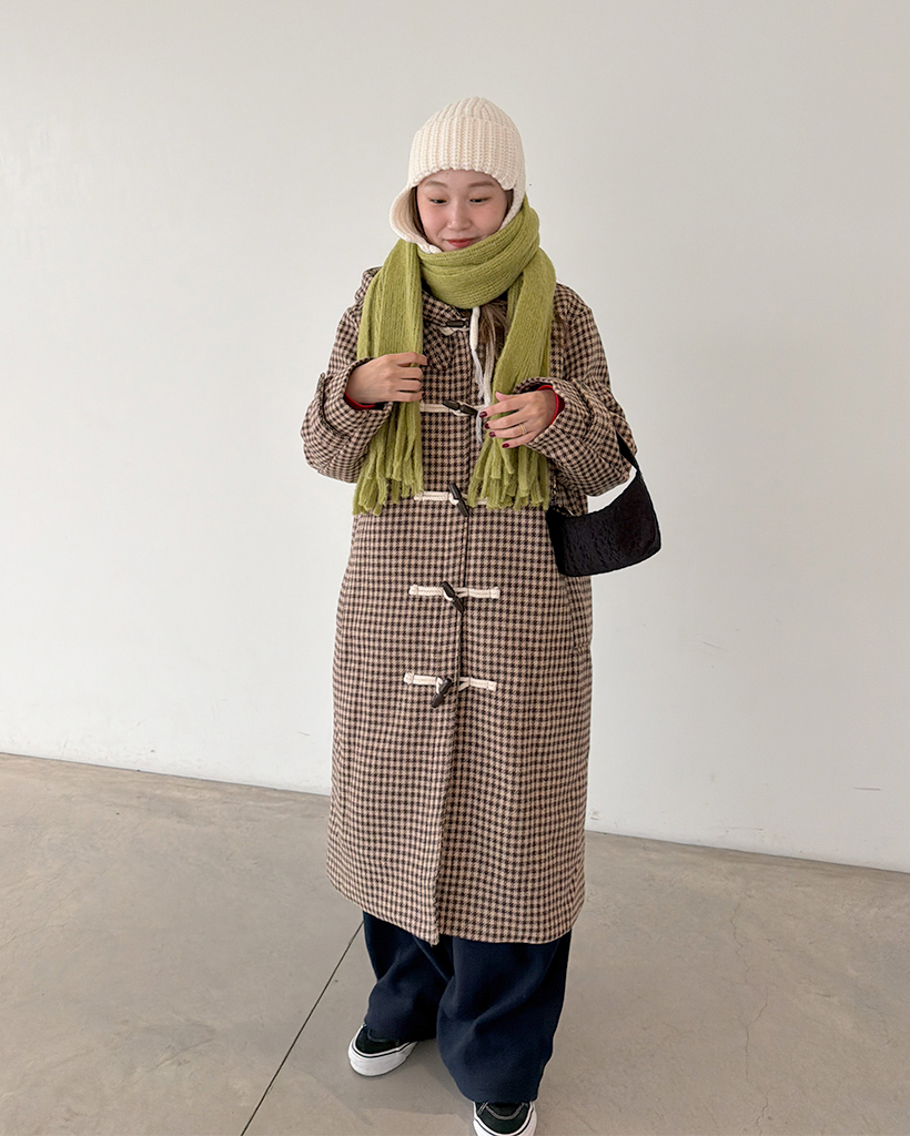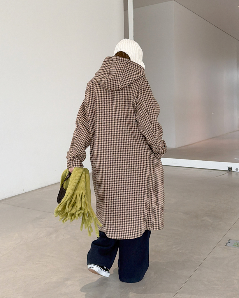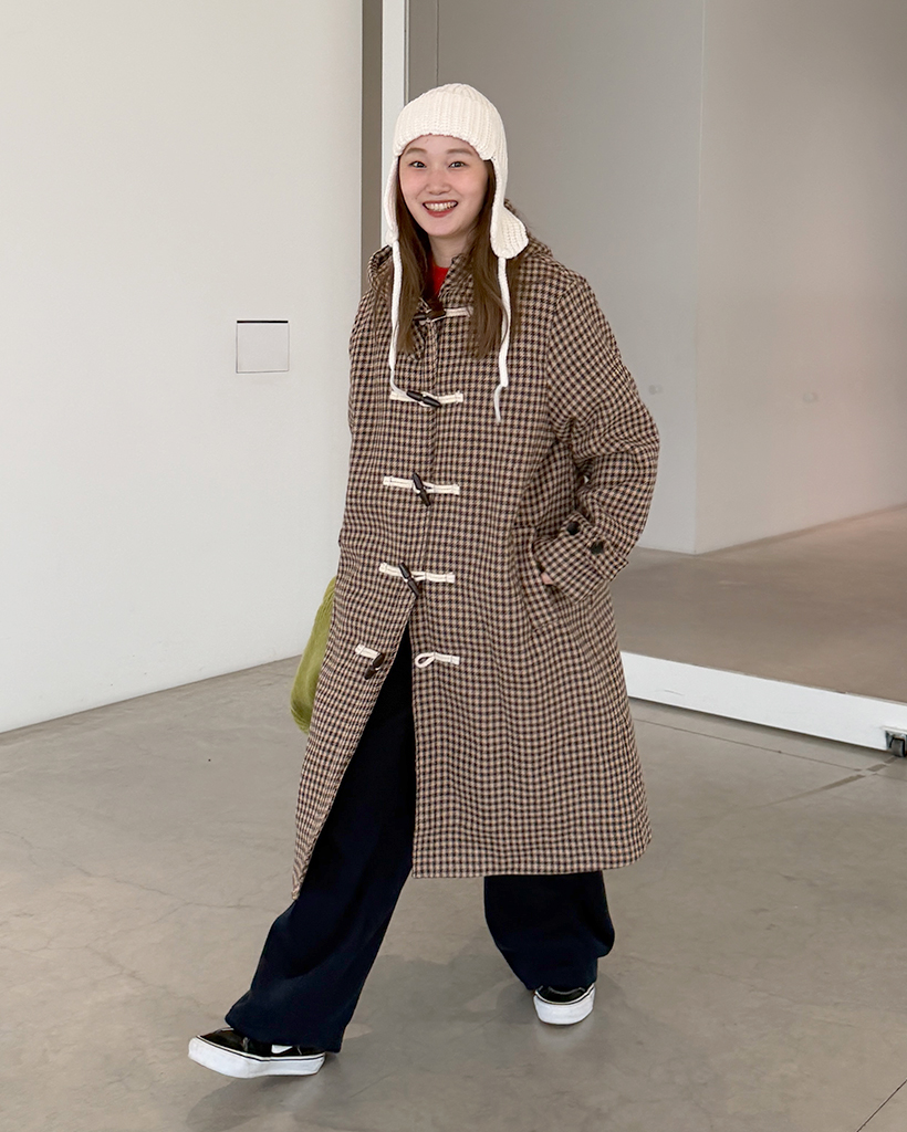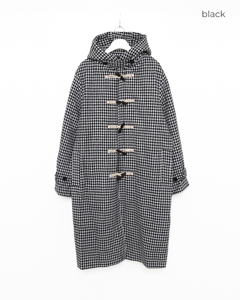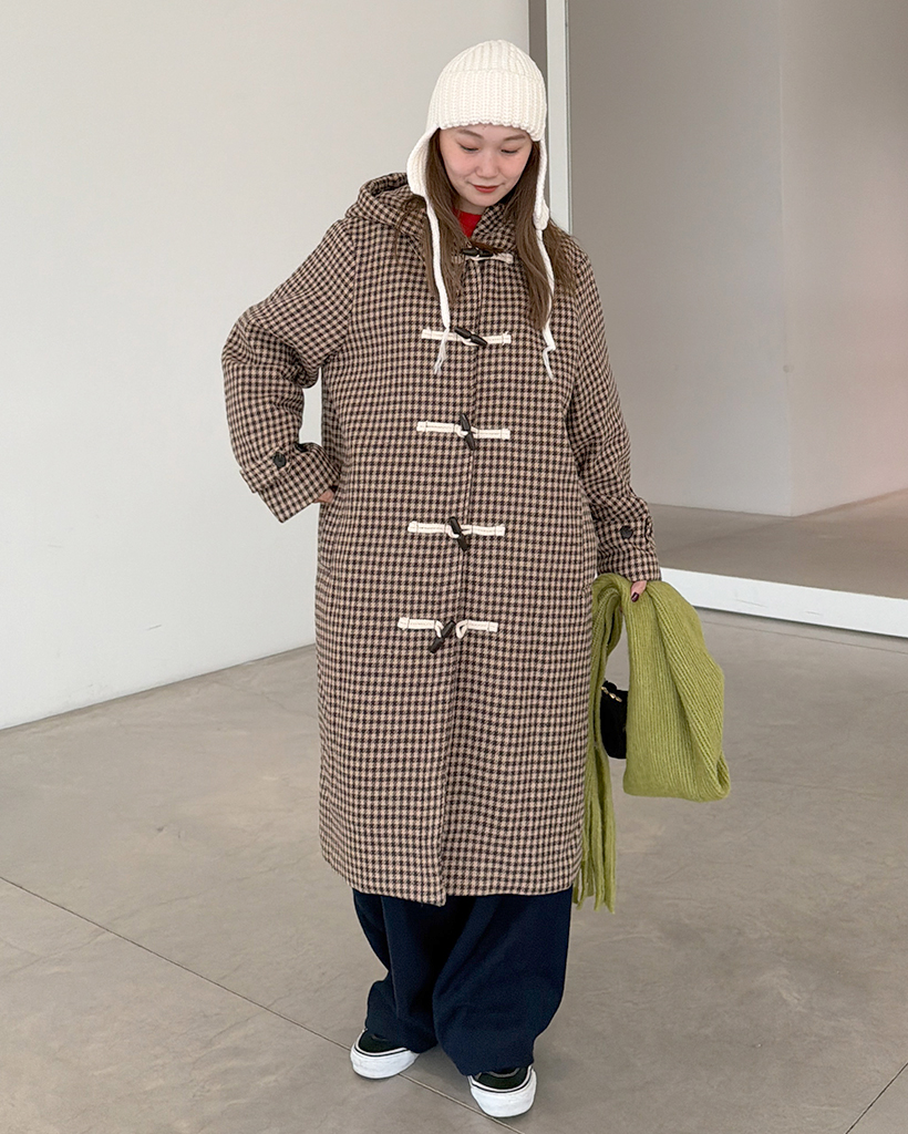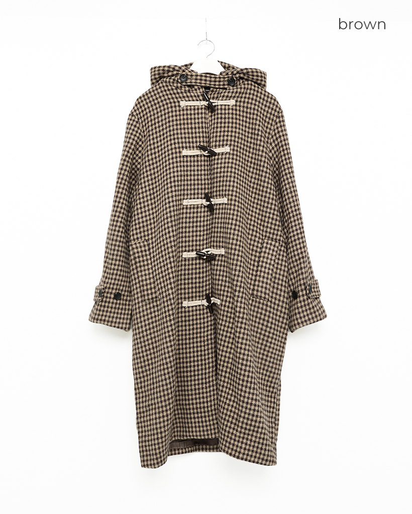 チェックロングダッフルコート