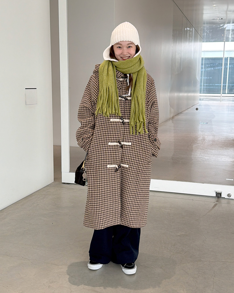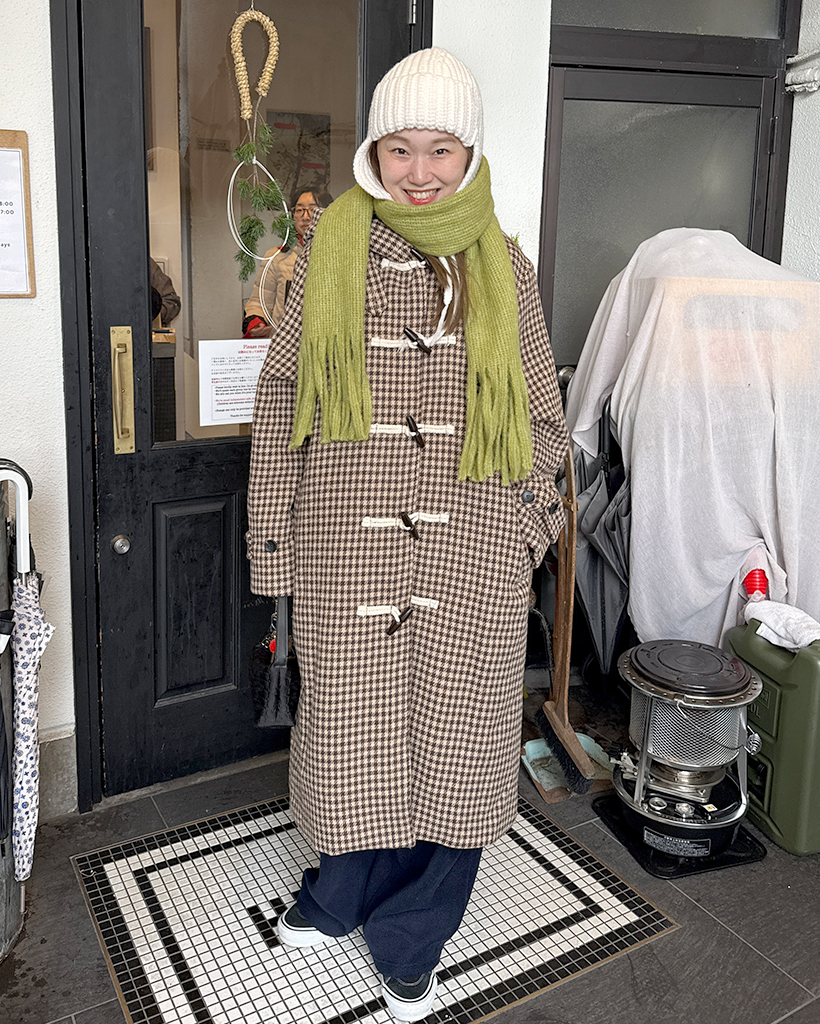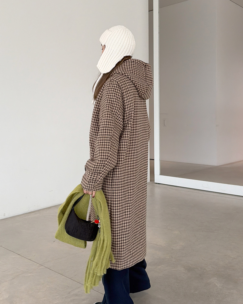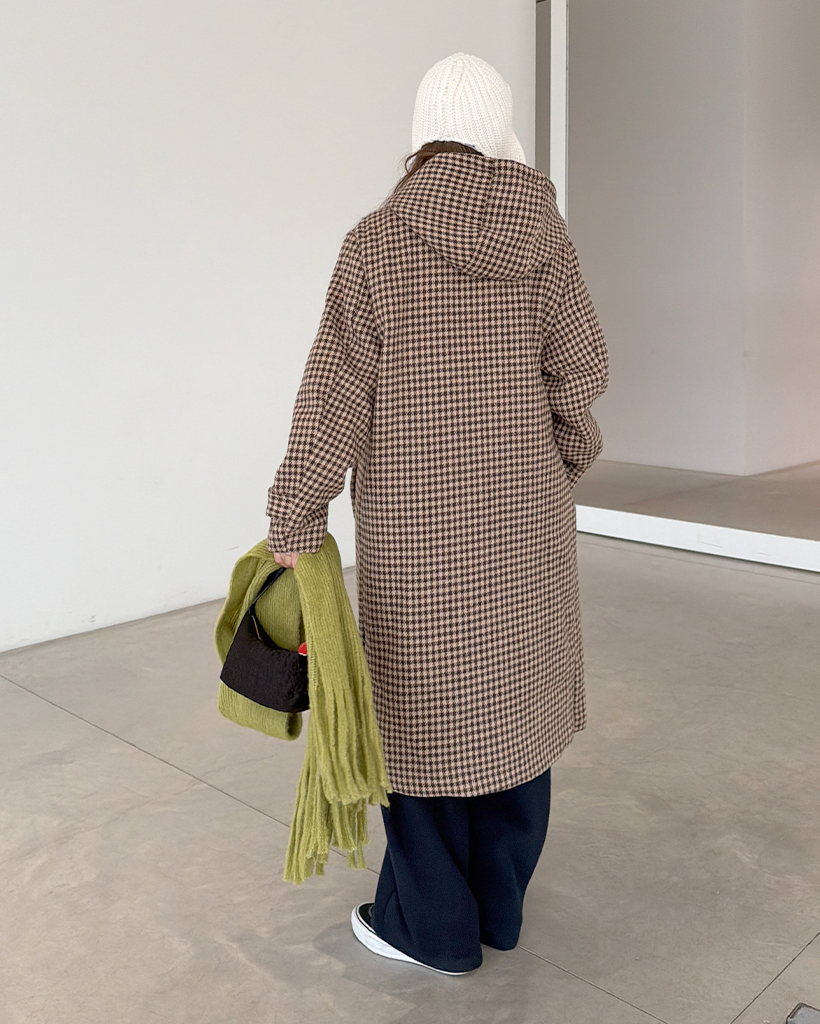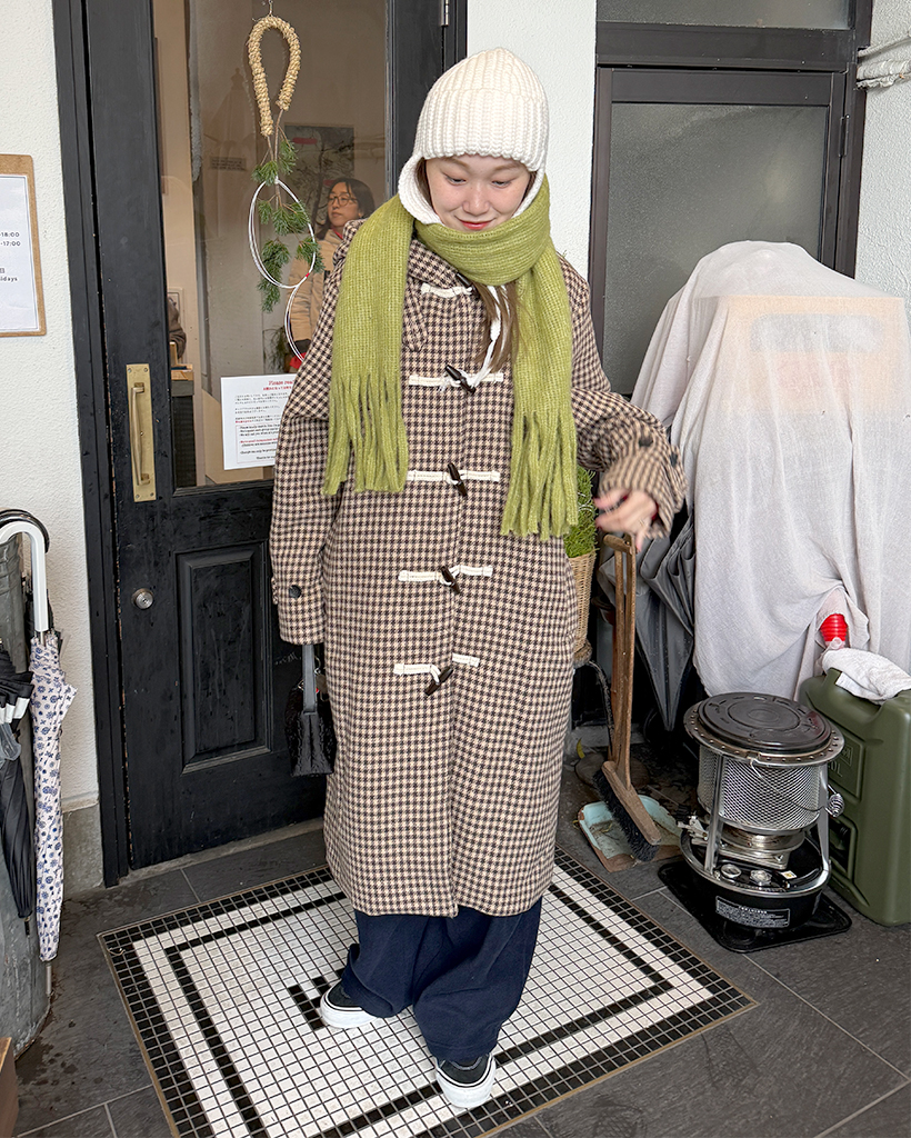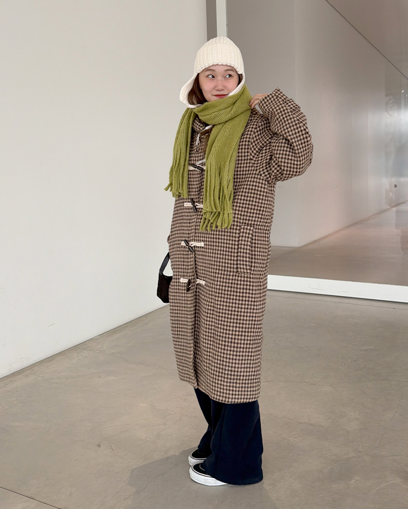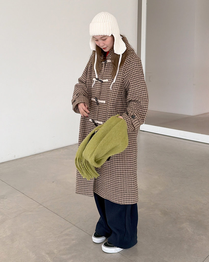 チェックロングダッフルコート